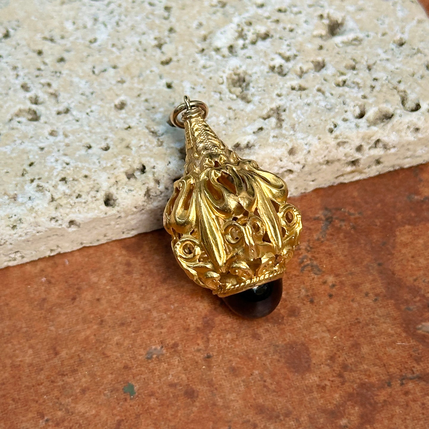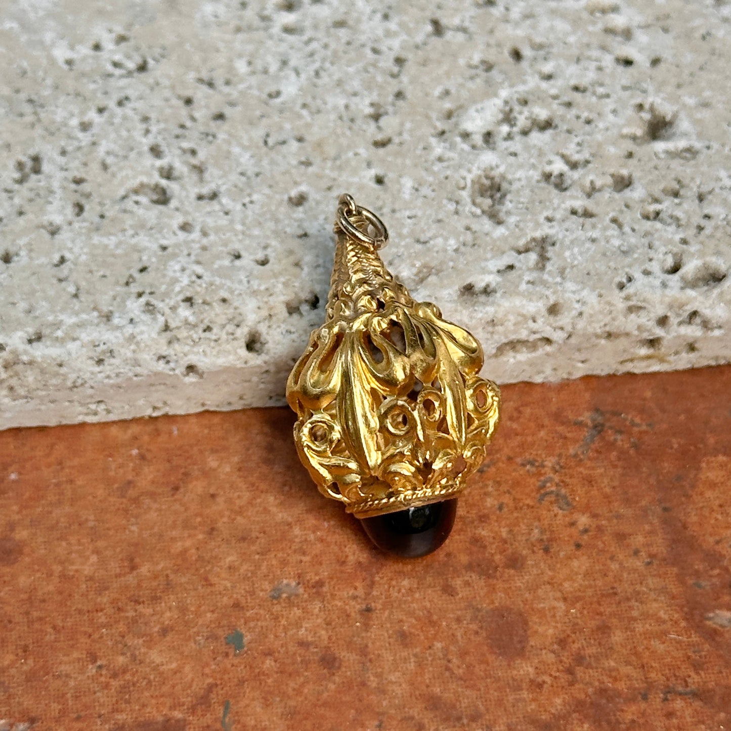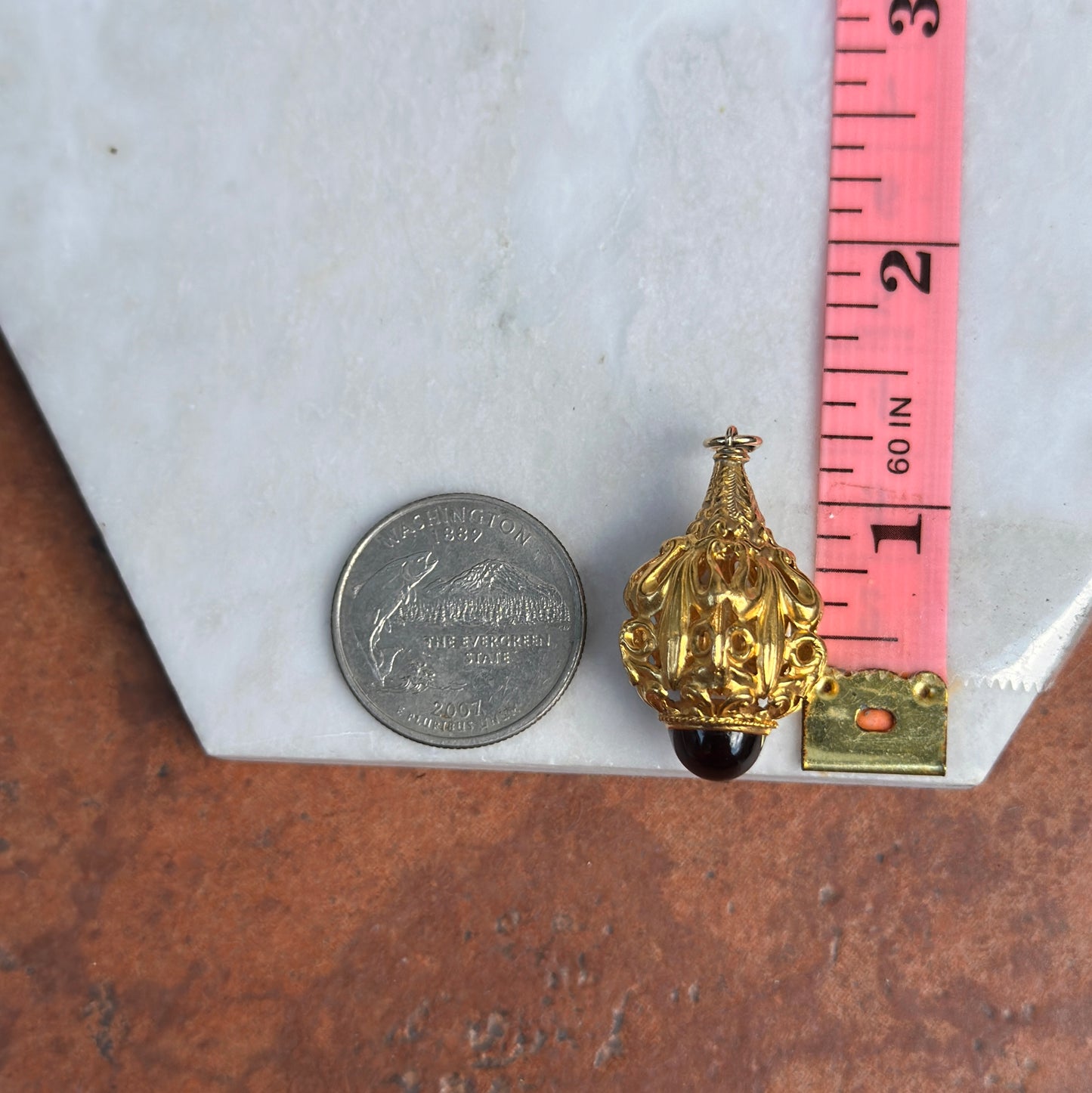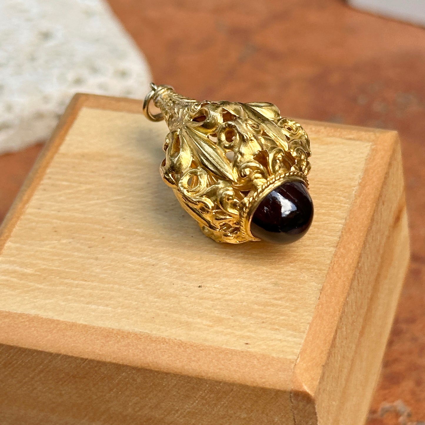 Estate/ vintage 14KT yellow gold genuine, round, red, garnet, filigree, vintage/ Byzantine-design, tear drop pendant charm.