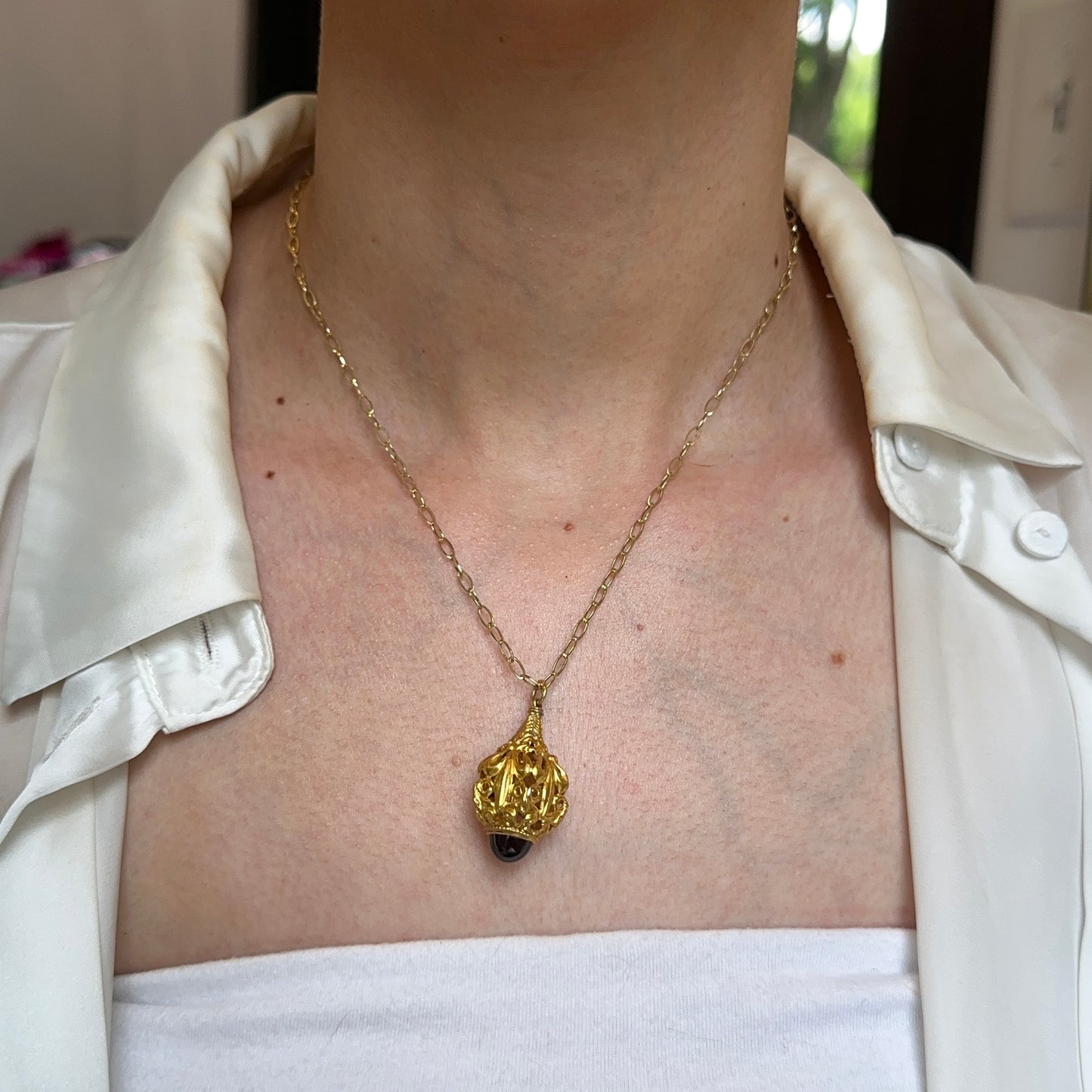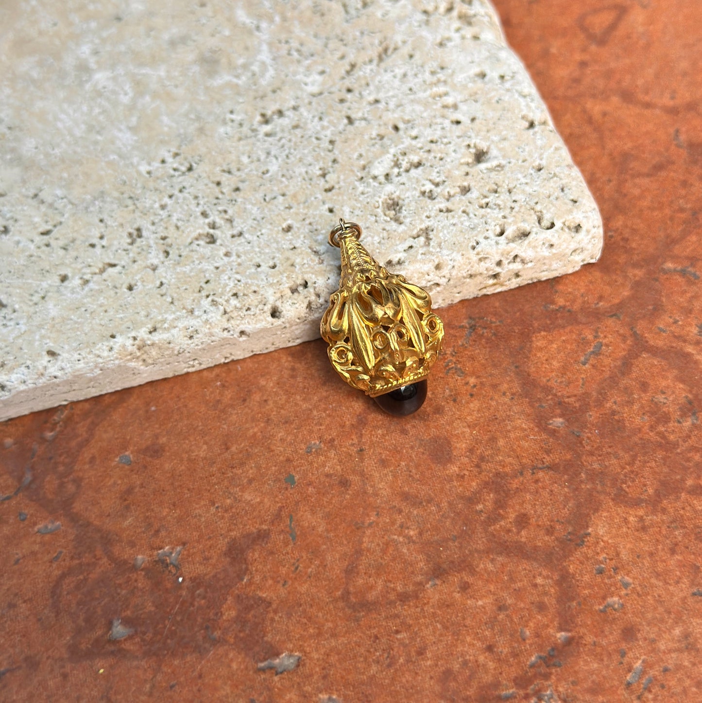 Estate 14KT Yellow Gold Byzantine Garnet Detailed Drop Pendant