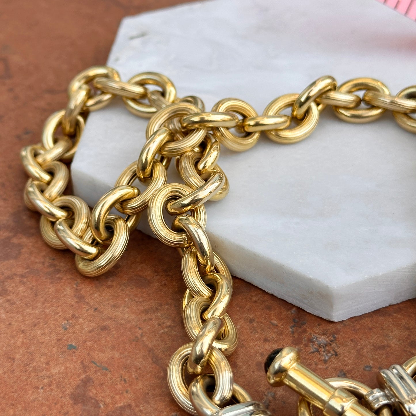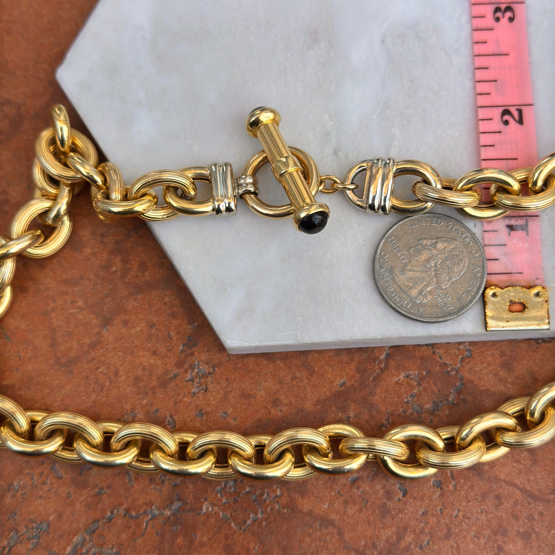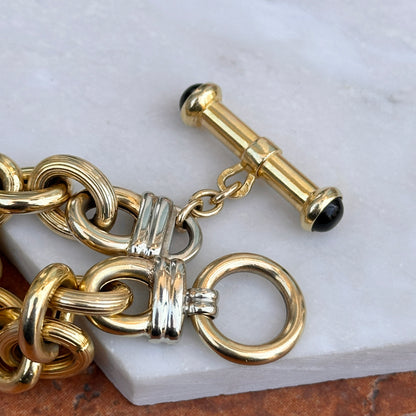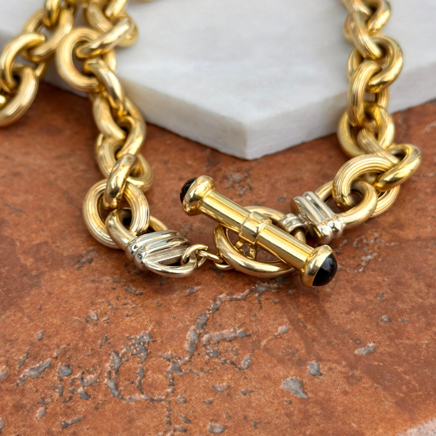 Estate 14KT Yellow Gold Textured Shiny Rolo Links + Onyx Toggle Necklace