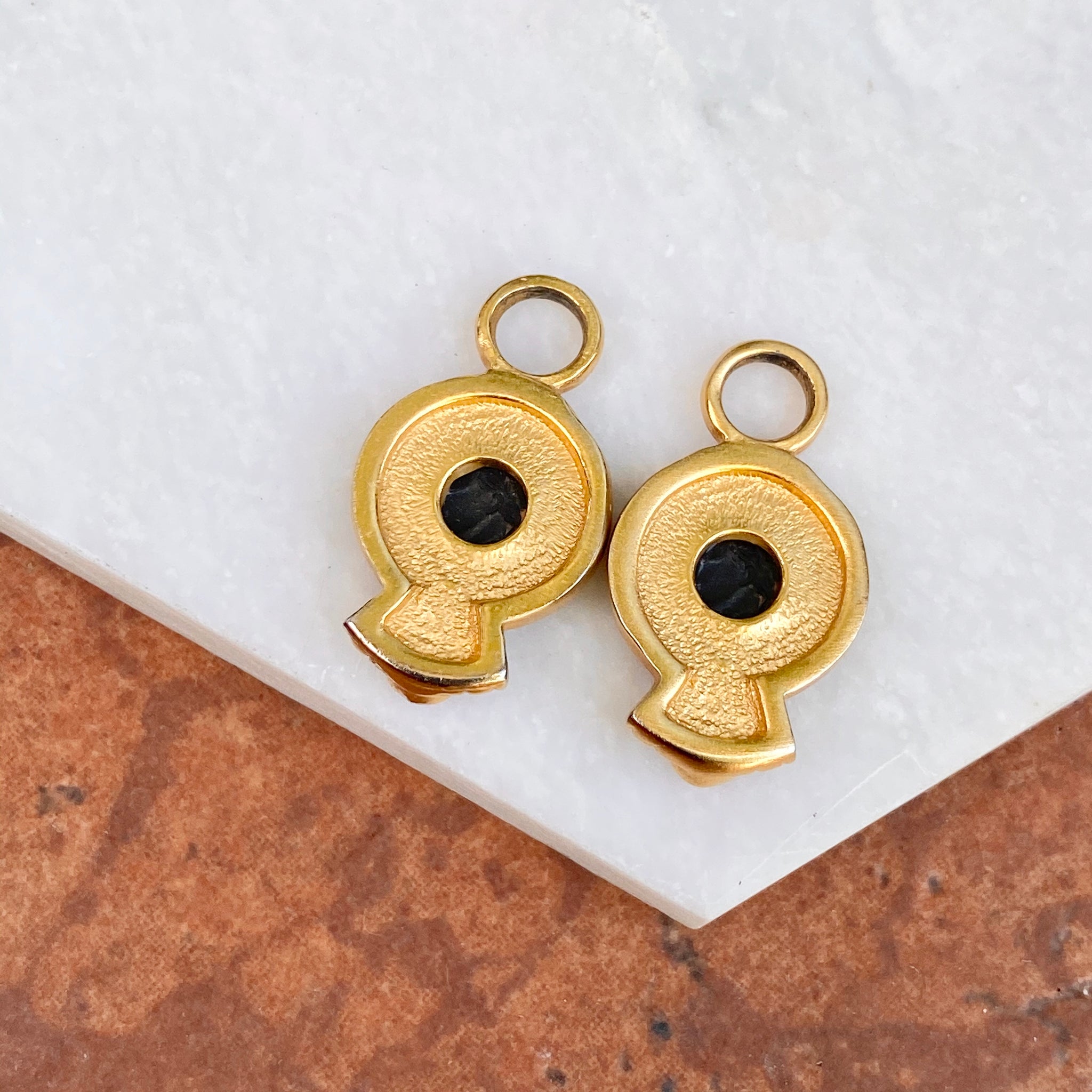 Estate 14KT Yellow Gold Vermeil Matte Faux Brome Roman Coin Earrings Charms