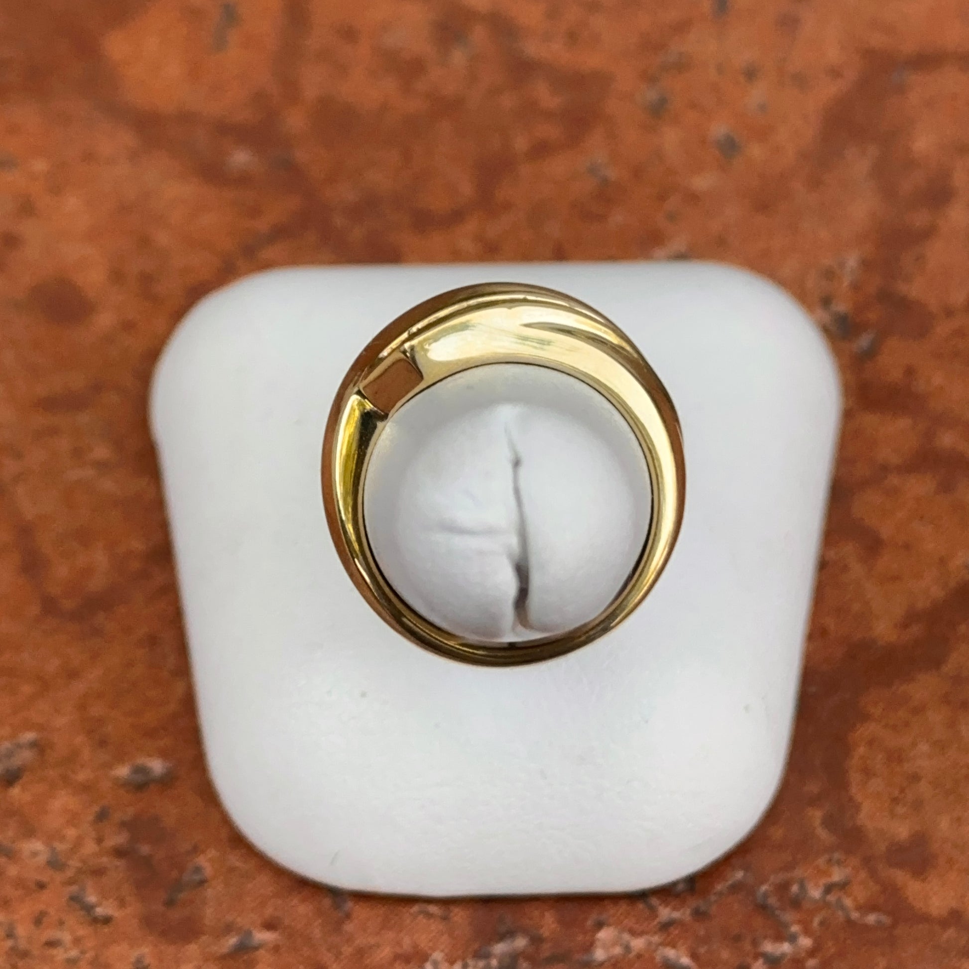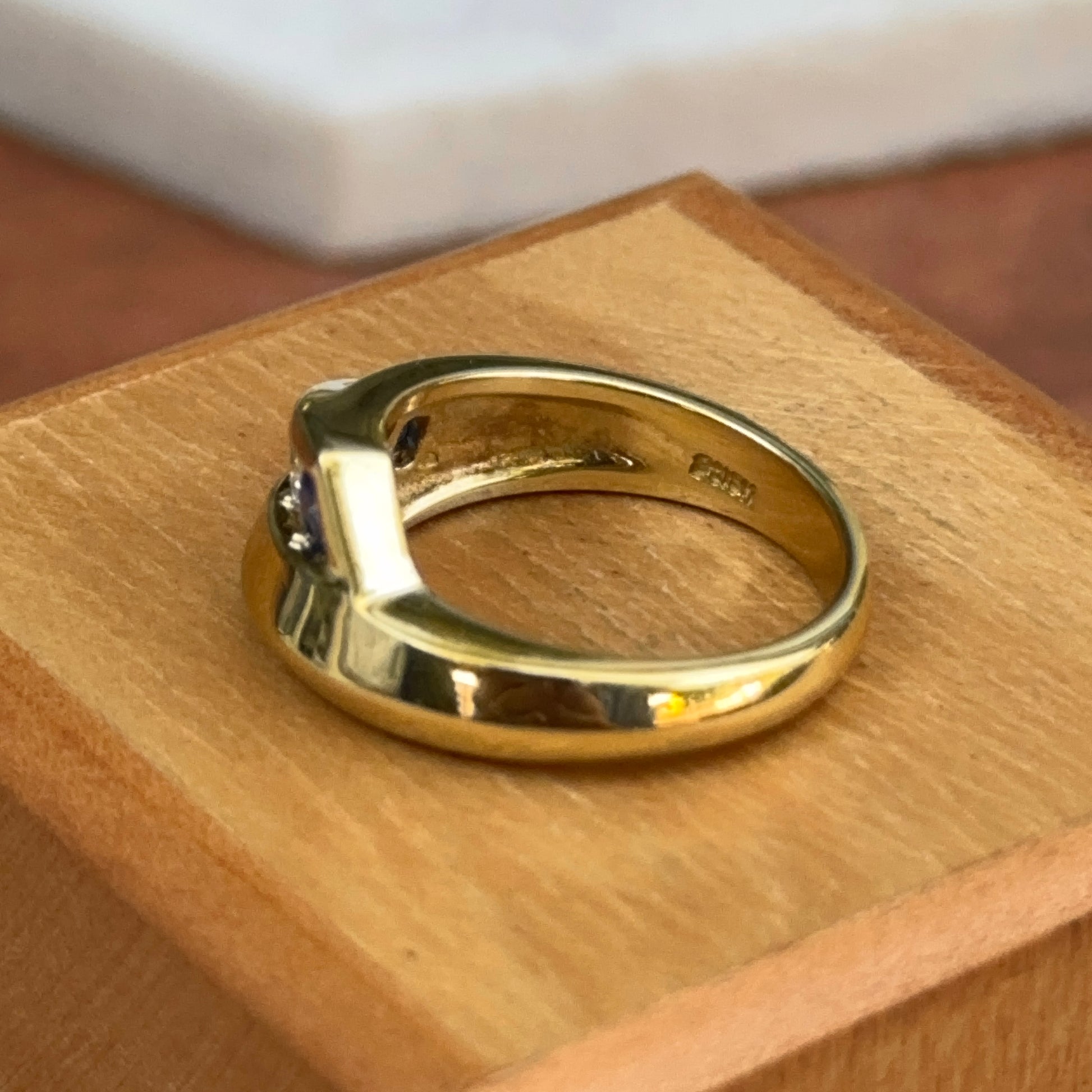 Estate 18KT Yellow Gold Round Blue Sapphire + Diamond Channel Set Ring