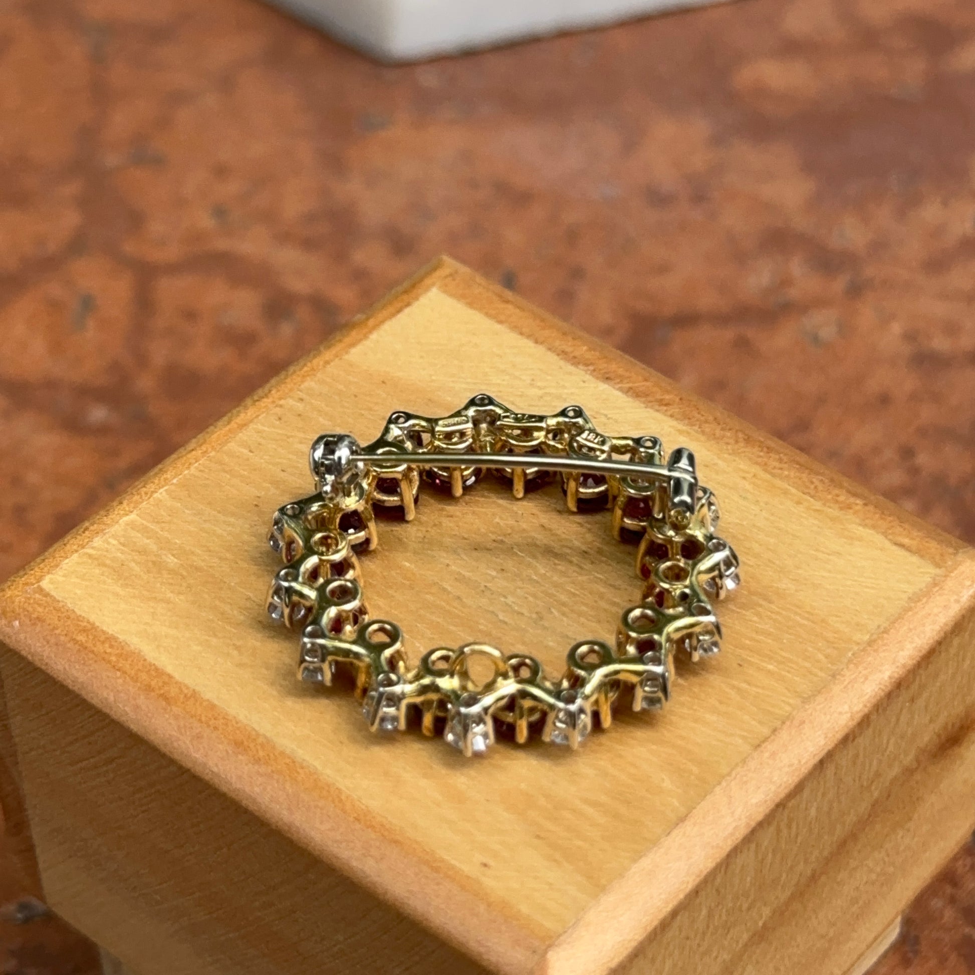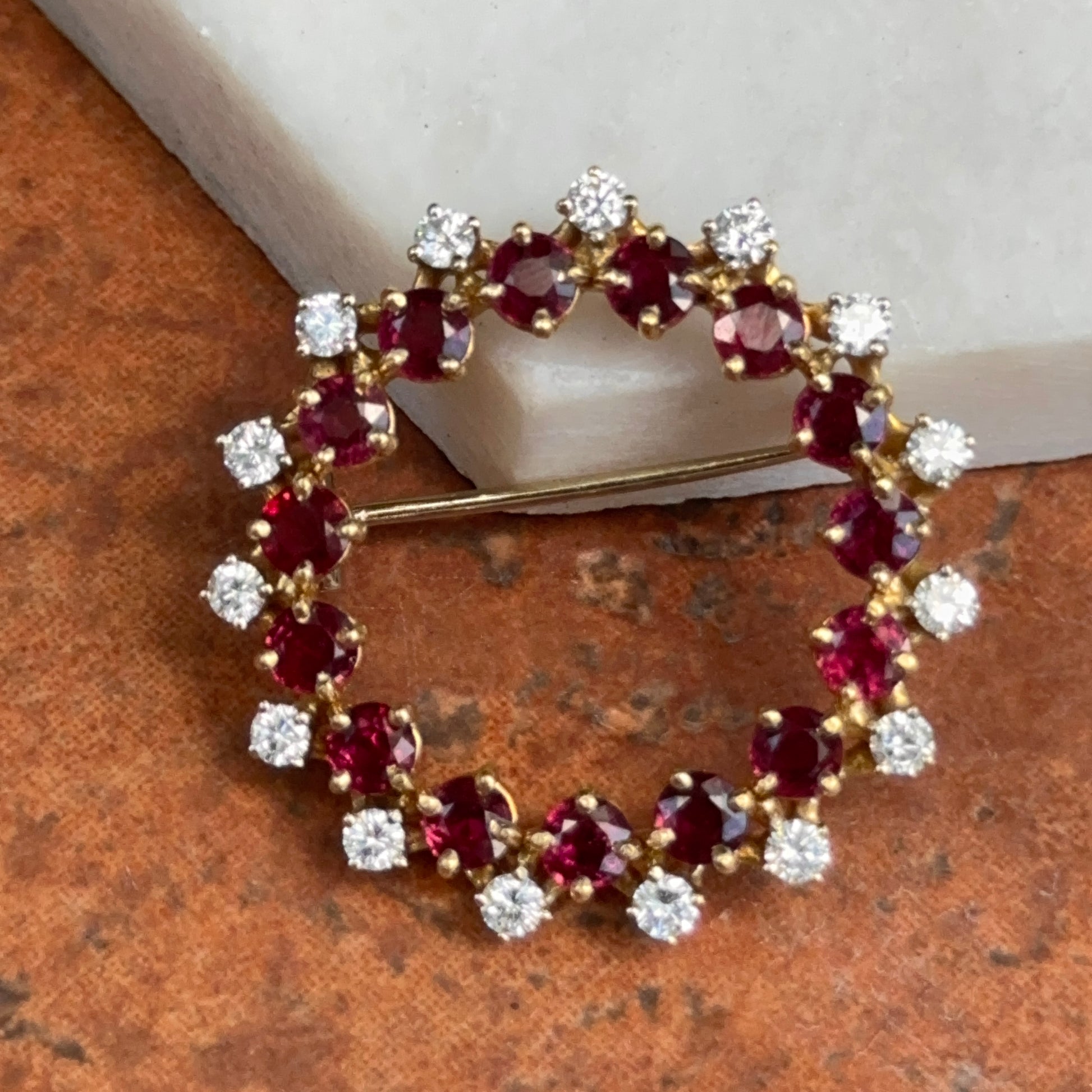 Estate 18KT Yellow Gold Round Ruby + Diamond Circle Brooch/Pin