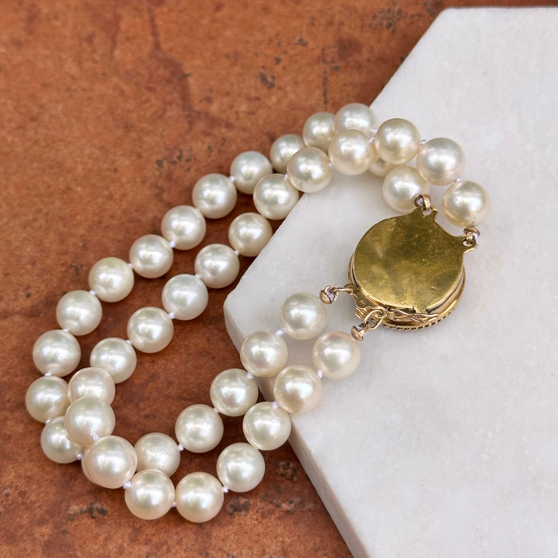 Estate 18KT-14KT Yellow Gold Two Strand Cultured Pearl Bracelet + Roman Coin