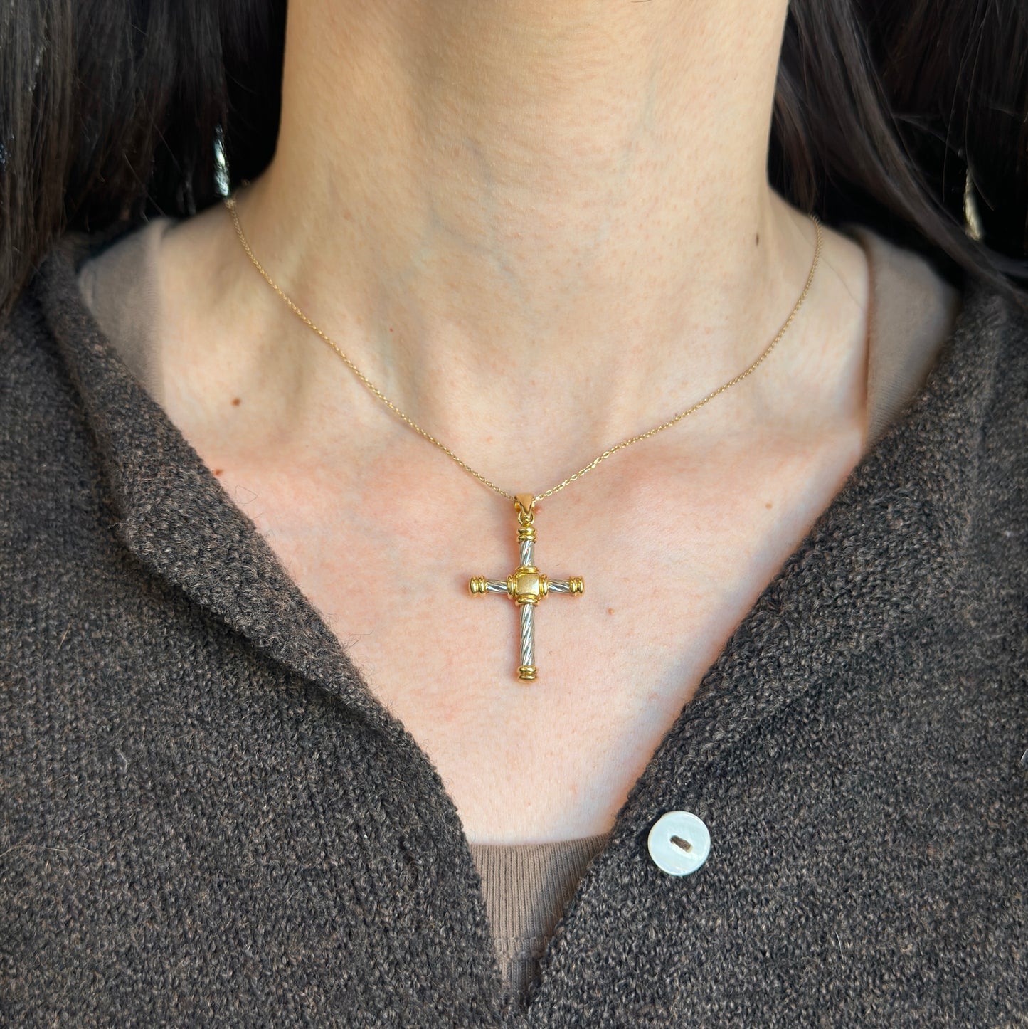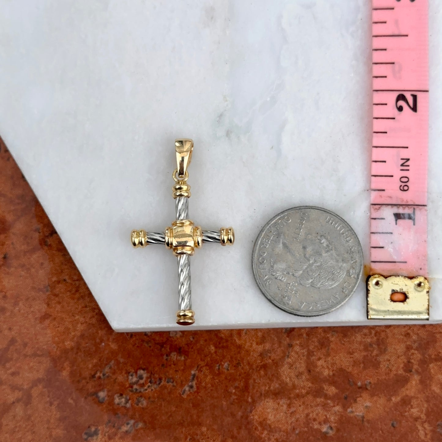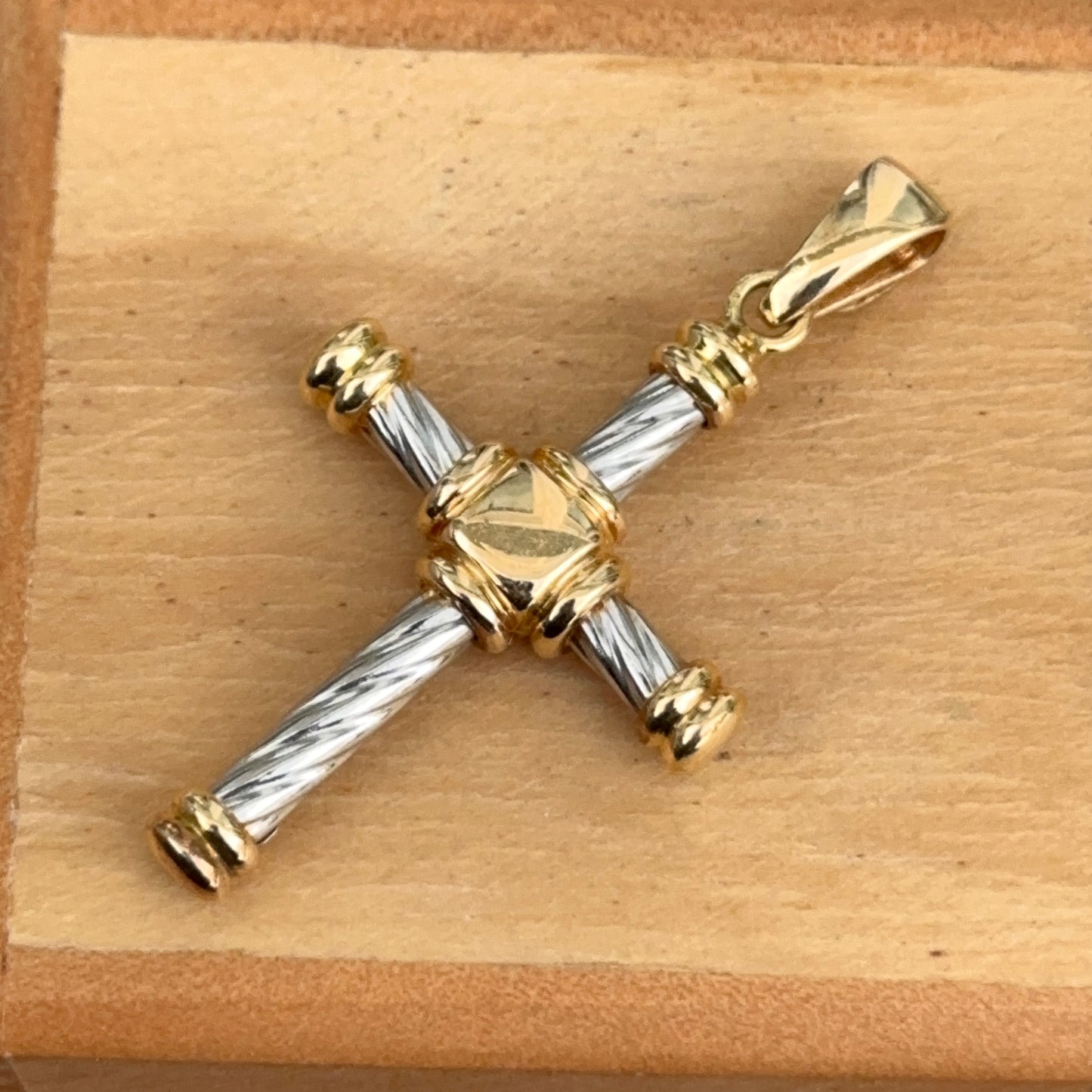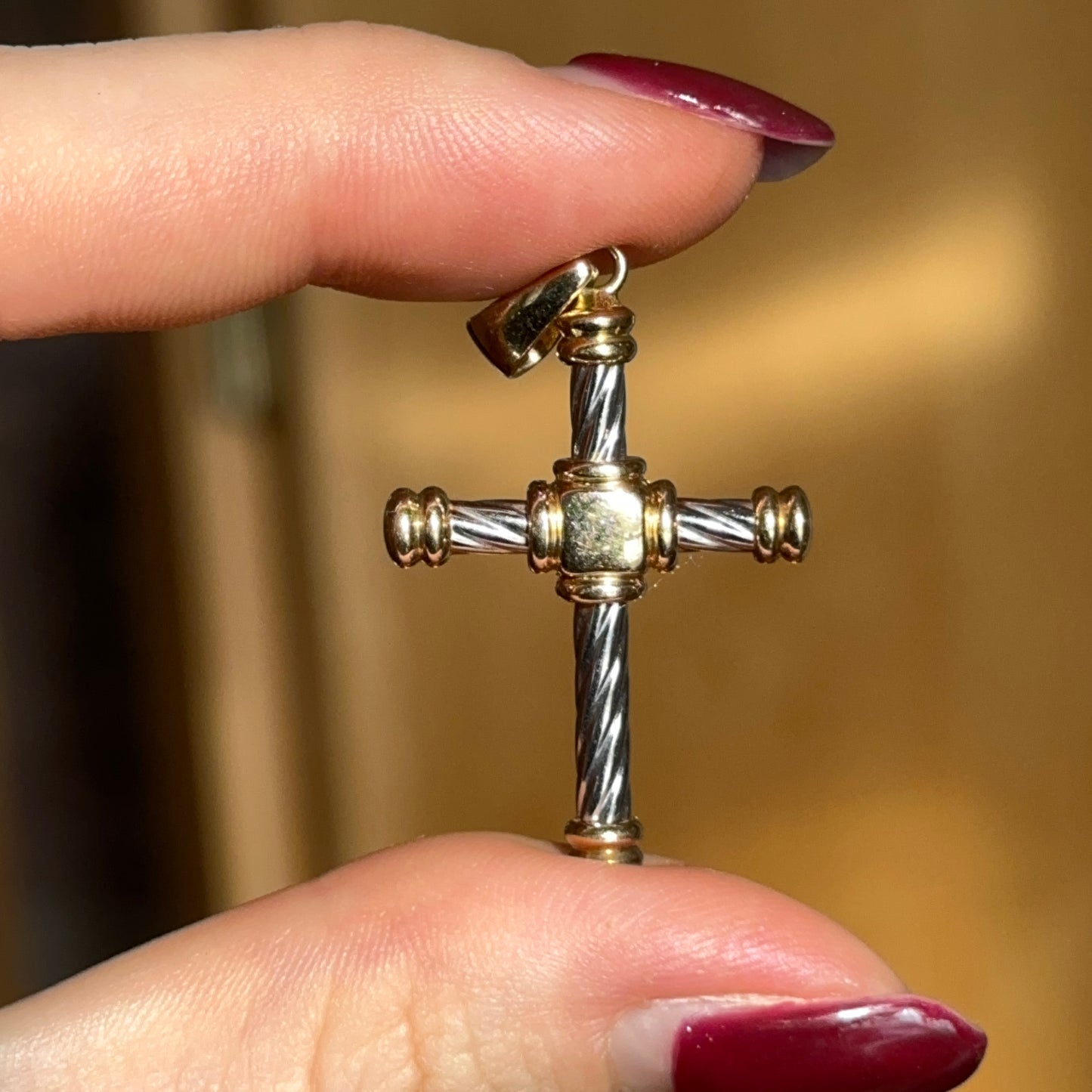 Estate 18KT White + Yellow Gold Twisted Design Cross Pendant