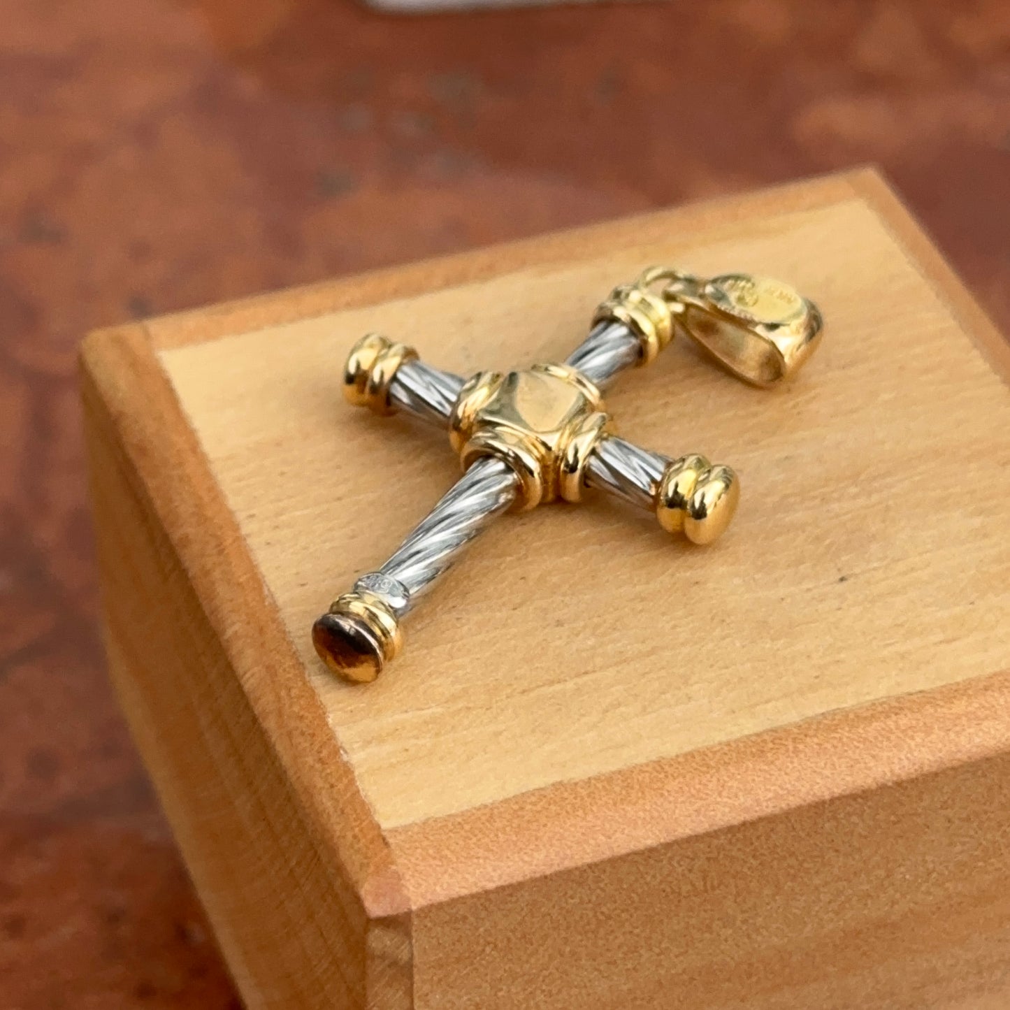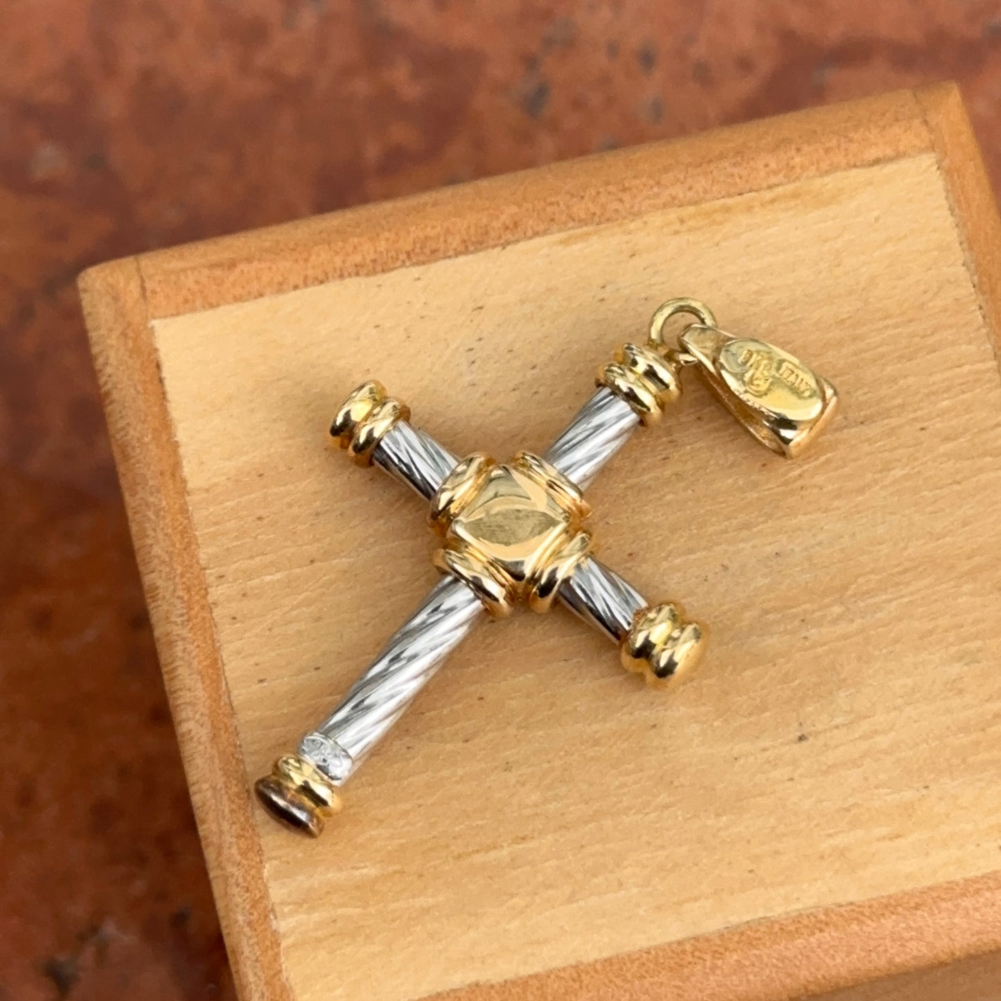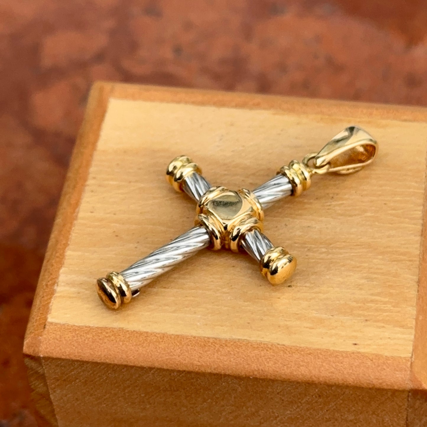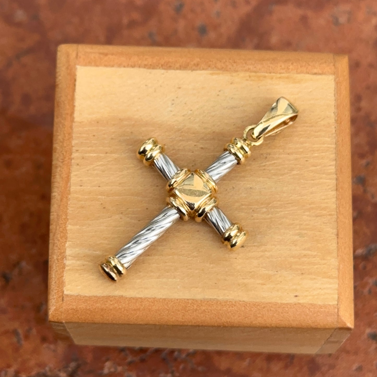 Estate 18KT White + Yellow Gold Twisted Design Cross Pendant