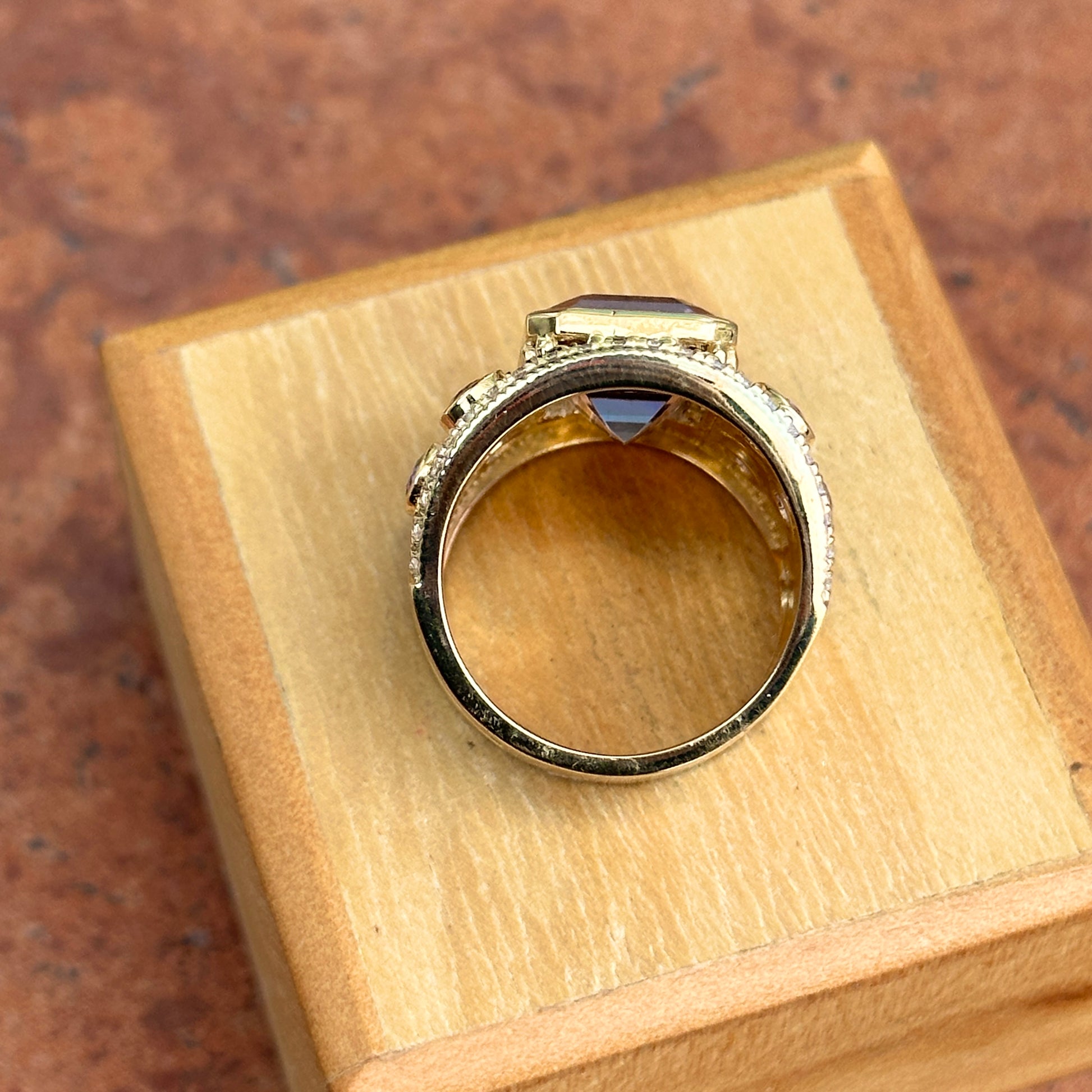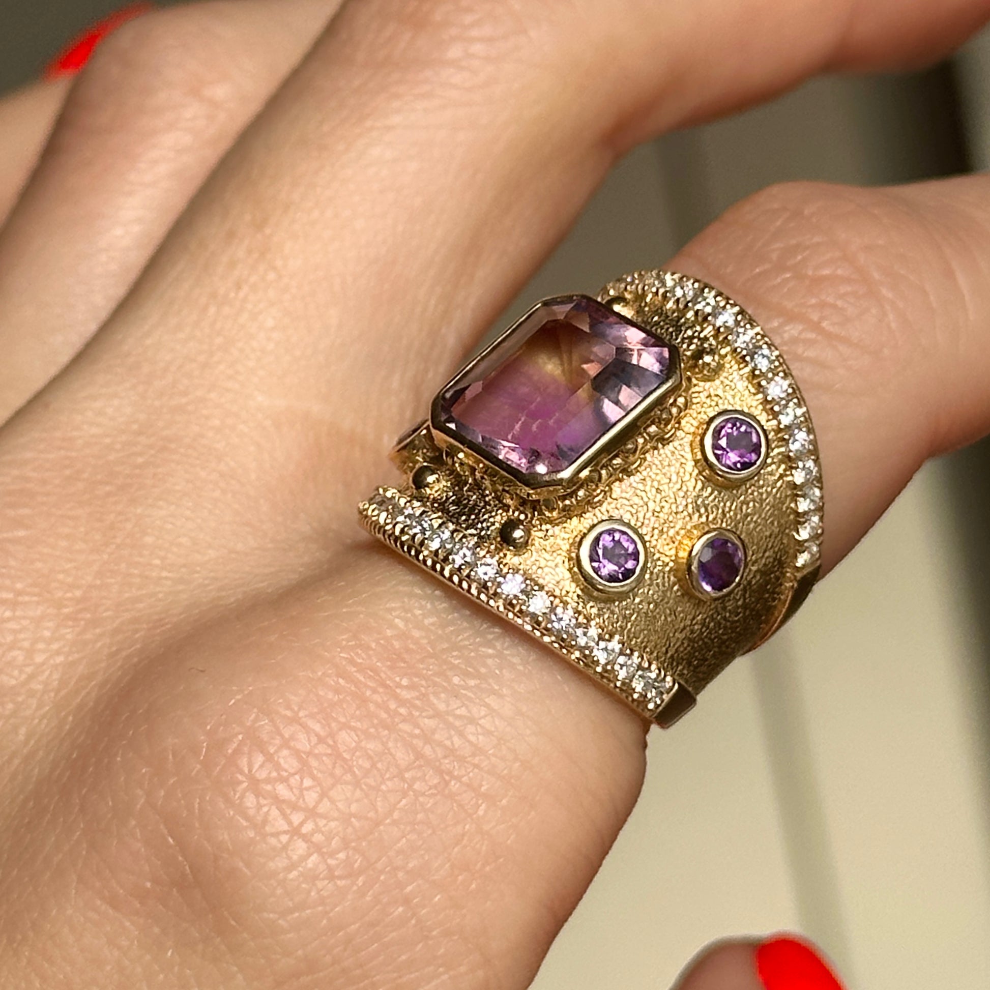 Estate/ Vintage 18KT Yellow Gold Byzantine Etruscan Amethyst Ametrine & Diamond Accent Ring