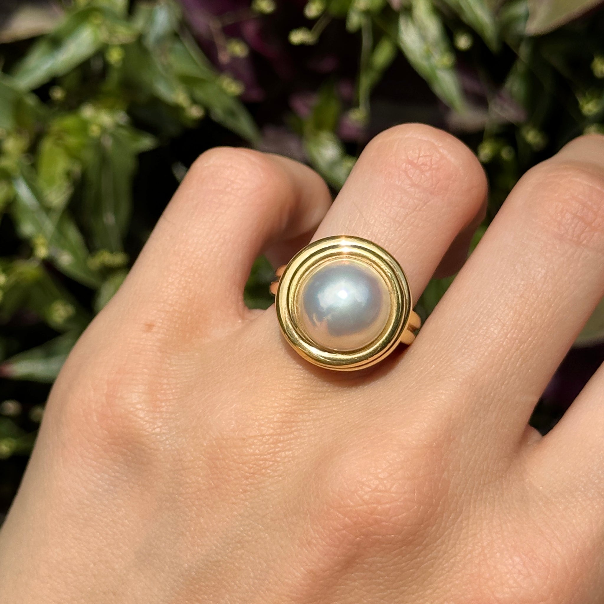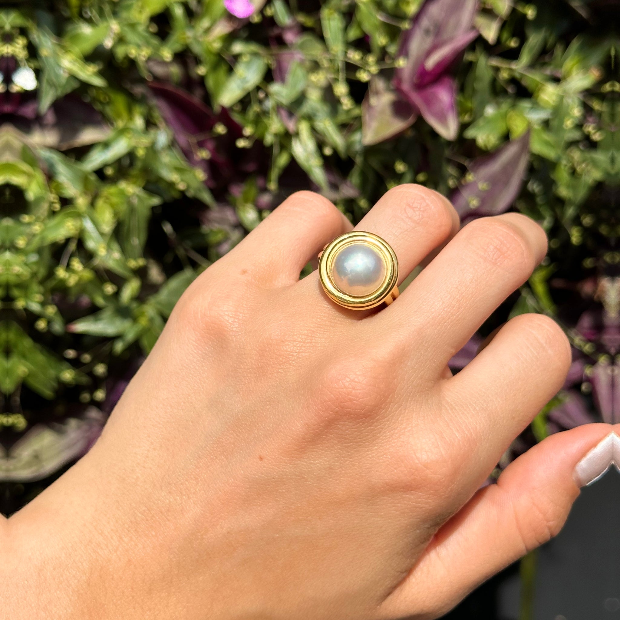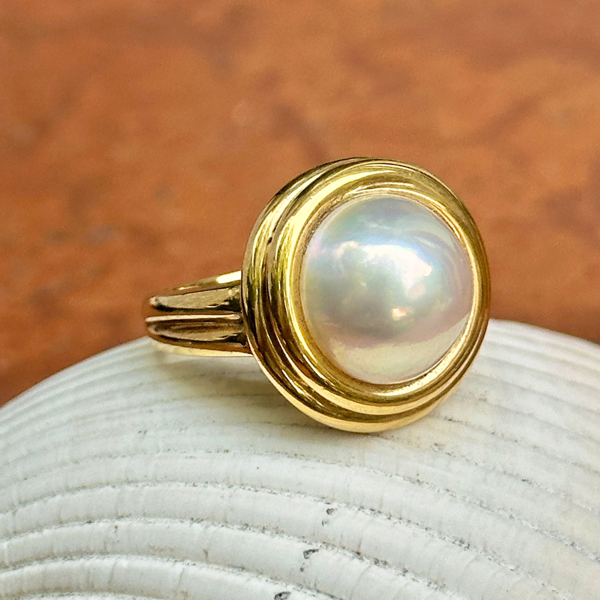 Estate 18KT Yellow Gold Bezel Round Mabe Pearl Ring