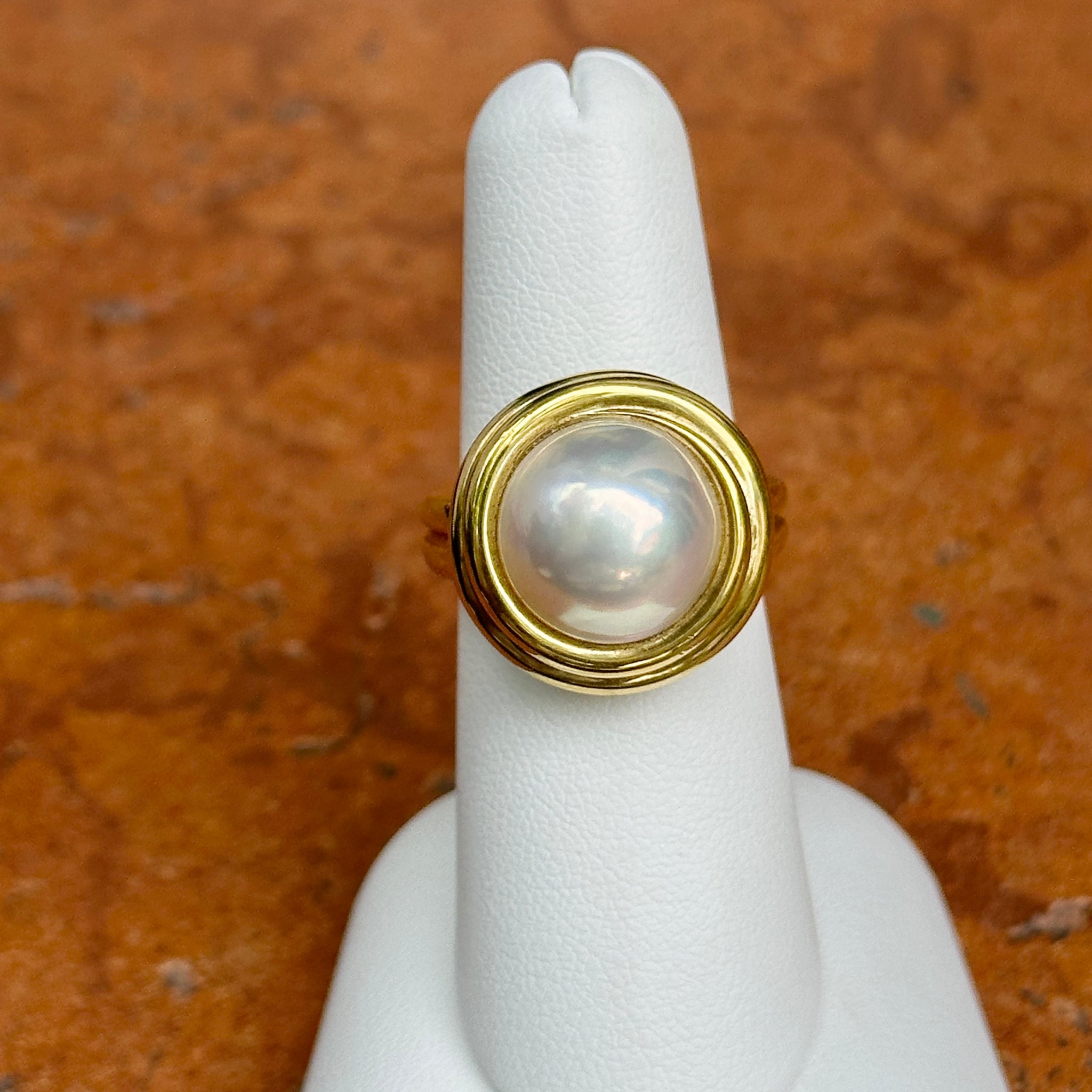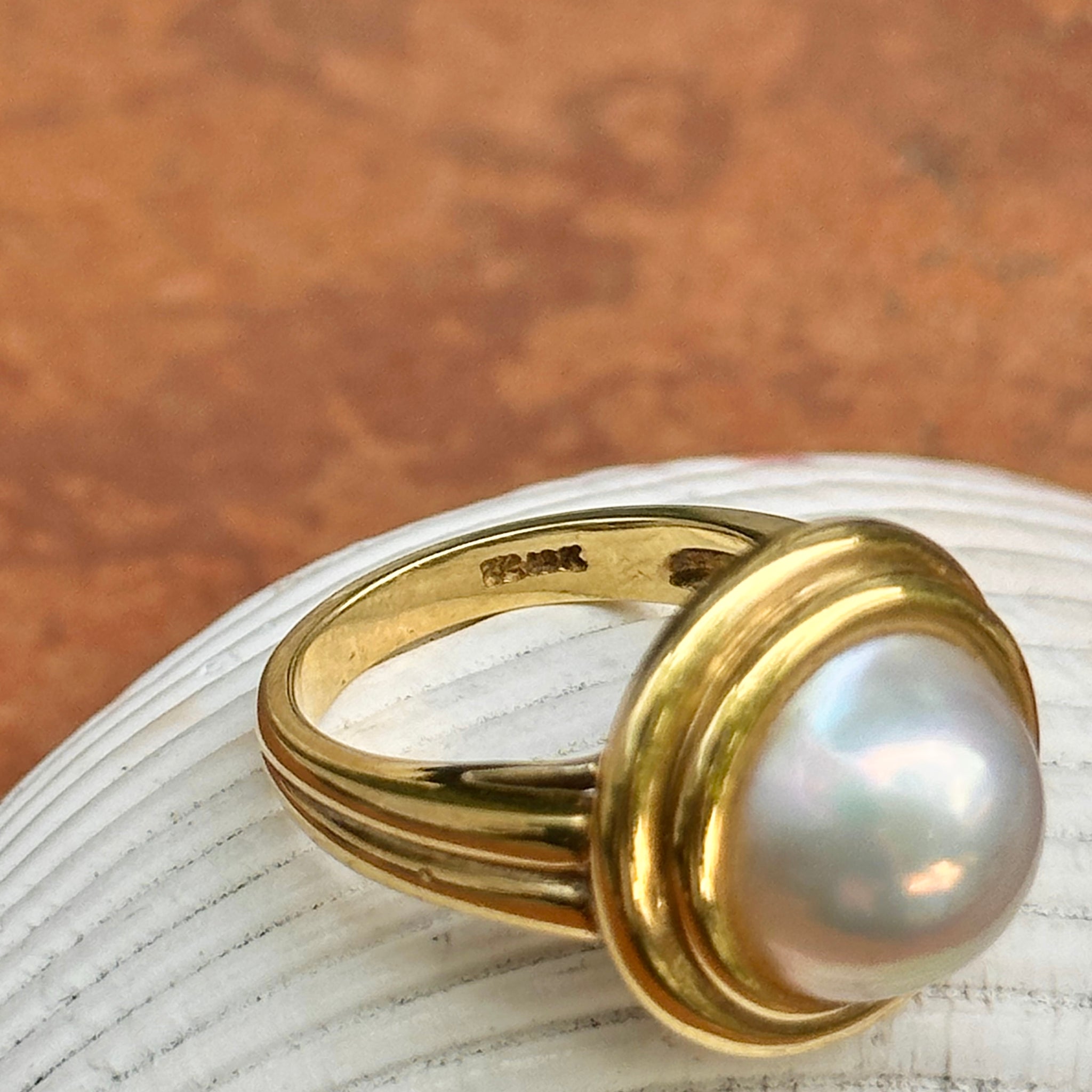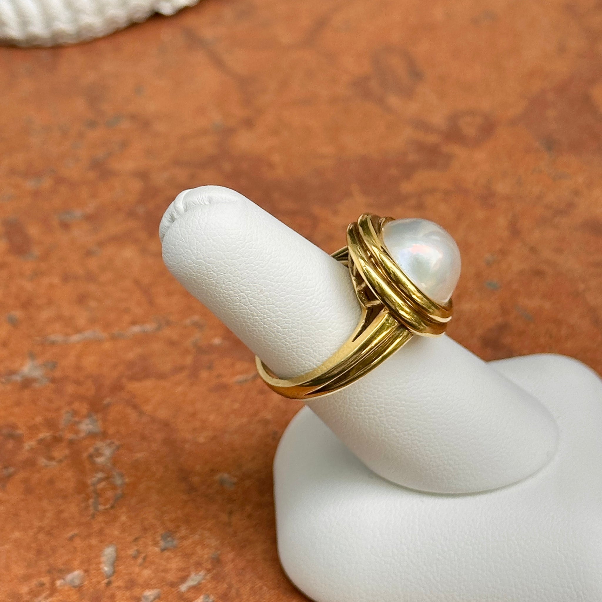 Estate 18KT Yellow Gold Bezel Round Mabe Pearl Ring