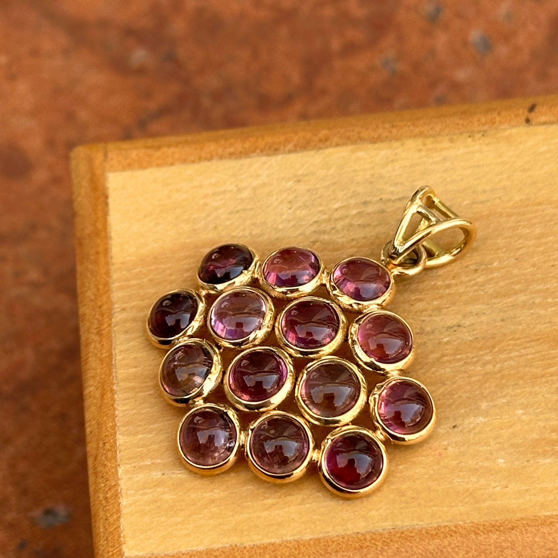 Estate/ Vintage 18K Yellow Gold Pendant with Cabochon, Round, Pink Tourmalines Bezel Set East West Pendant