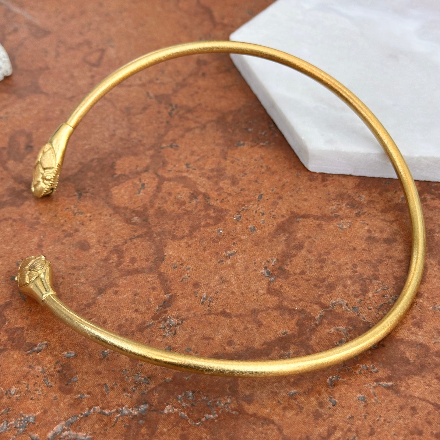 Estate Vintage Polished 18KT Yellow Gold Neck Matte Shiny and Textured Open Cuff Collar Necklace Snake Sepentine Design