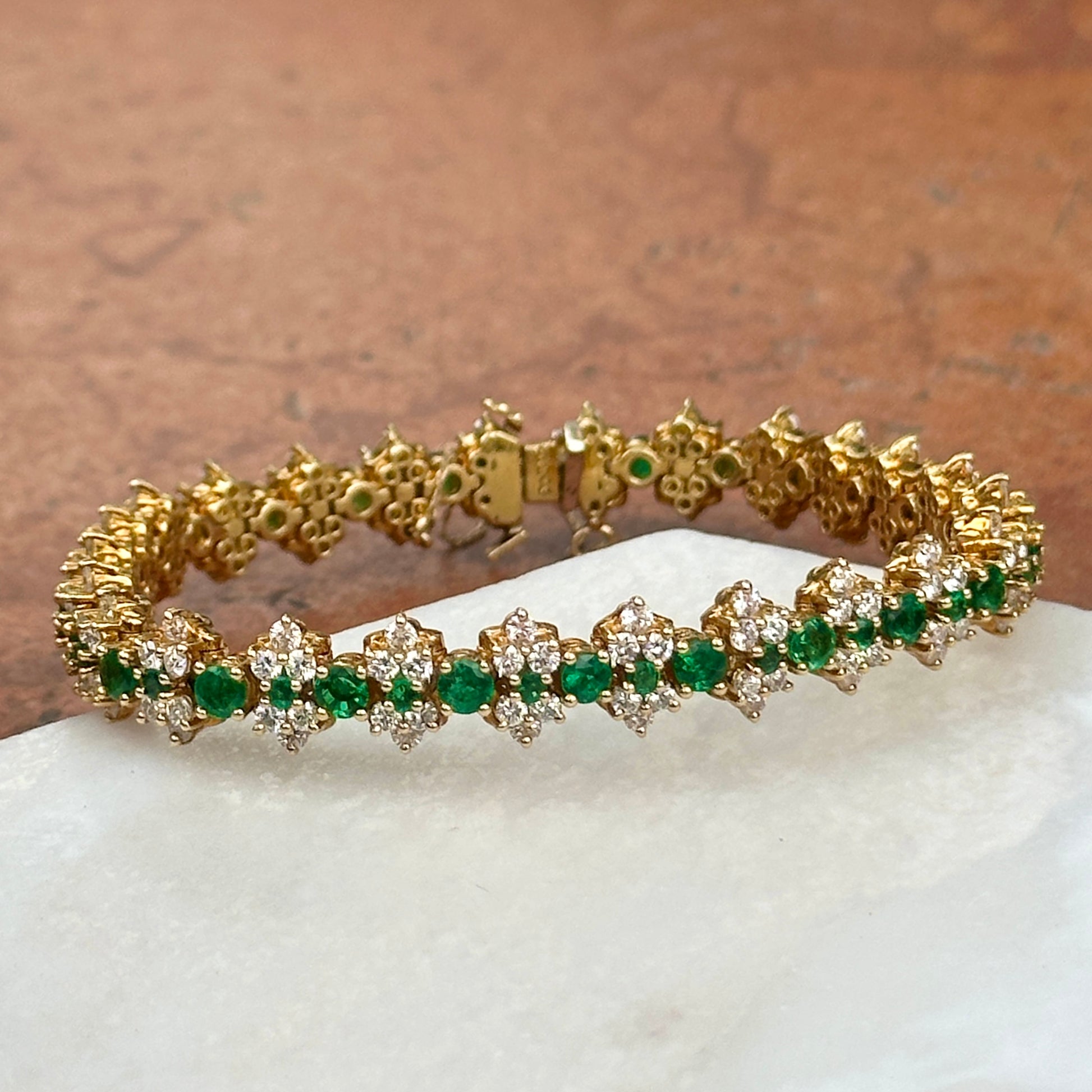 Estate 18KT Yellow Gold Emerald + Diamond Tennis Bracelet