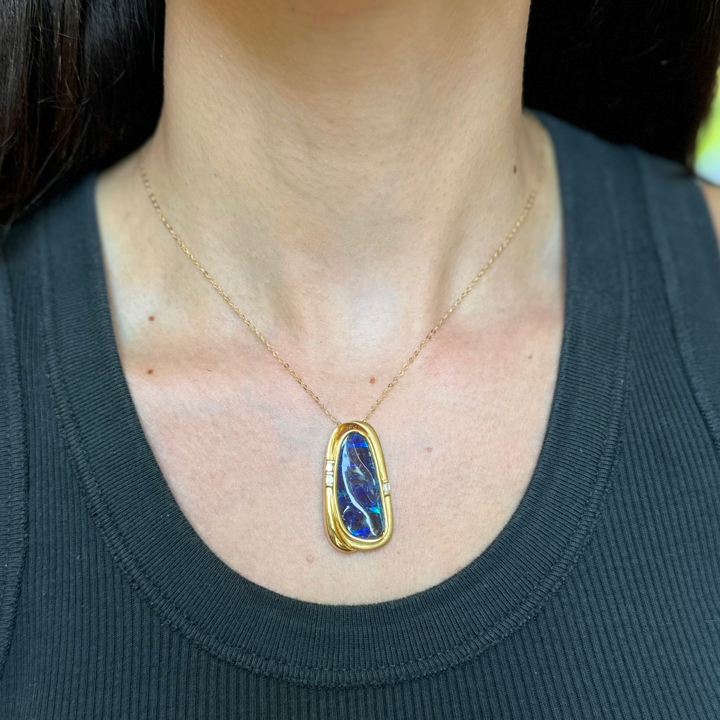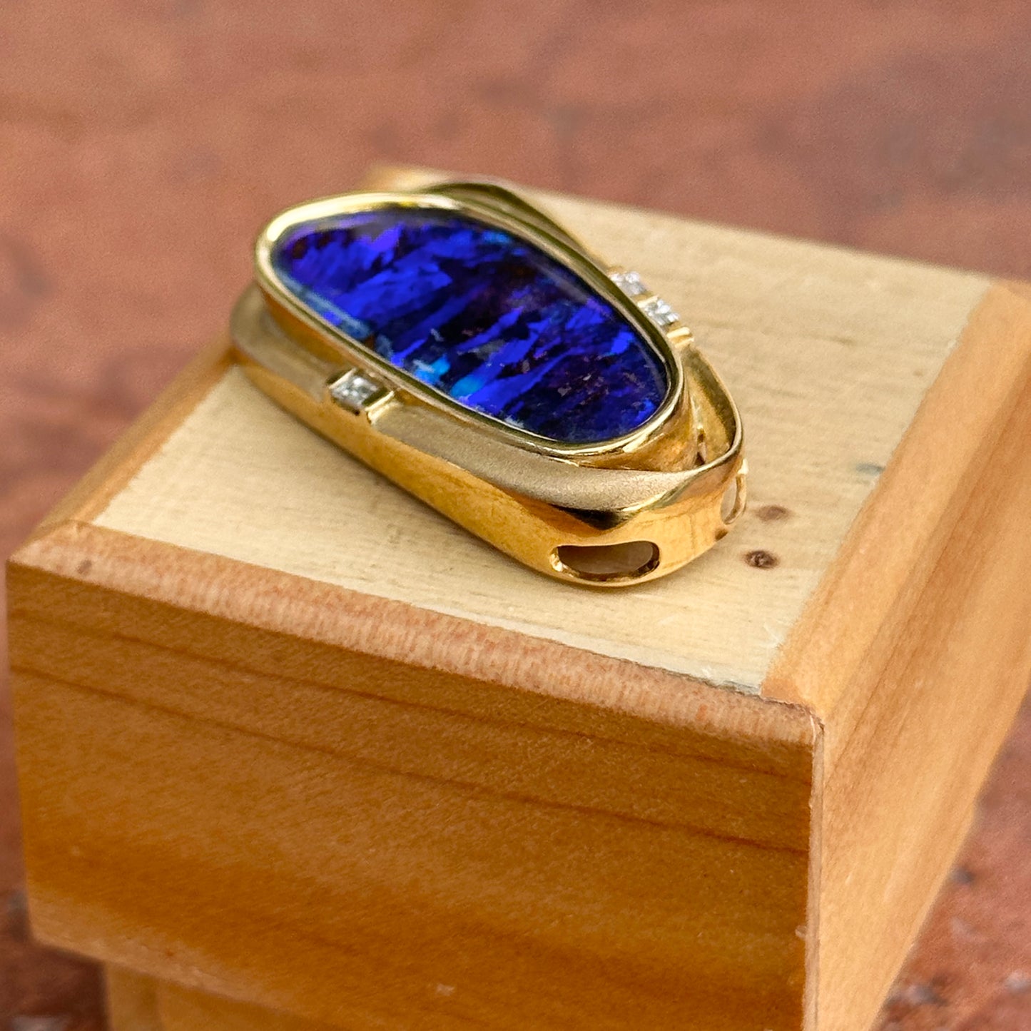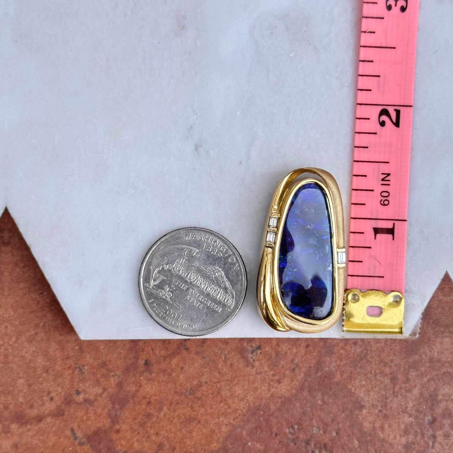 Estate 18KT Yellow Gold Large Boulder Opal + Diamond Pendant Pin