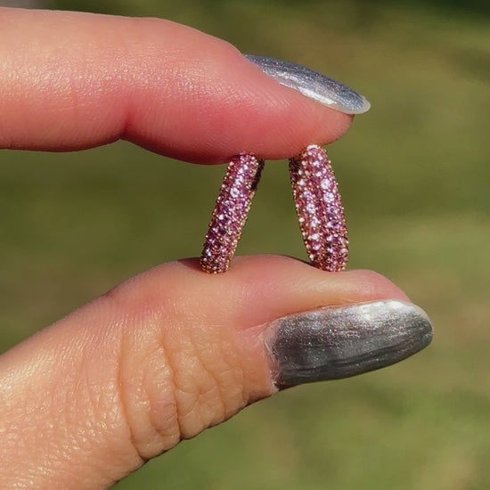 Estate 18KT Yellow Gold Pave Pink Sapphire Huggie Hoop Earrings