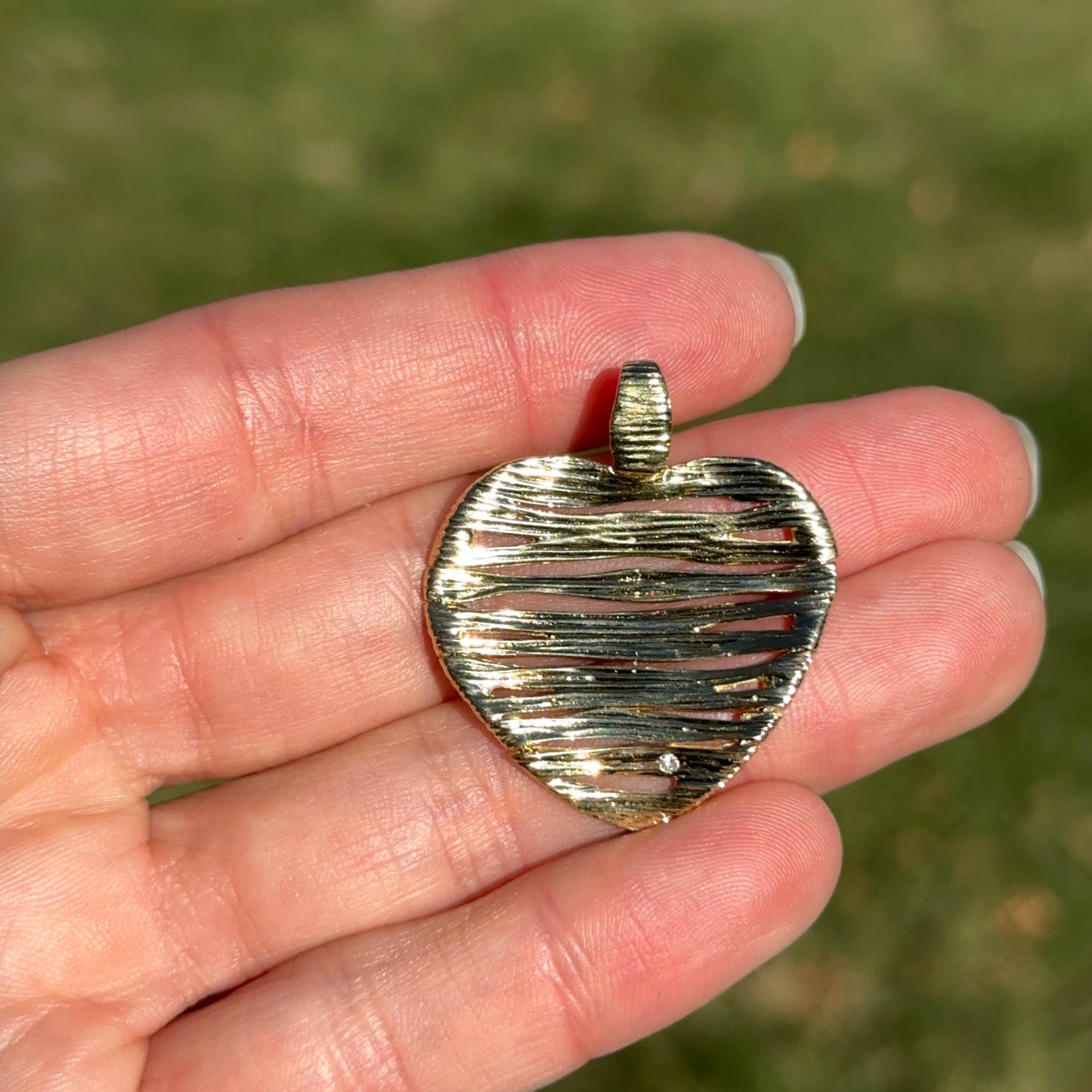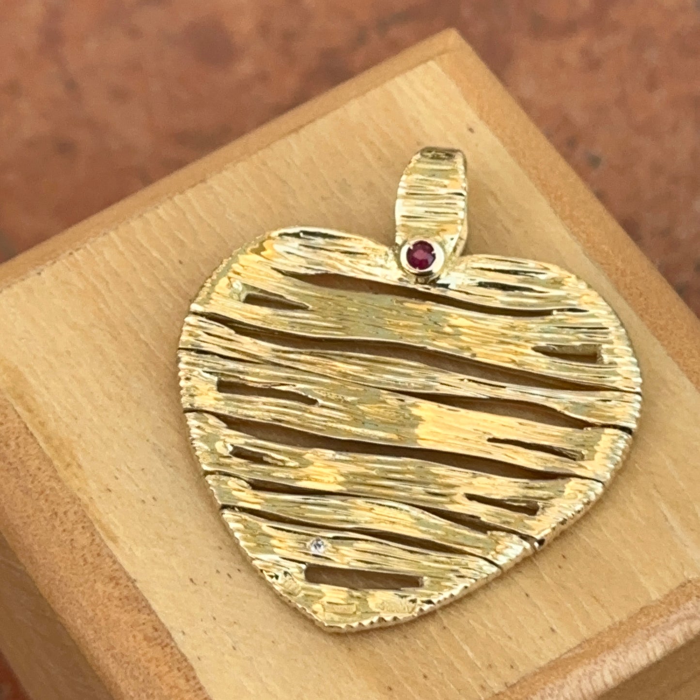 Estate/ Vintage Roberto Coin 18K Yellow Gold Heart Pendant with Genuine Ruby and Diamond in a Brushed/Matte Finish from "The elephantino collection".