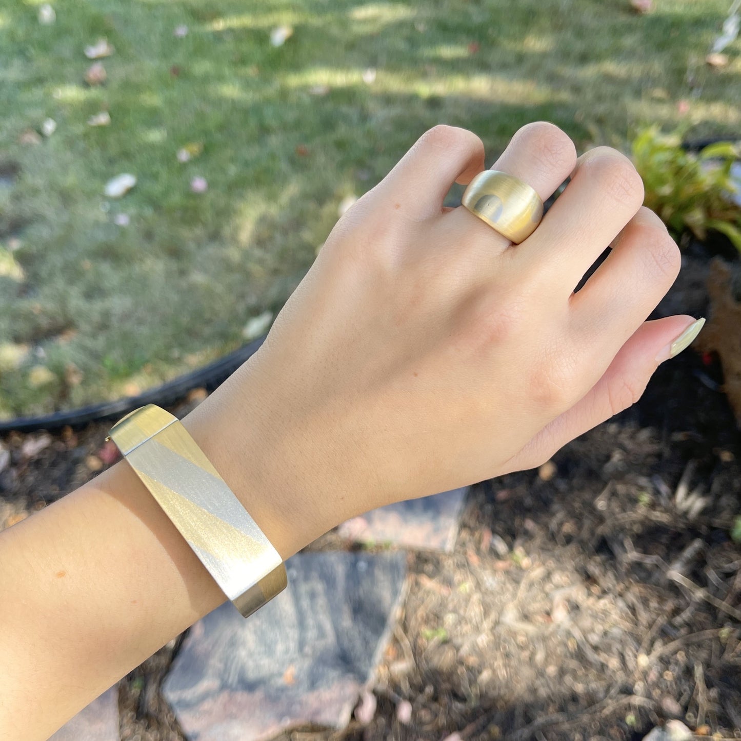 Estate 18KT Yellow Gold + White Gold Mid Century Domed Matte Ring