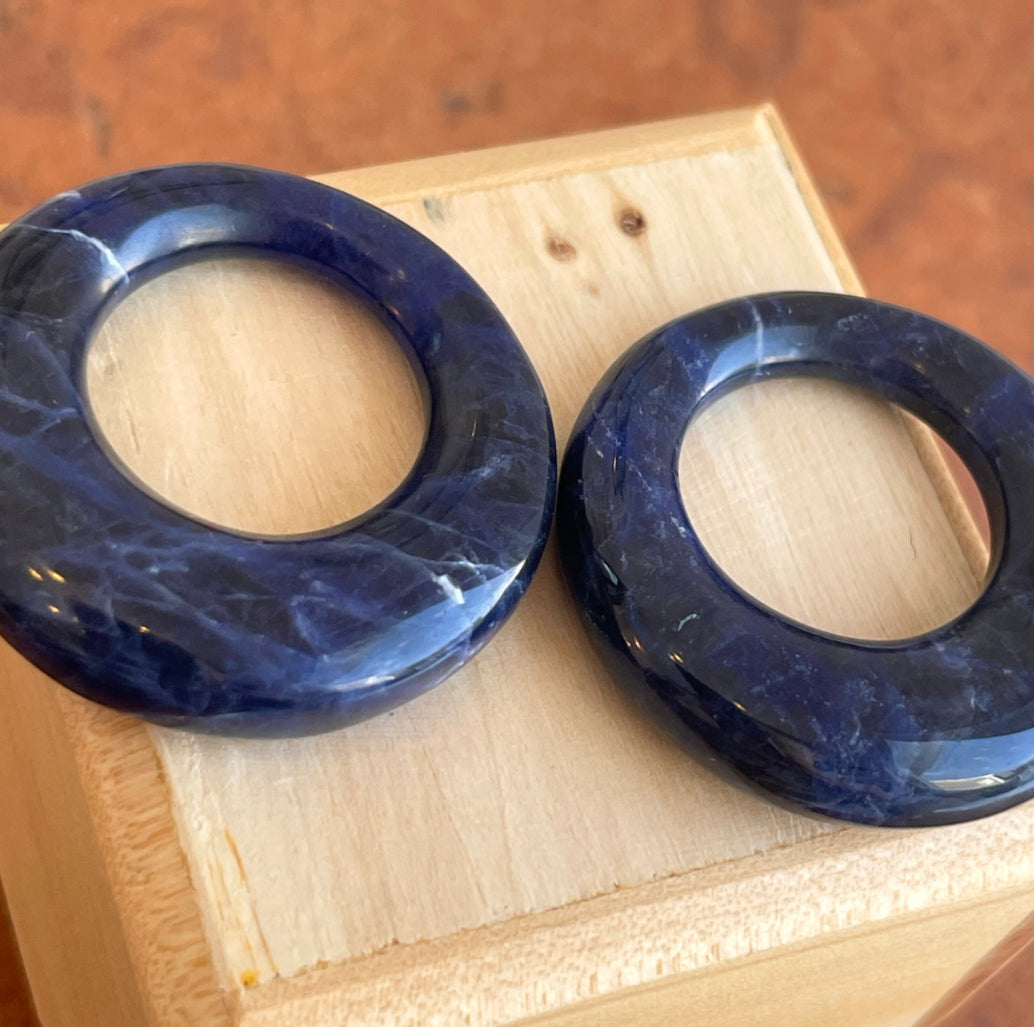Genuine Dark Blue Sodalite Gemstone Open Round Disc Earring Charms