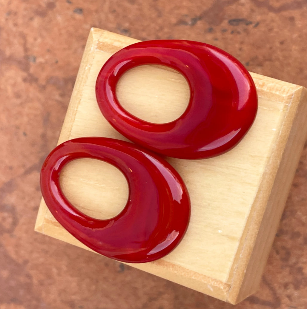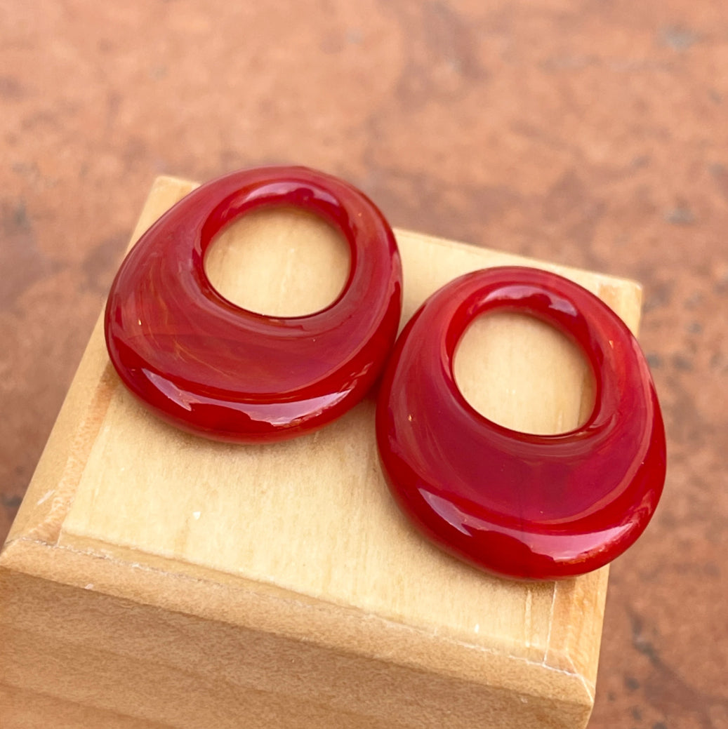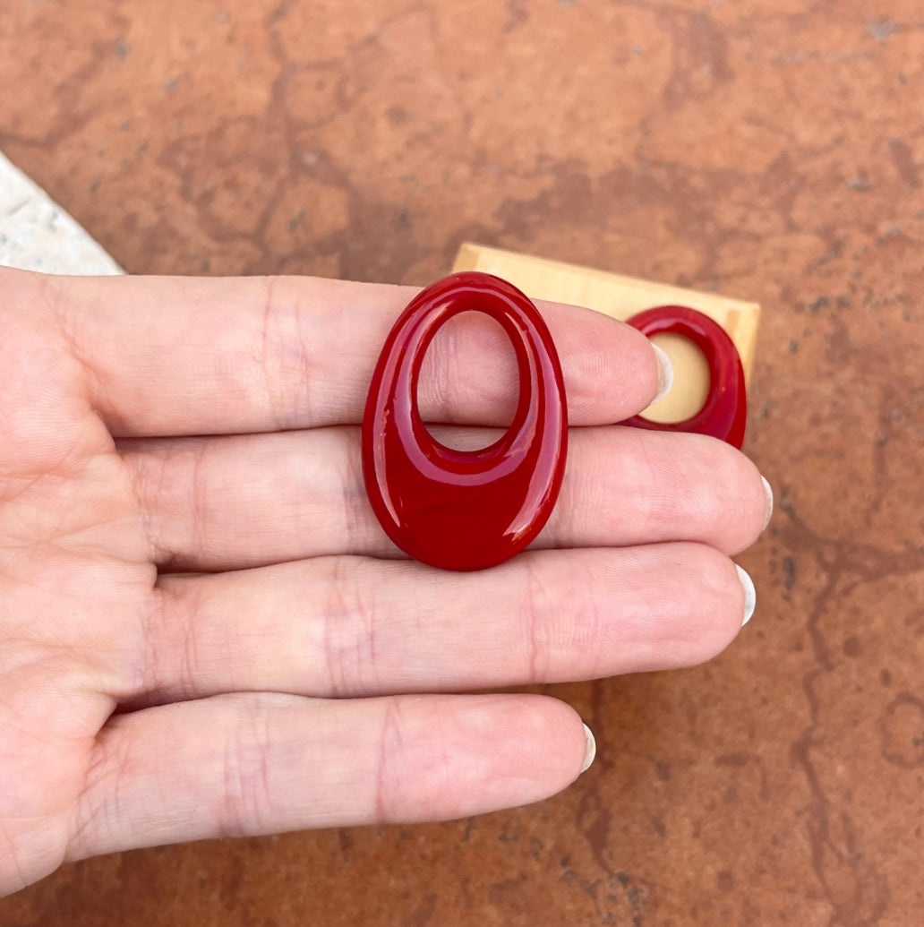 Preowned Red Onyx Polished Oval Disc To Create Earring Charms