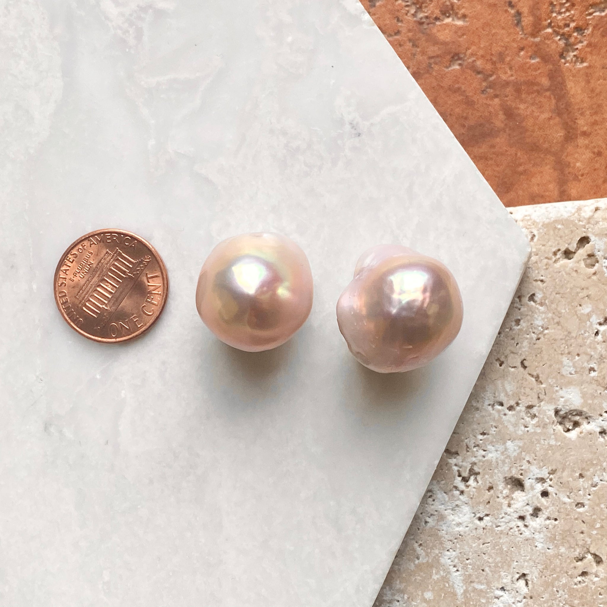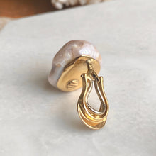 Estate Designer YVEL 18KT Yellow Gold Large Pink South Sea Baroque Pearl Clip-On Earrings