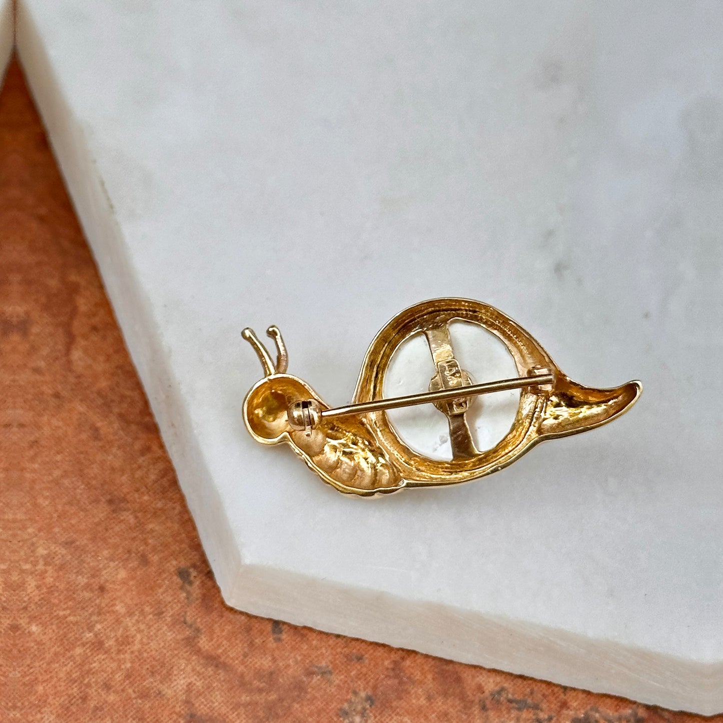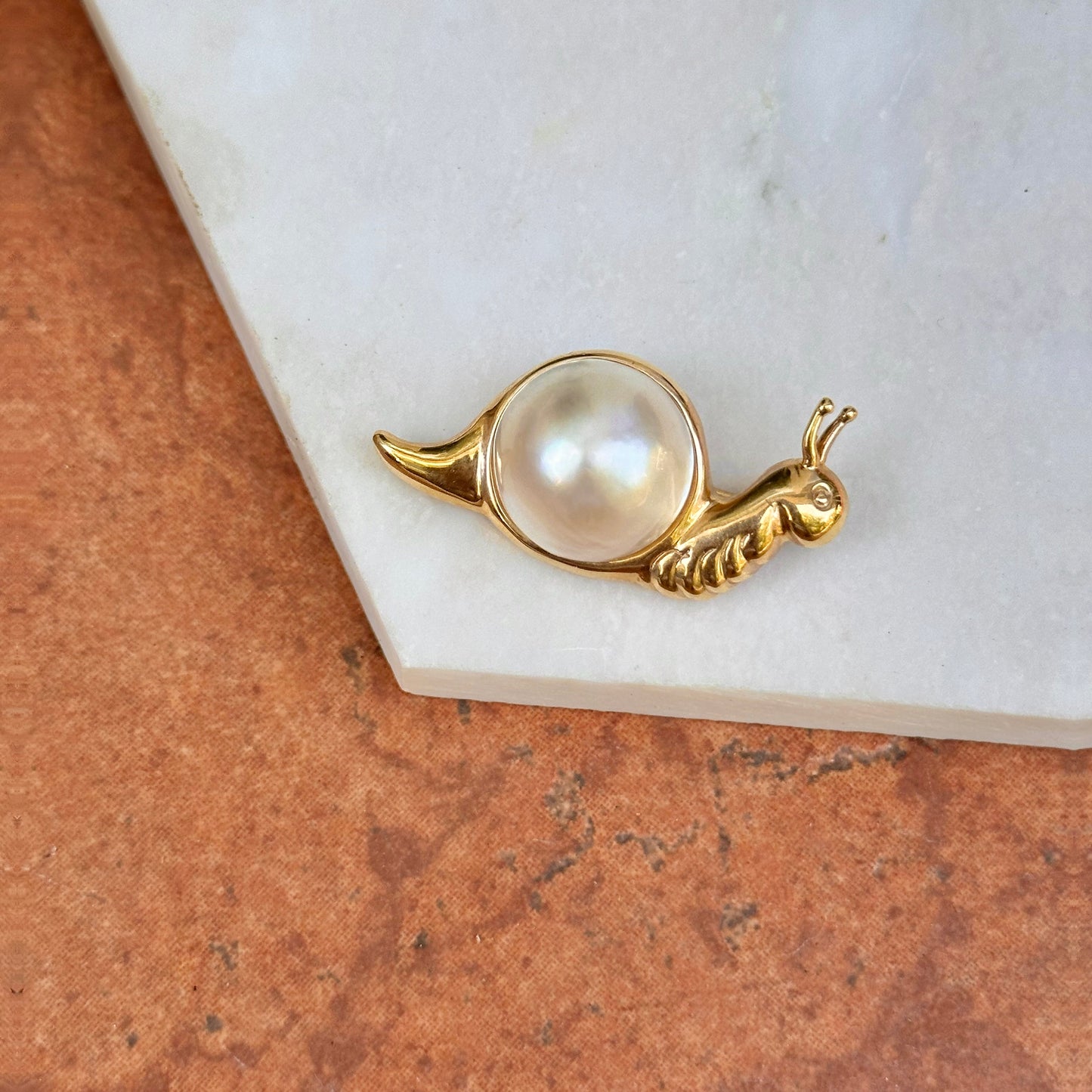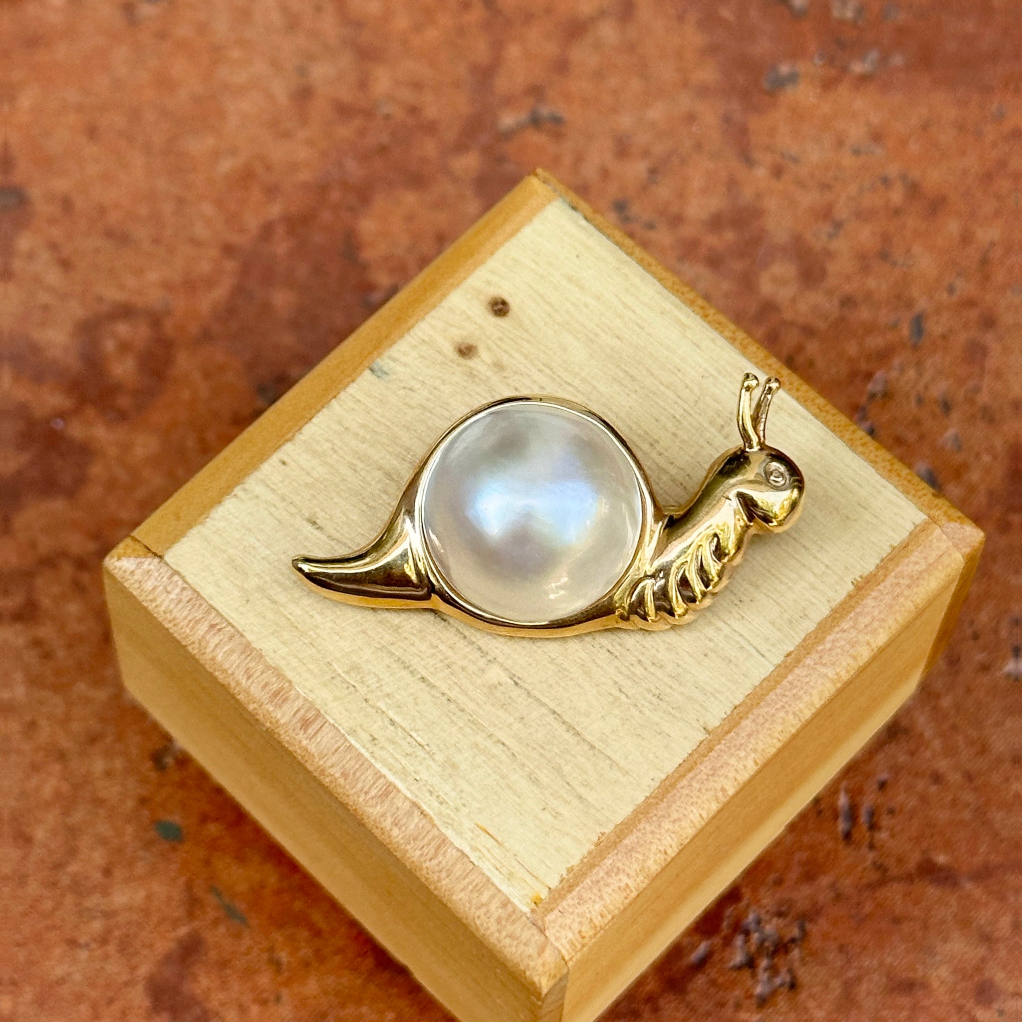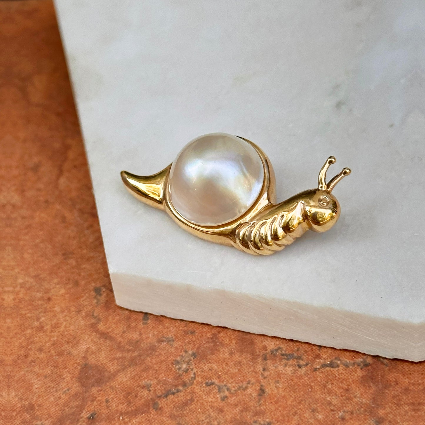 Estate MAZ 14KT Yellow Gold Mabe Pearl Snail Pin Brooch