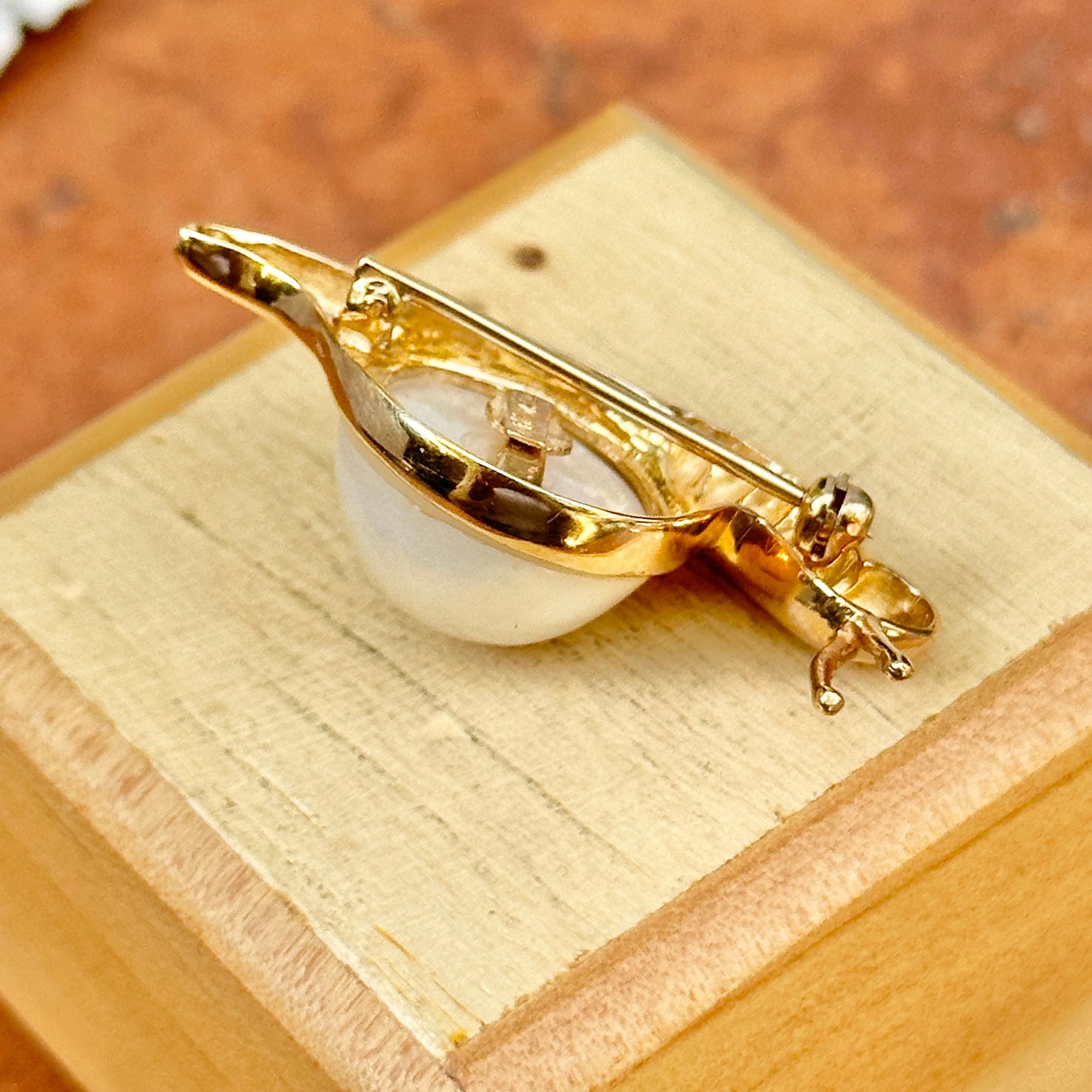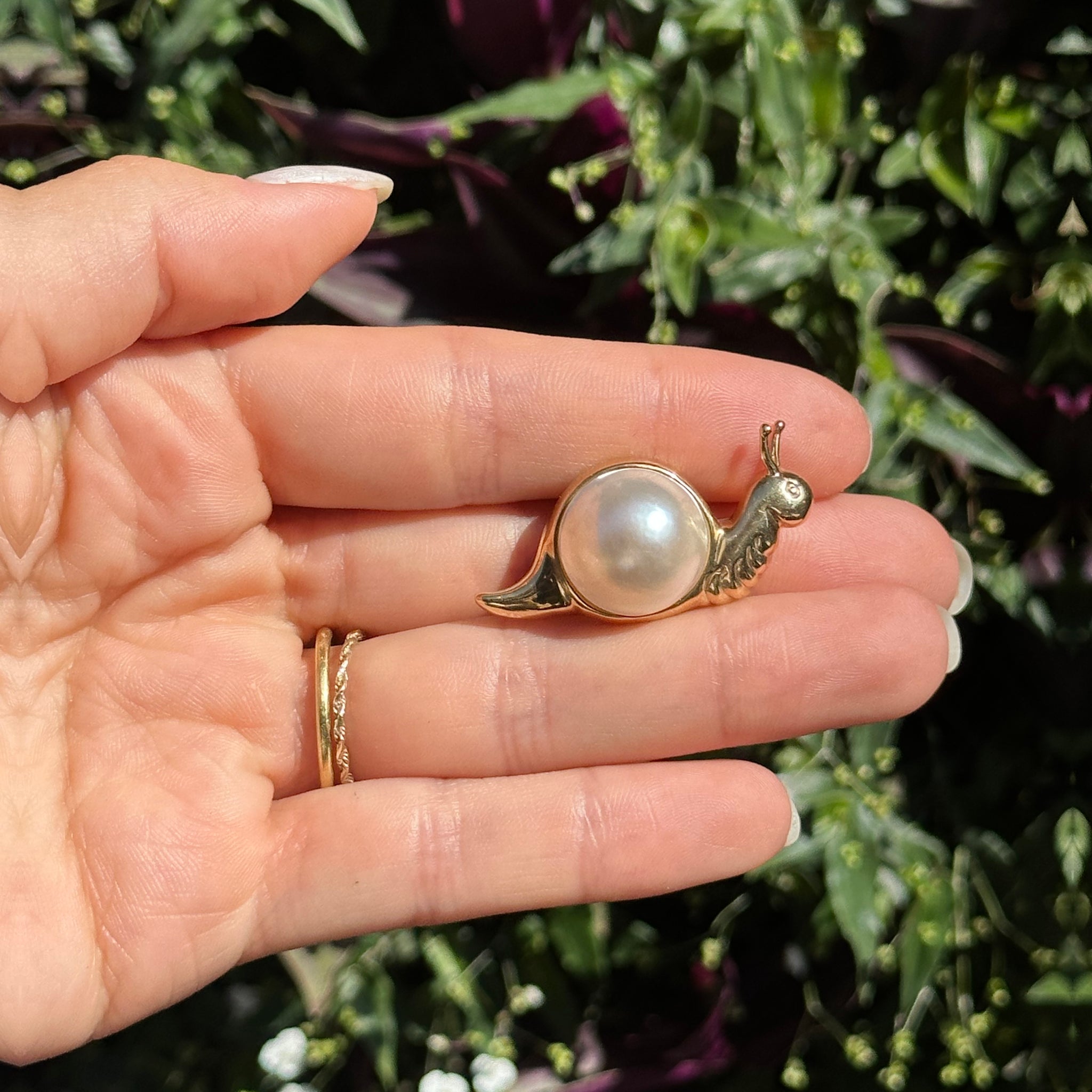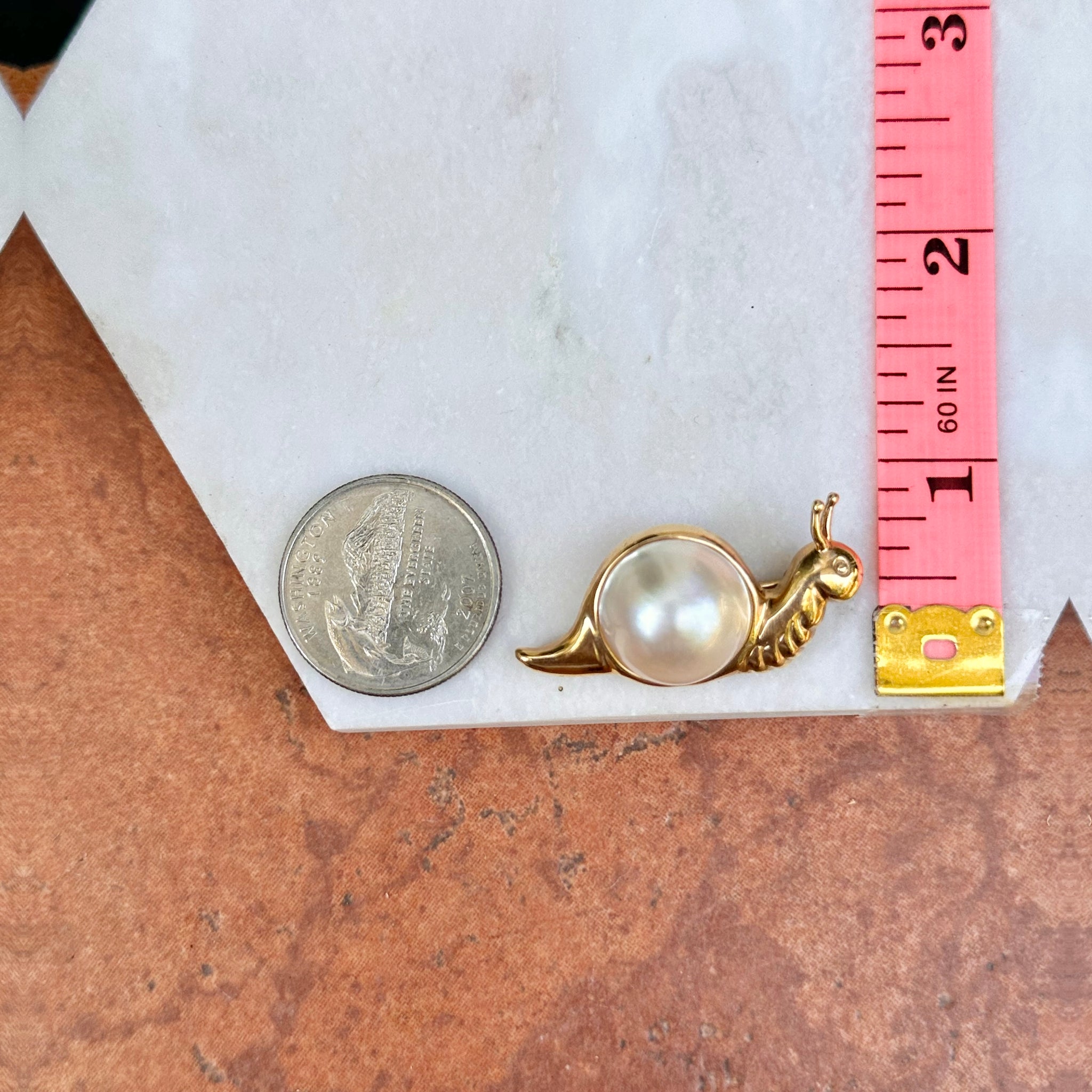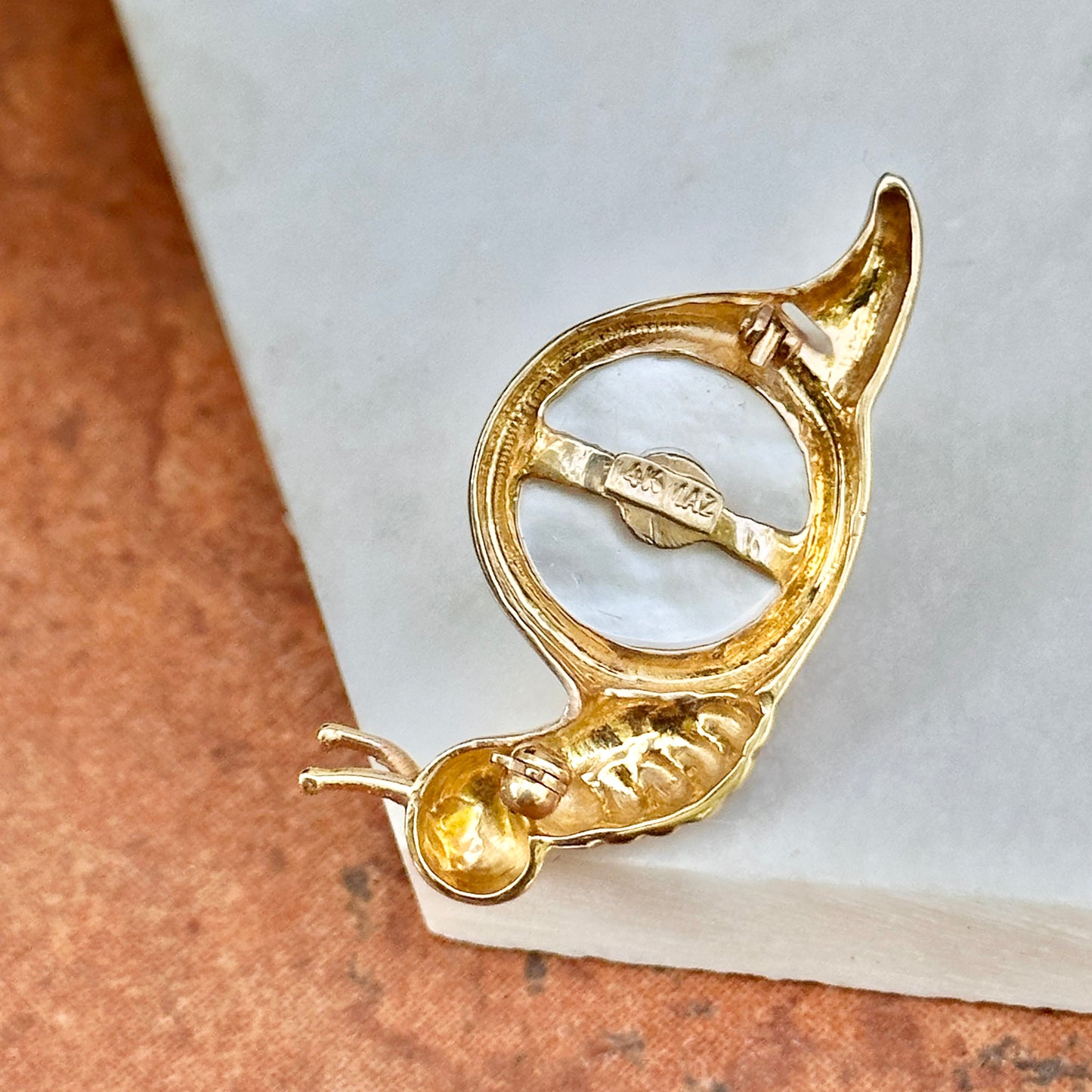 Estate MAZ 14KT Yellow Gold Mabe Pearl Snail Pin Brooch