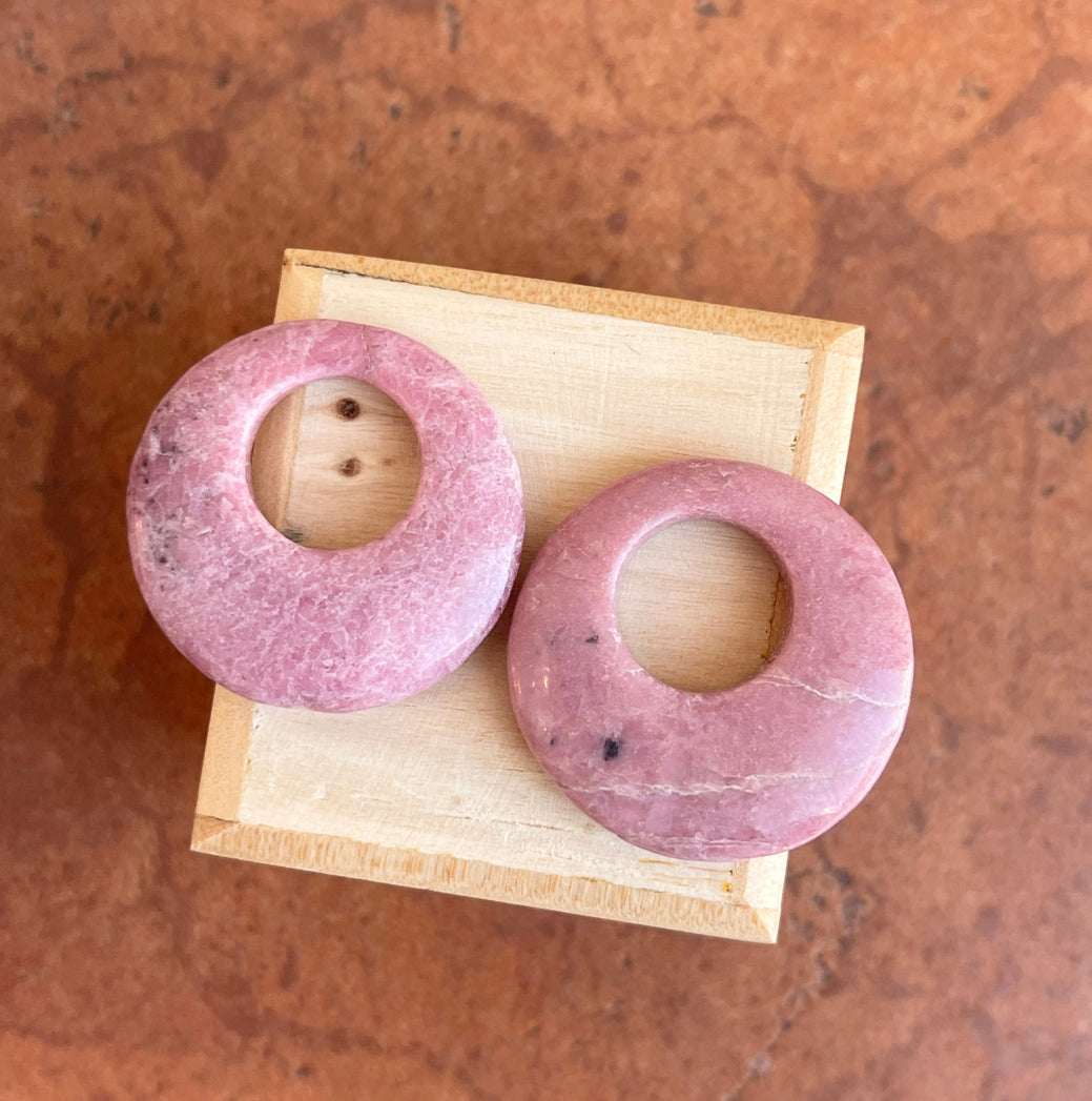 Genuine Mauve/Pink + Gray Rhodonite Gemstone Open Disc Earring Charms