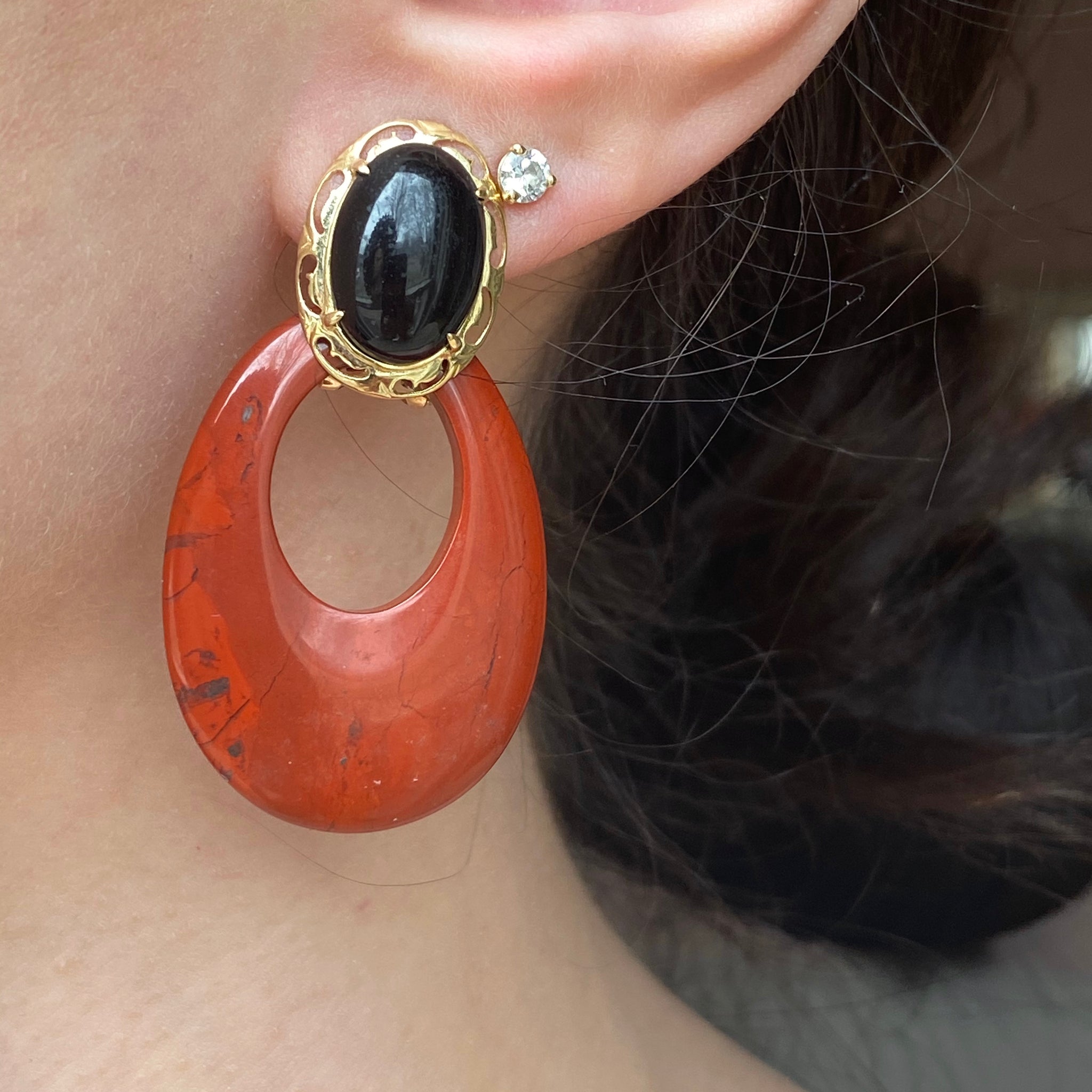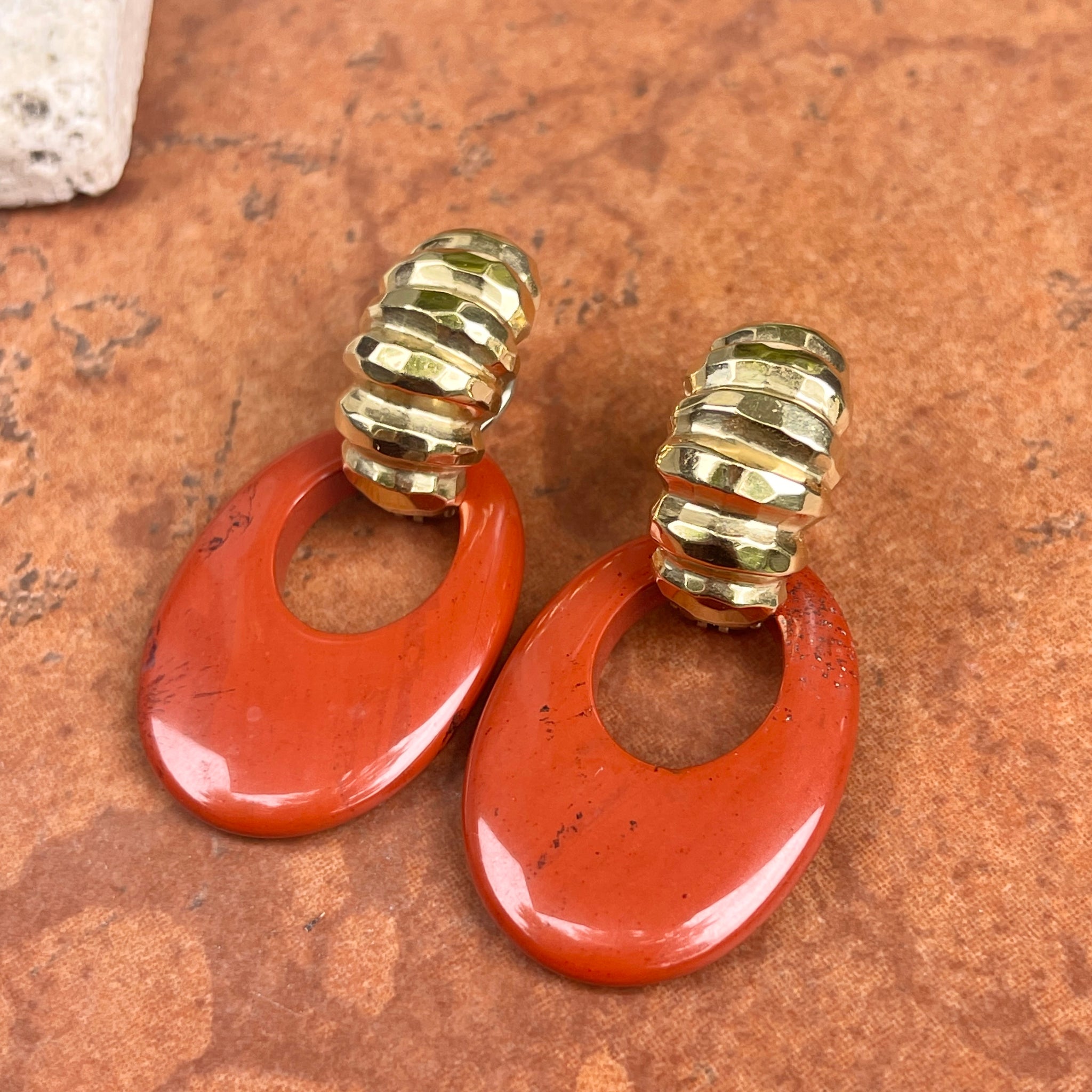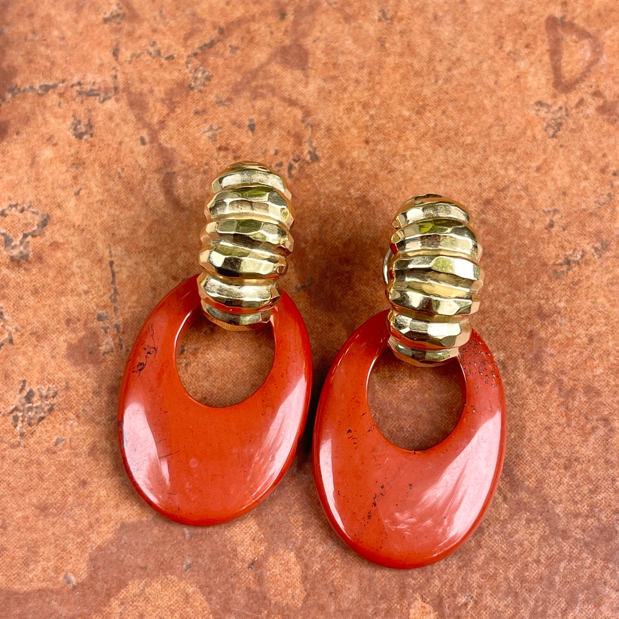 Estate Red Jasper Oval Disc Gemstone Earrings Charms