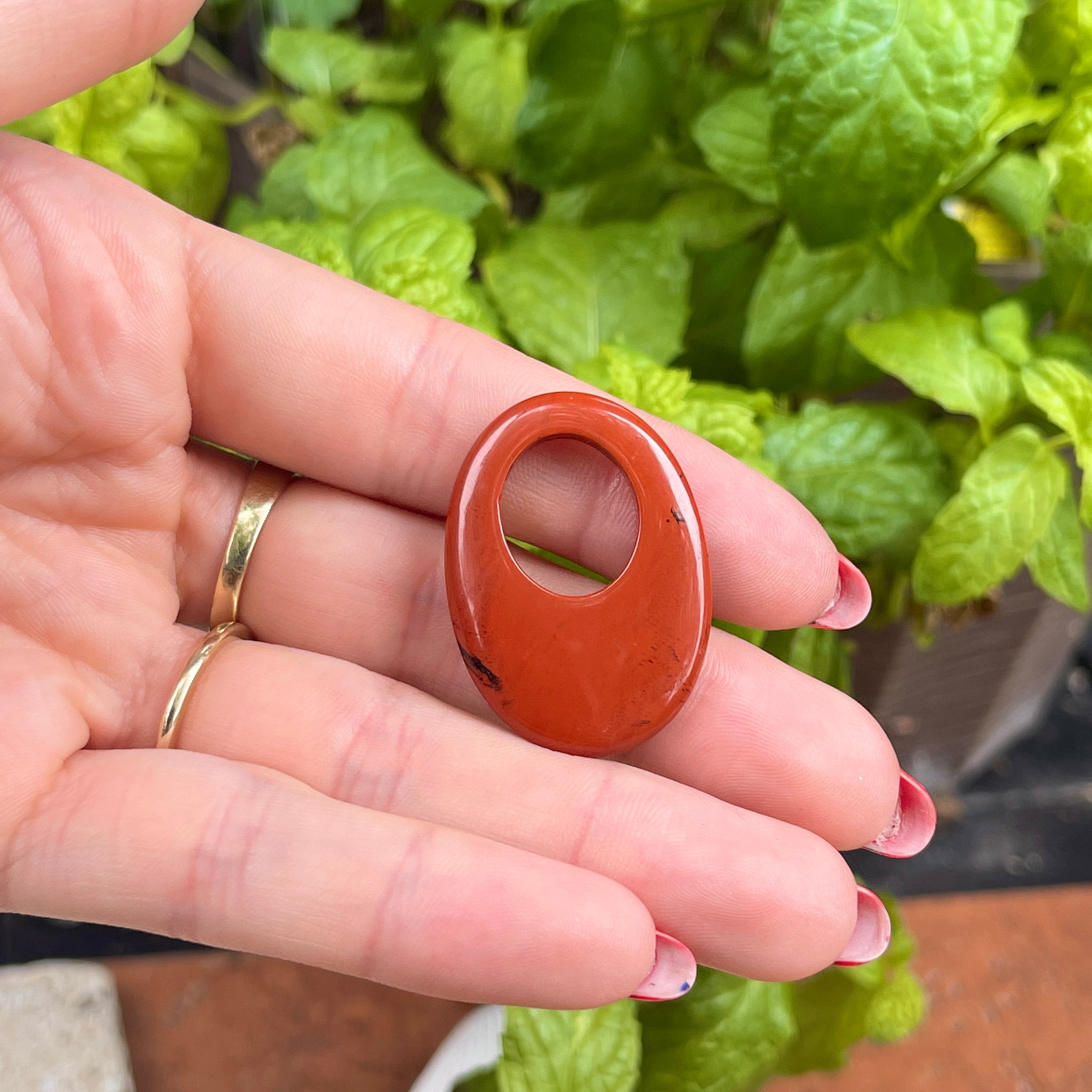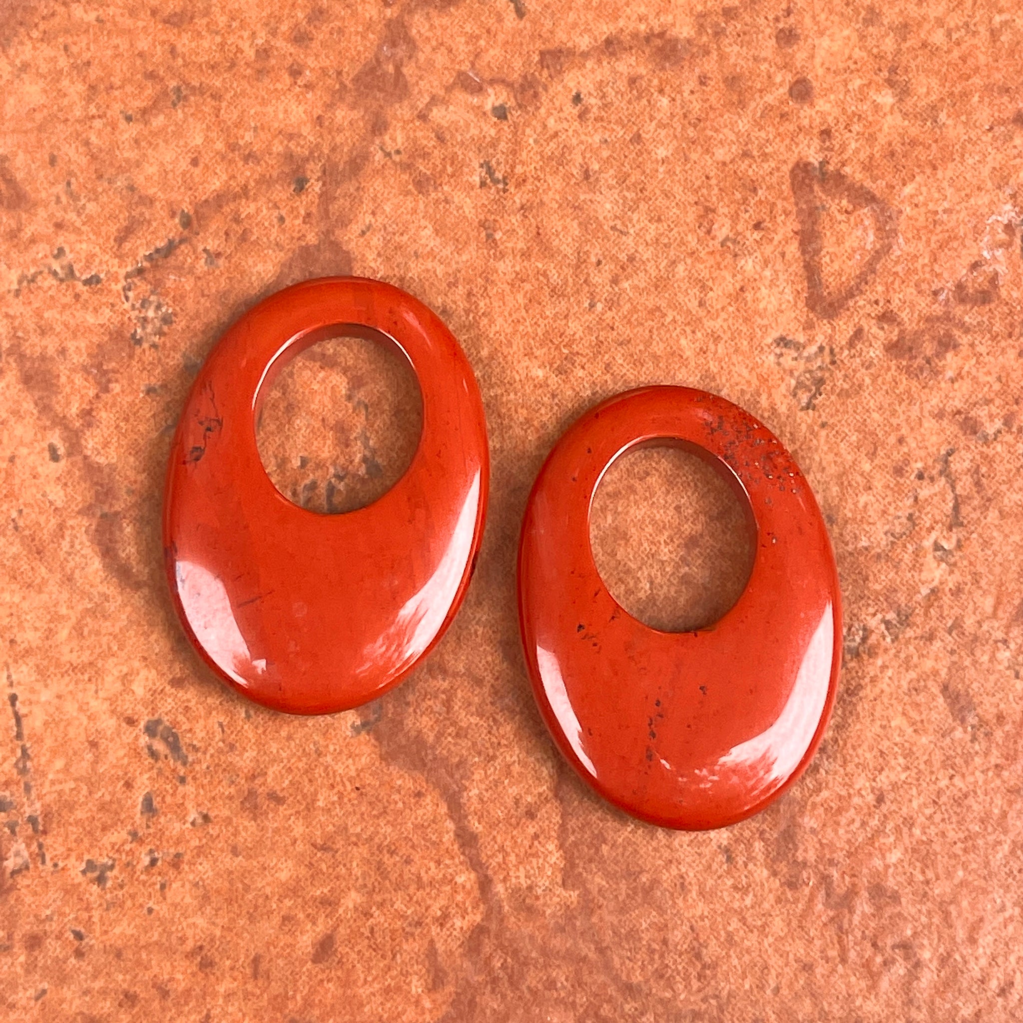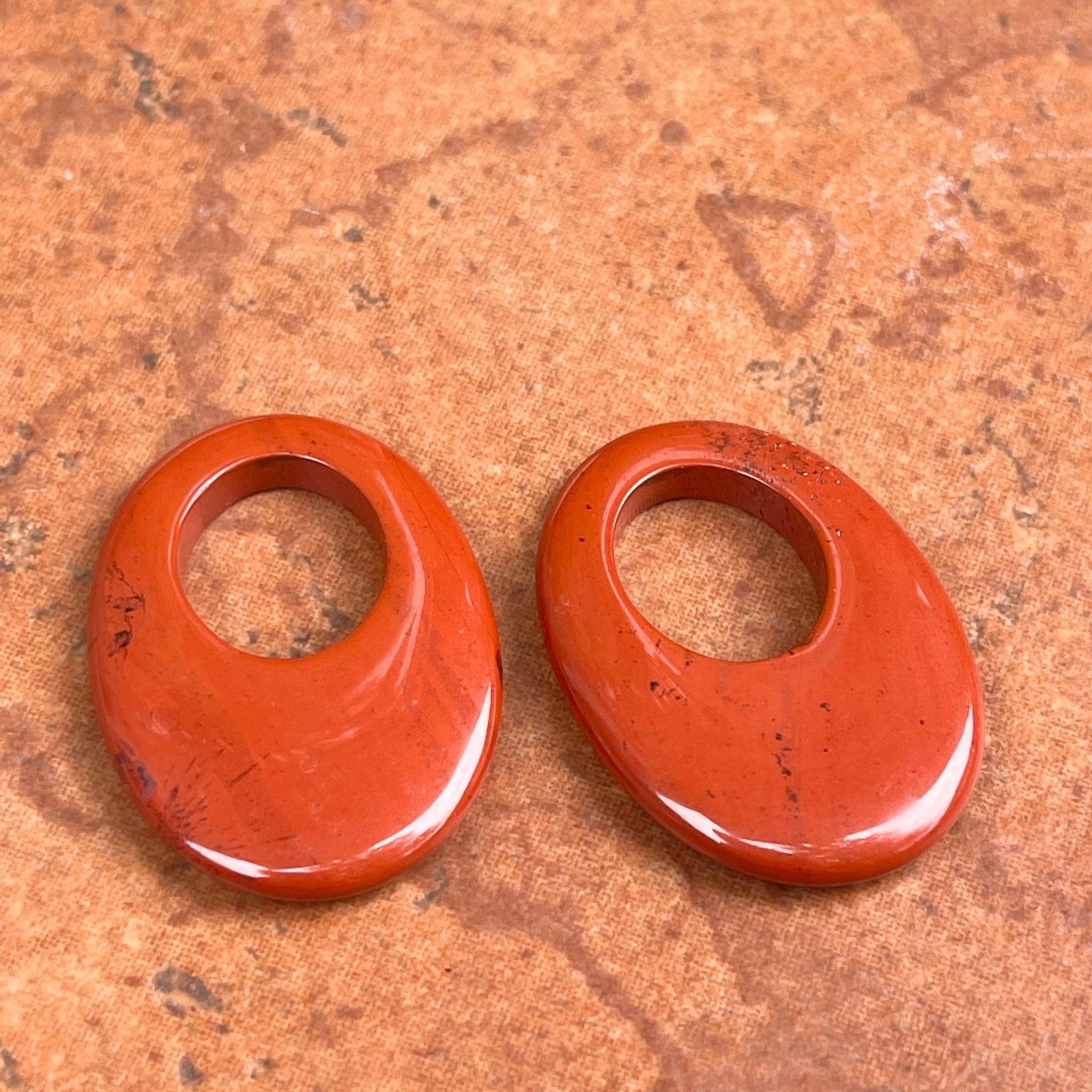 Estate/ vintage genuine rust/red colored jasper polished oval discs to create earring charms or use as a pendant. A great circle of life look done in stunning rusty jasper with black flakes. Highly versatile charms you can add onto omega back earrings as shown, or you can loop on a cord necklace. Earrings sold separately.