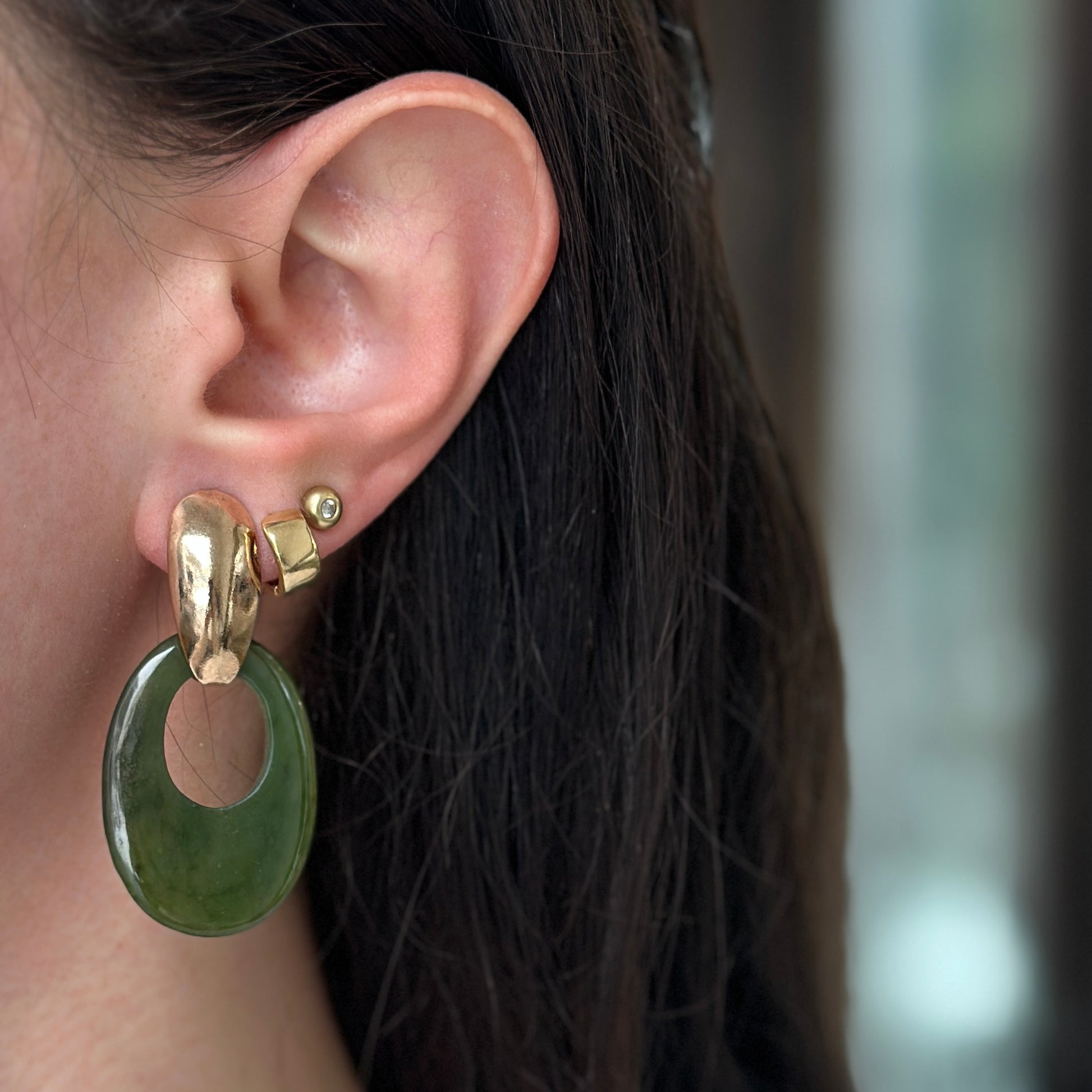 Estate Serpentine Green Jade Oval Earring Charms