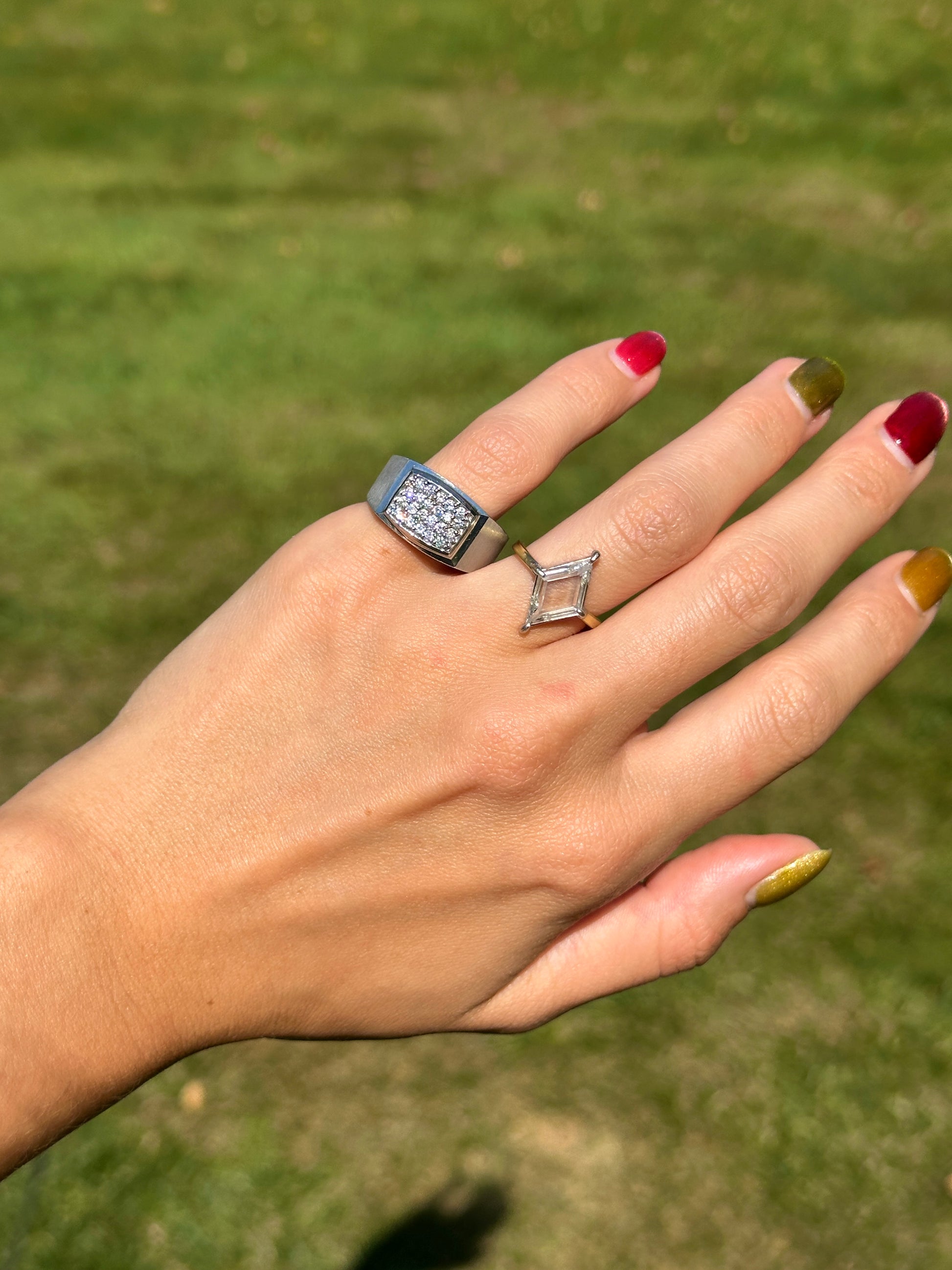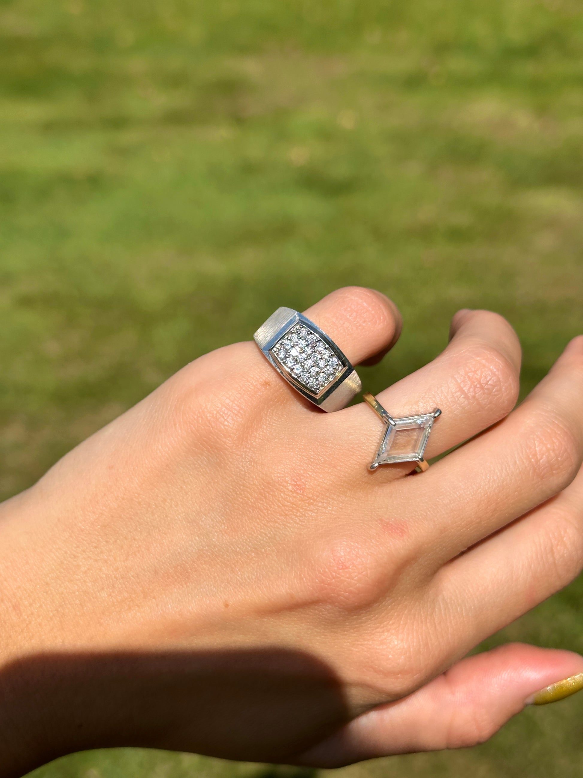 Estate Sterling Silver Diamond Cluster Polished and Satin Band Ring Mens Size 8.75