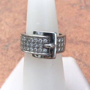 Estate 14KT White Gold + Pave Diamond Belt Buckle Cigar Band Ring