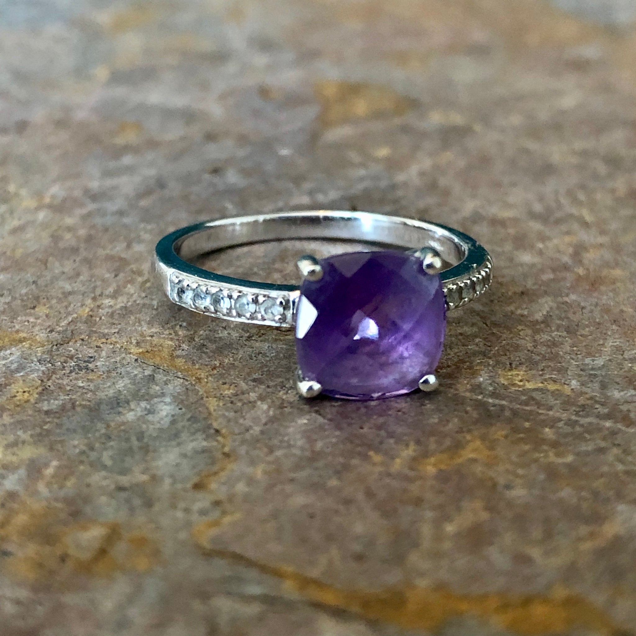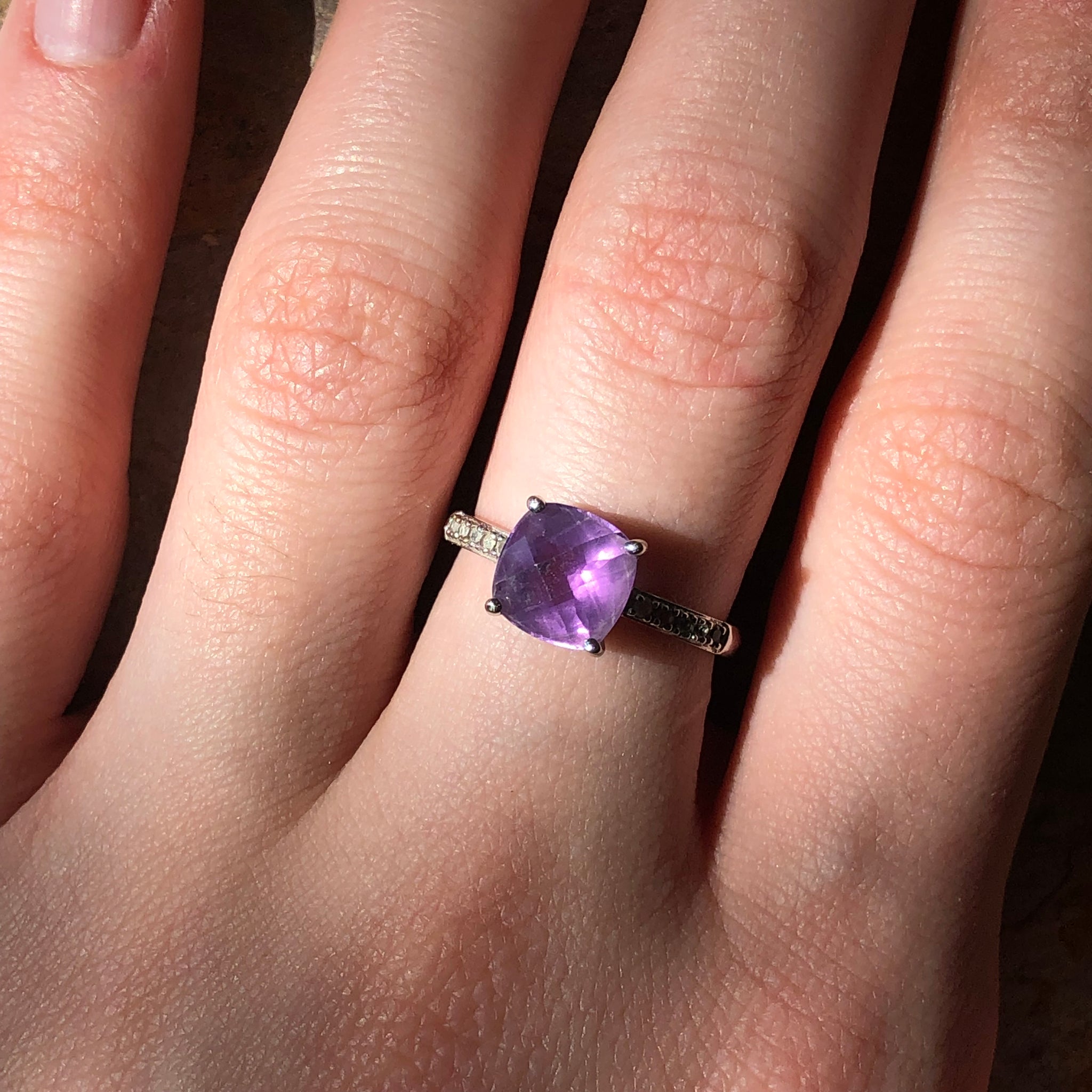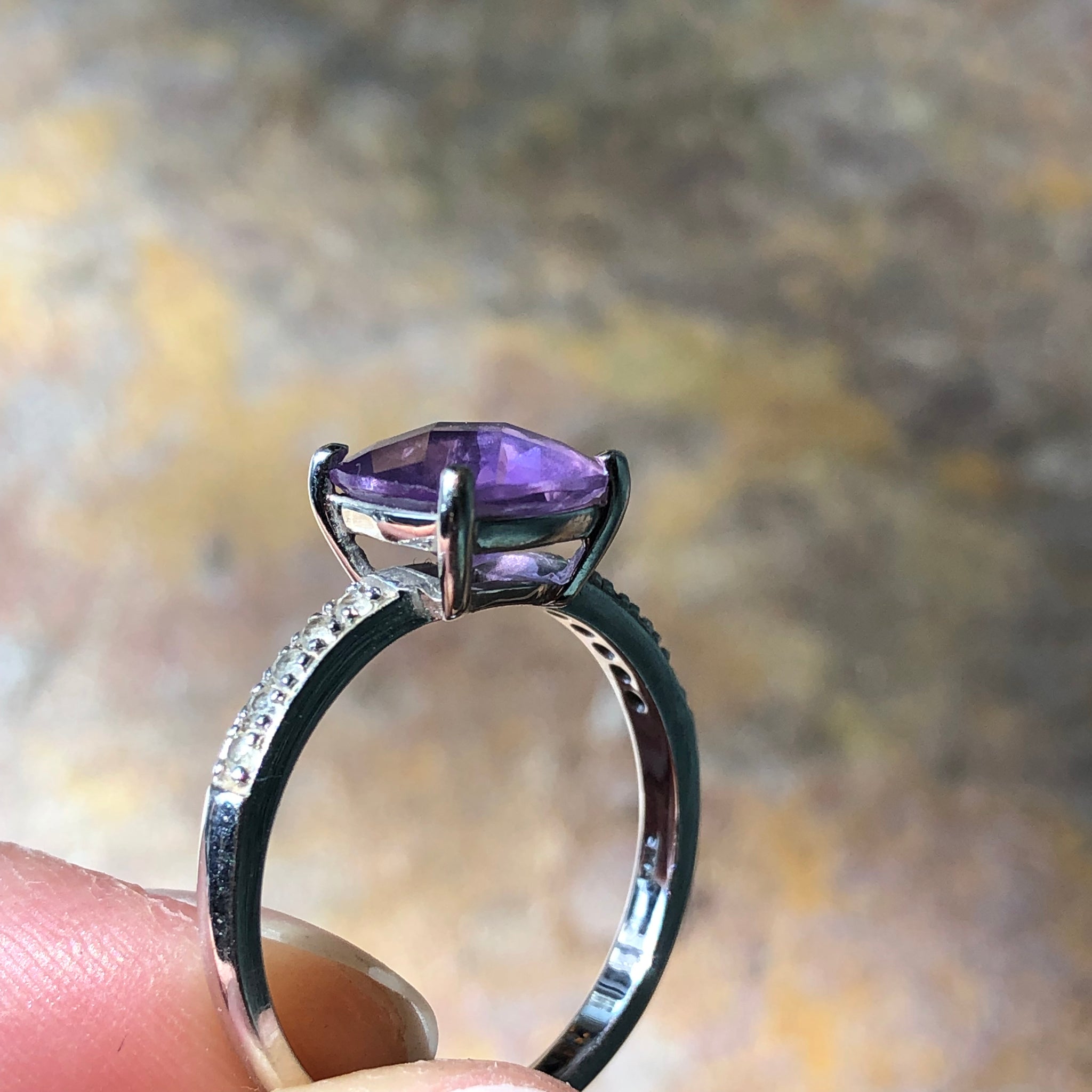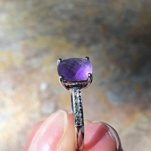 14KT White Gold Pave Diamond + Genuine Purple Amethyst Estate Ring