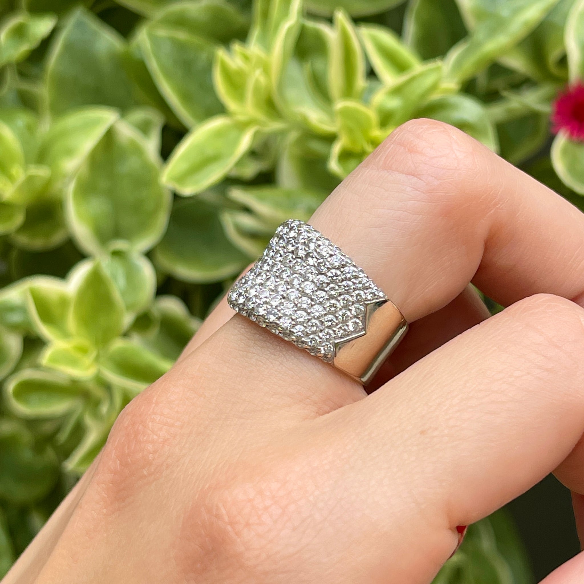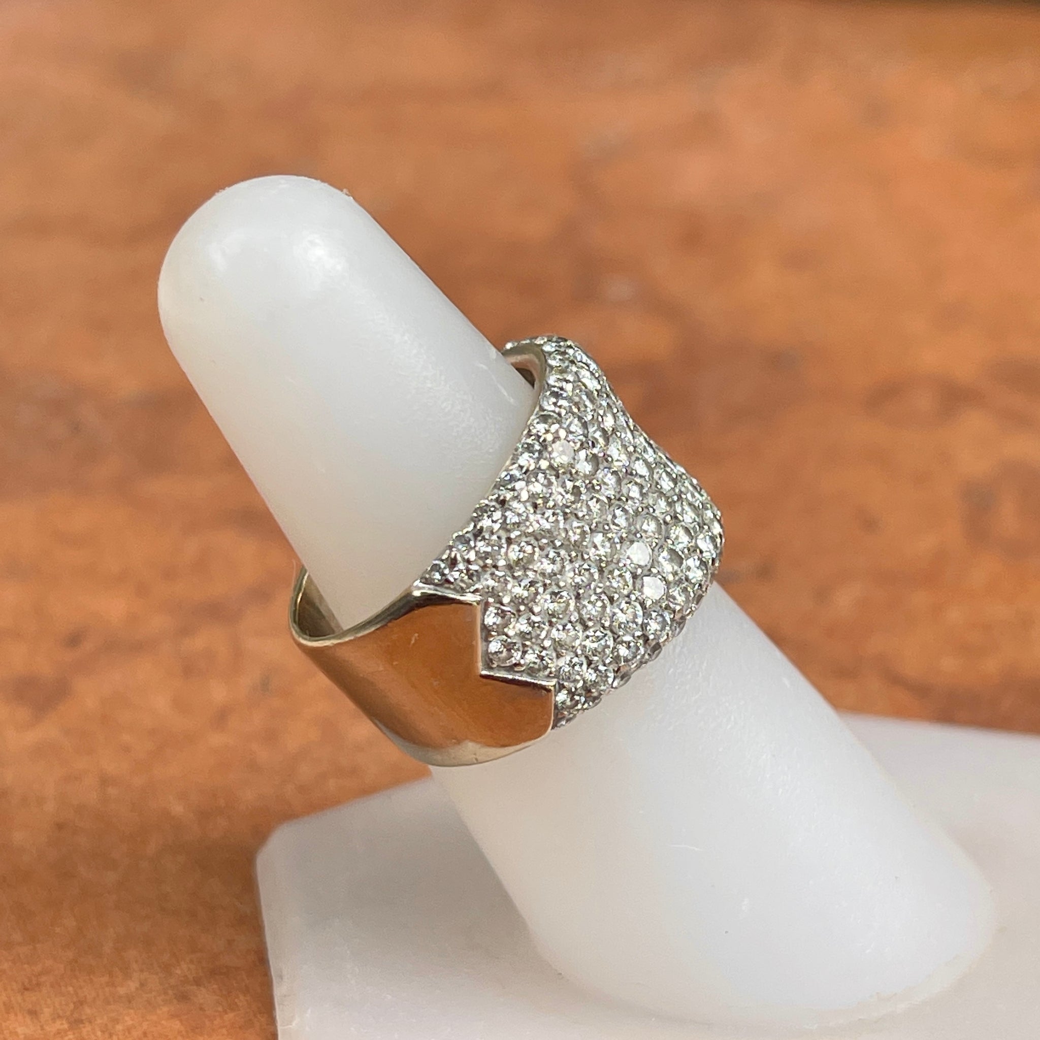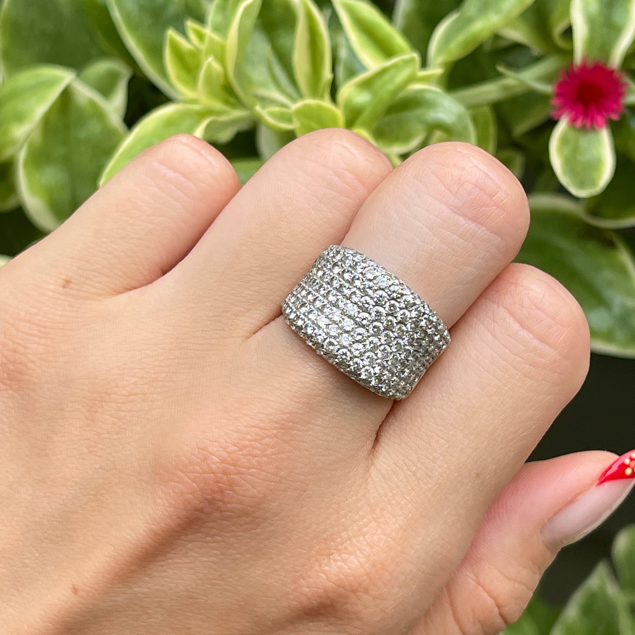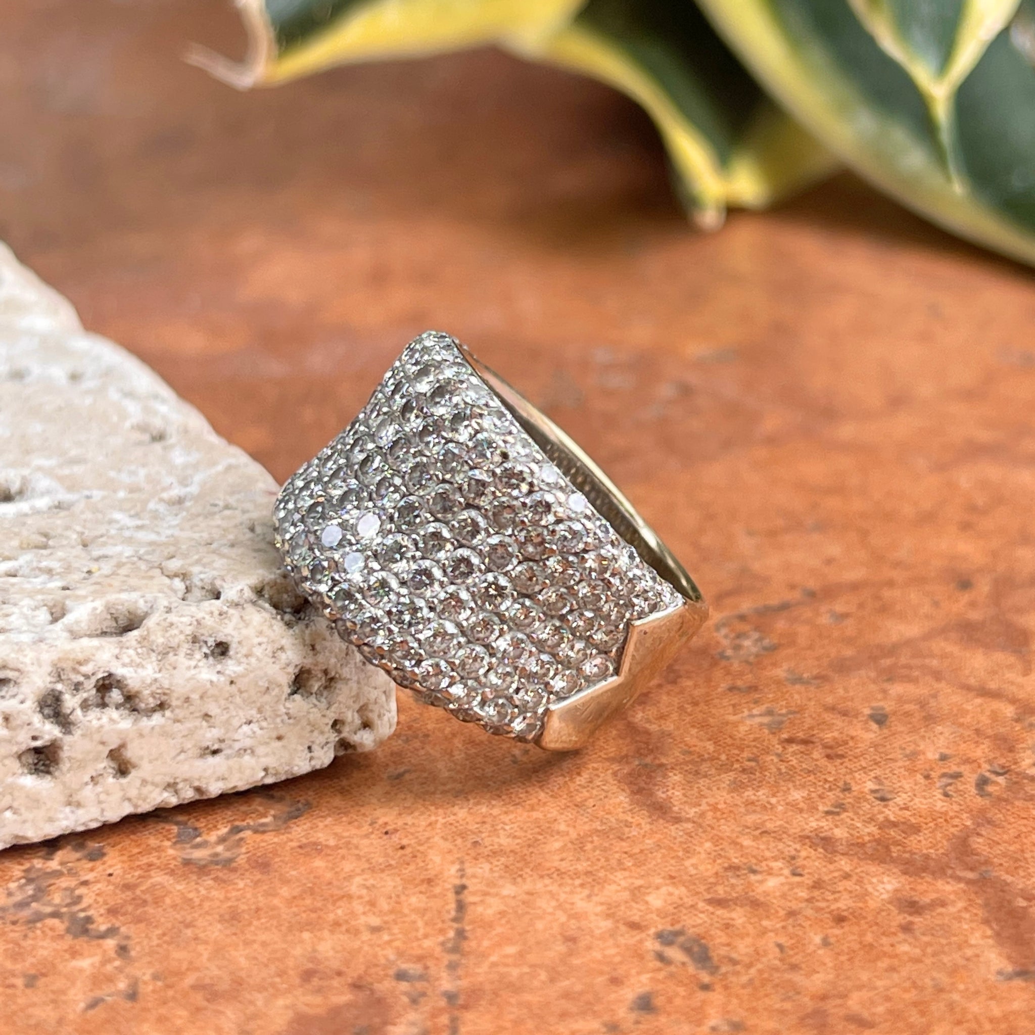 Estate 18KT white gold pave diamond wide design cigar band ring. Light scratches on the band. This beauty of a ring is perfect for expressing your love to someone, engagements, or as a celebration of self-love.