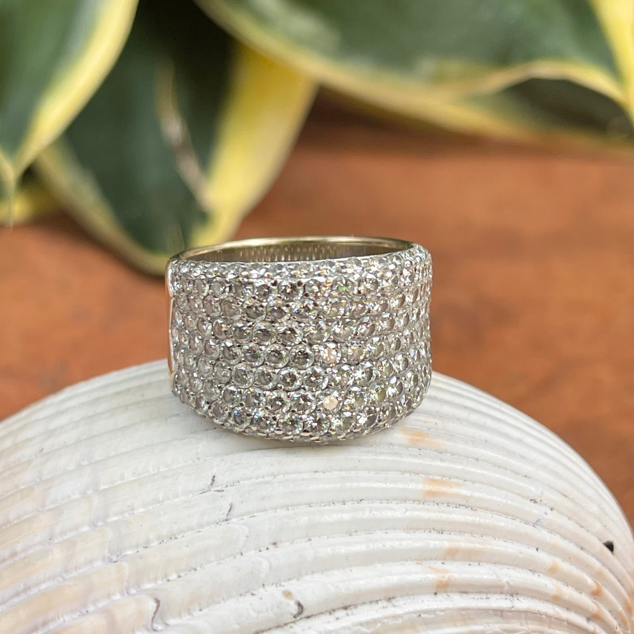 Estate 18KT White Gold 9-Row 3.00 CT Pave Diamond Anniversary Cigar Band Ring