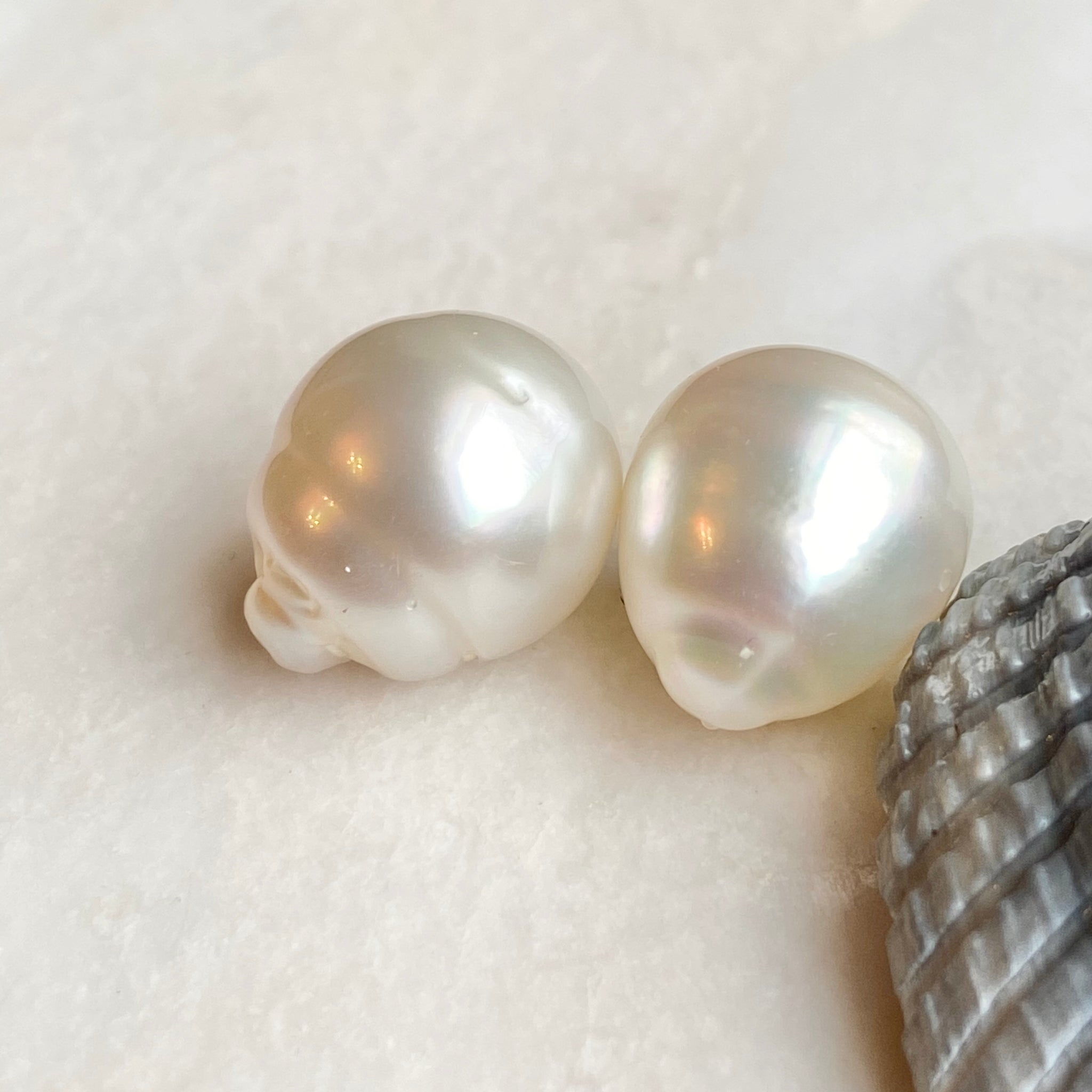 (1) Pair of 2 genuine Paspaley South Sea loose pearls (matched pair). Please note: Paspaley's "Circle" Shape is not round but much more oblong/oval, see pictures. Pronounced ridges are visible but this pair matches very well! Perfect for earrings, earrings charms, or charms to be added onto a bracelet or necklace. For all custom jewelry requests- please contact us for details: info@legacysaintjewelry.com