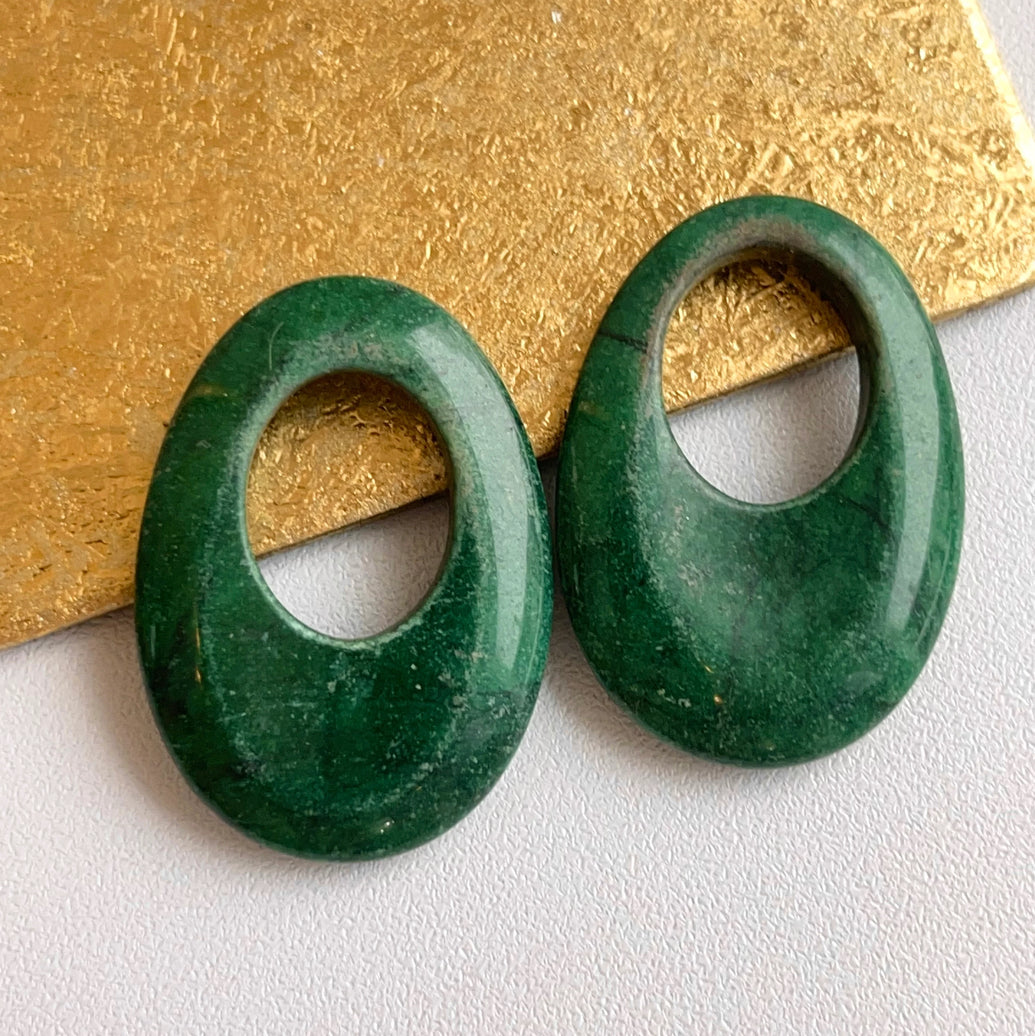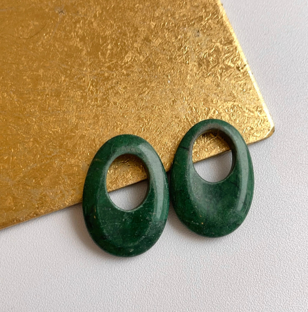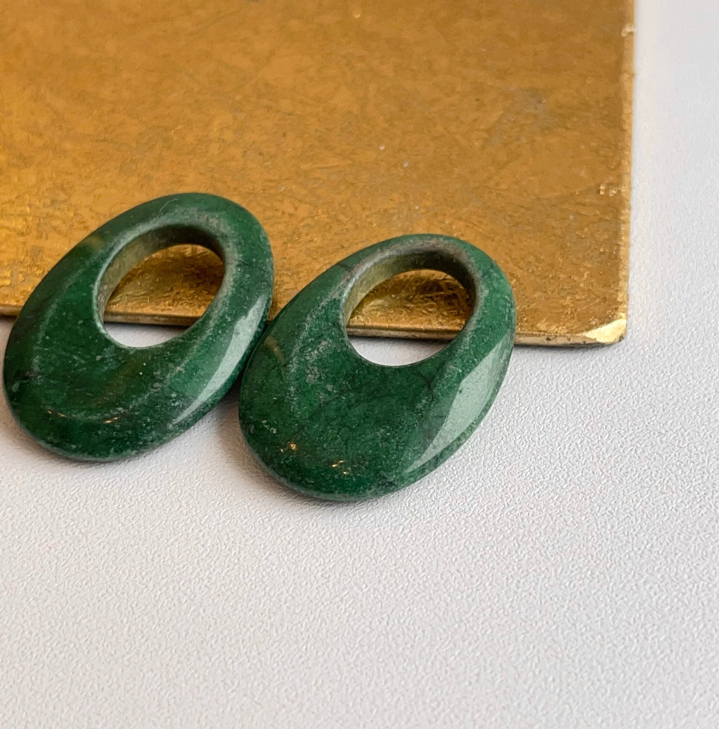 Genuine Malachite-Color Howlite or Some Other Stone Oval Earring Charms