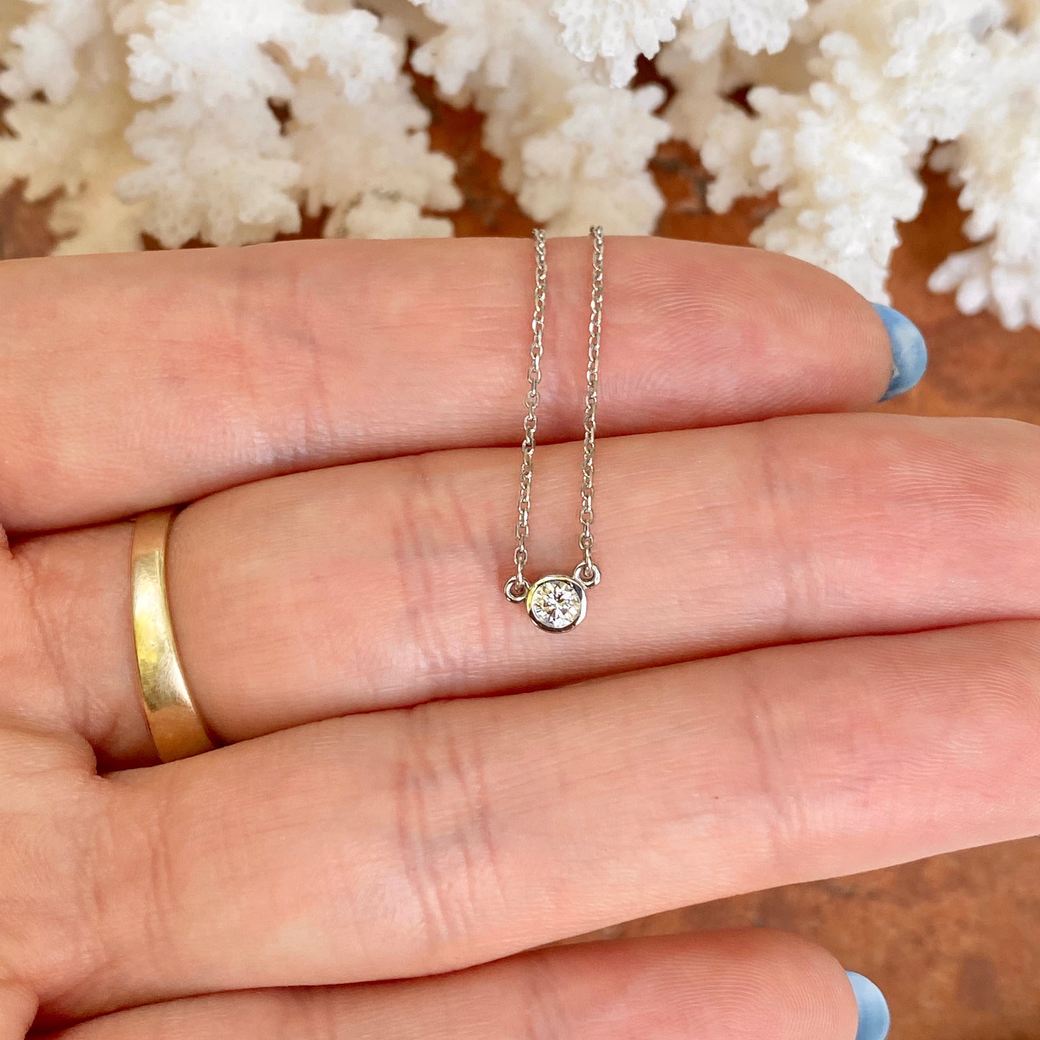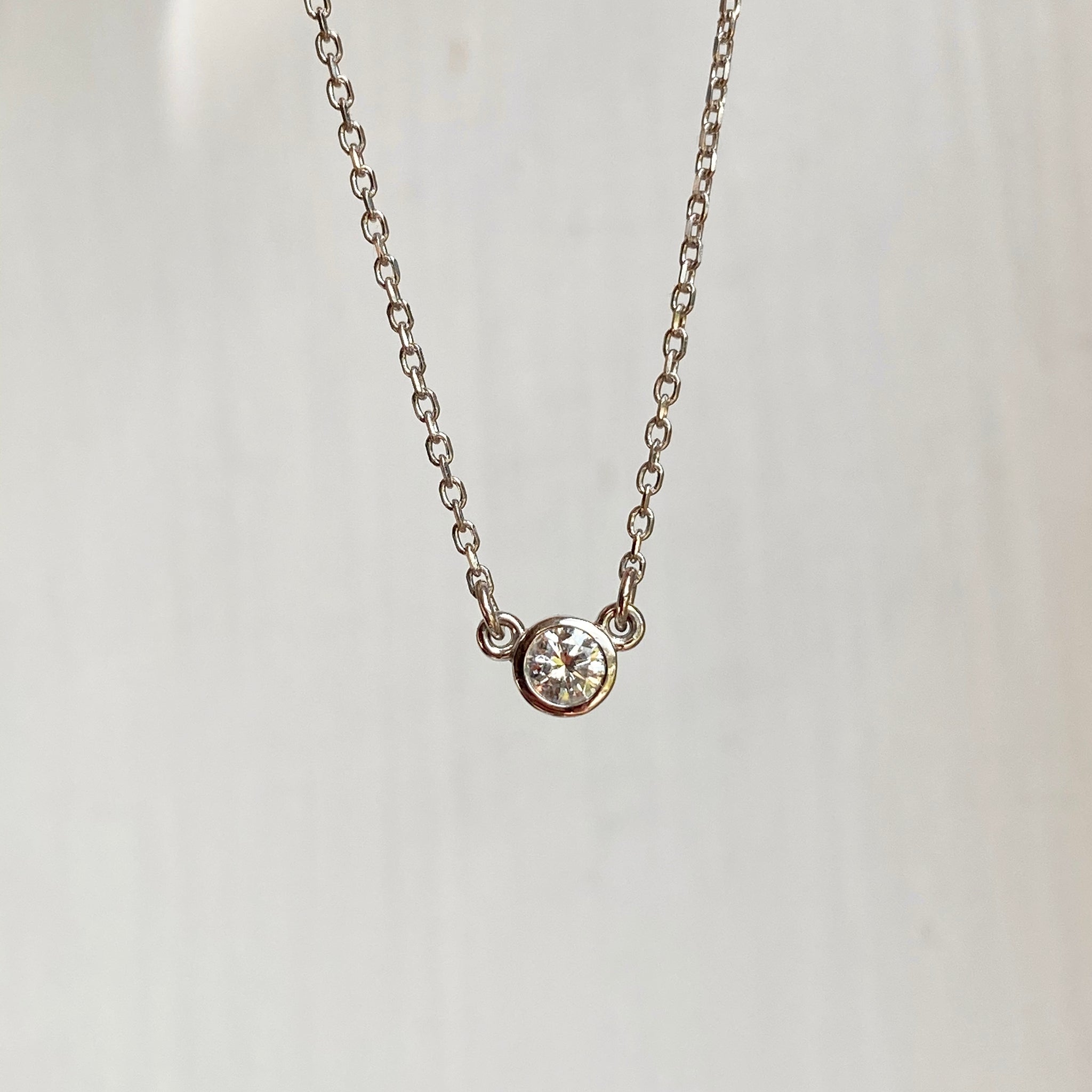 Platinum Bezel Set 1/10 CT Diamond Pendant Chain Necklace