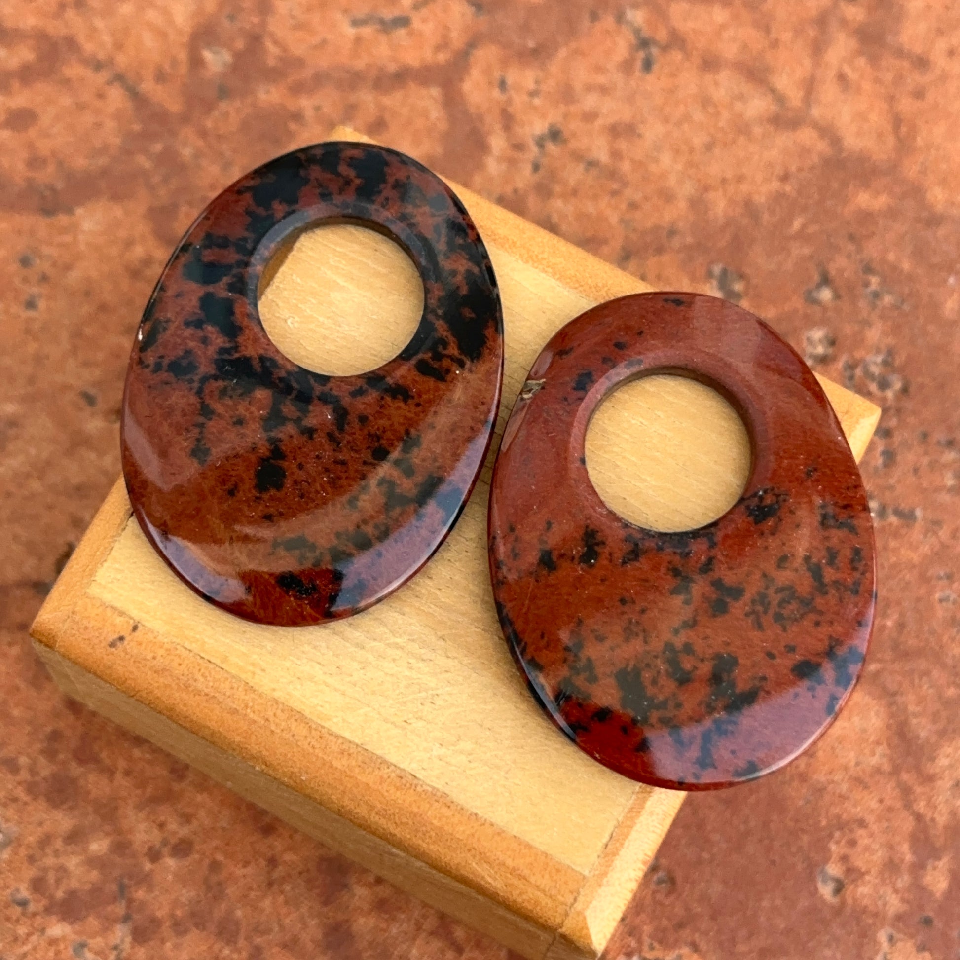 Red Black Marbled Poppy Jasper Oval Earring Charms