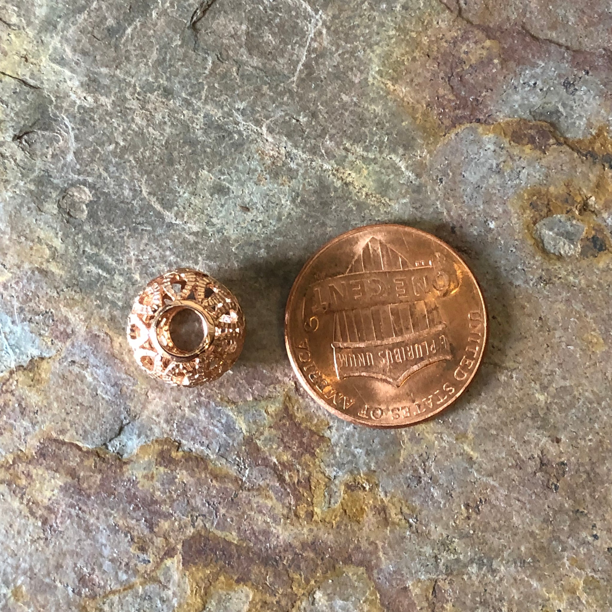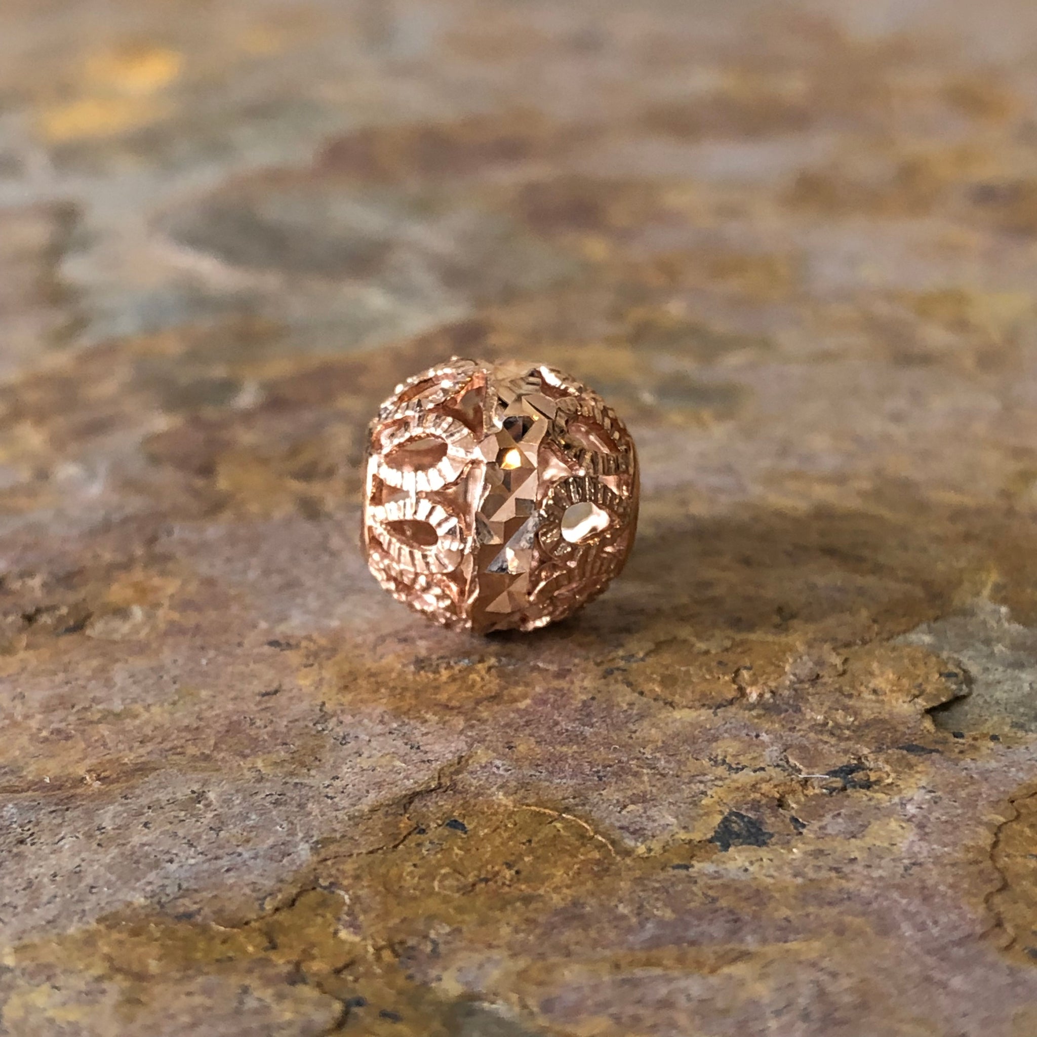 14KT rose gold diamond-cut filigree ball chain slide pendant charm. Necklace chains sold separately.