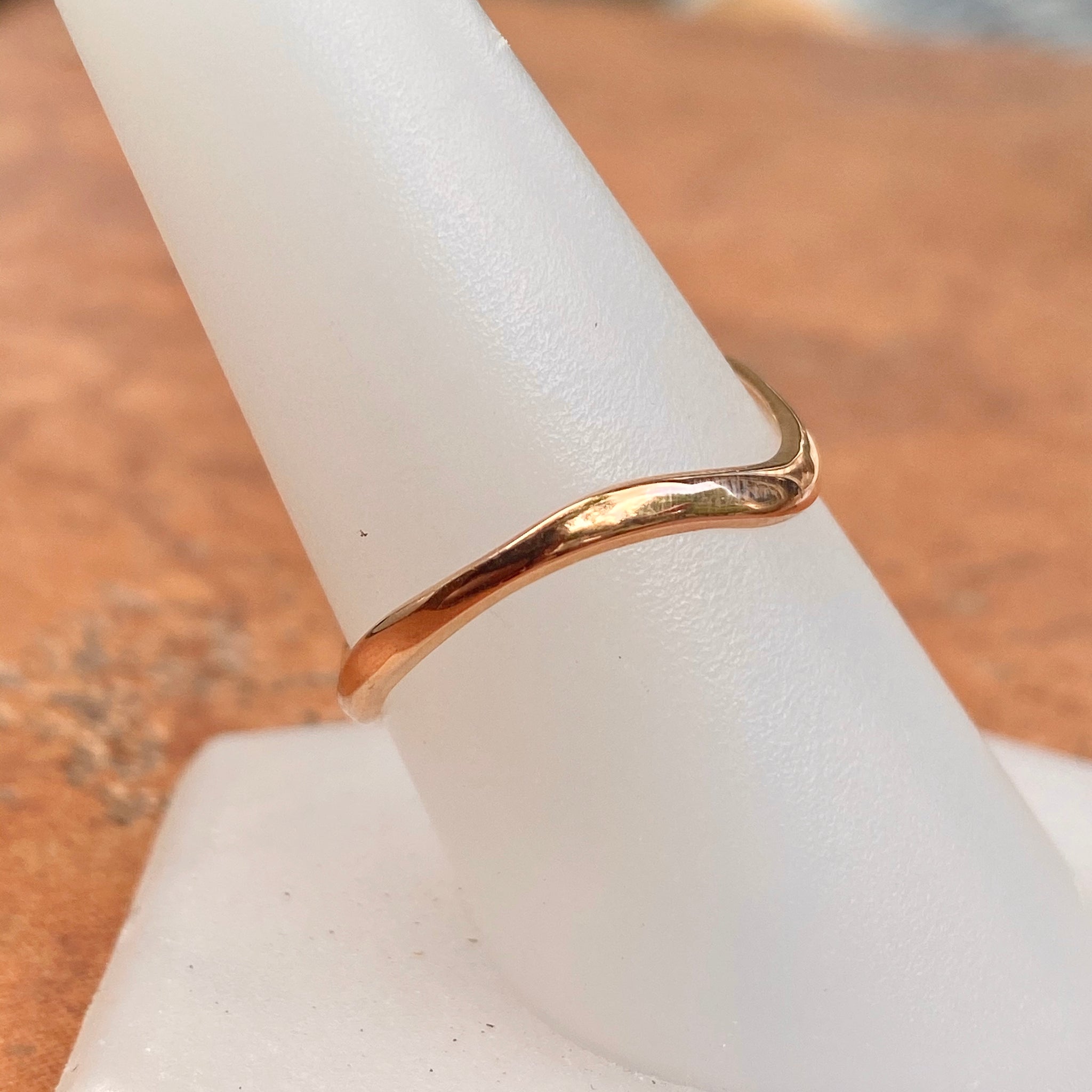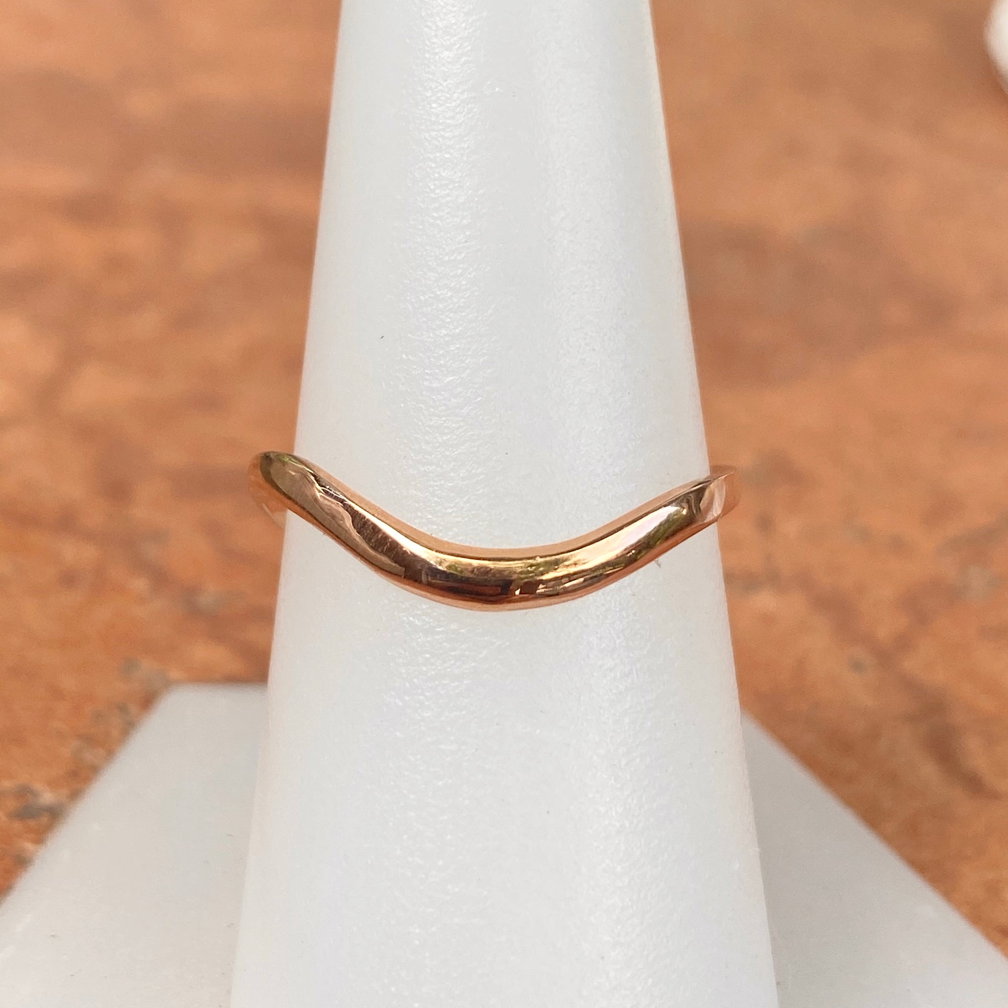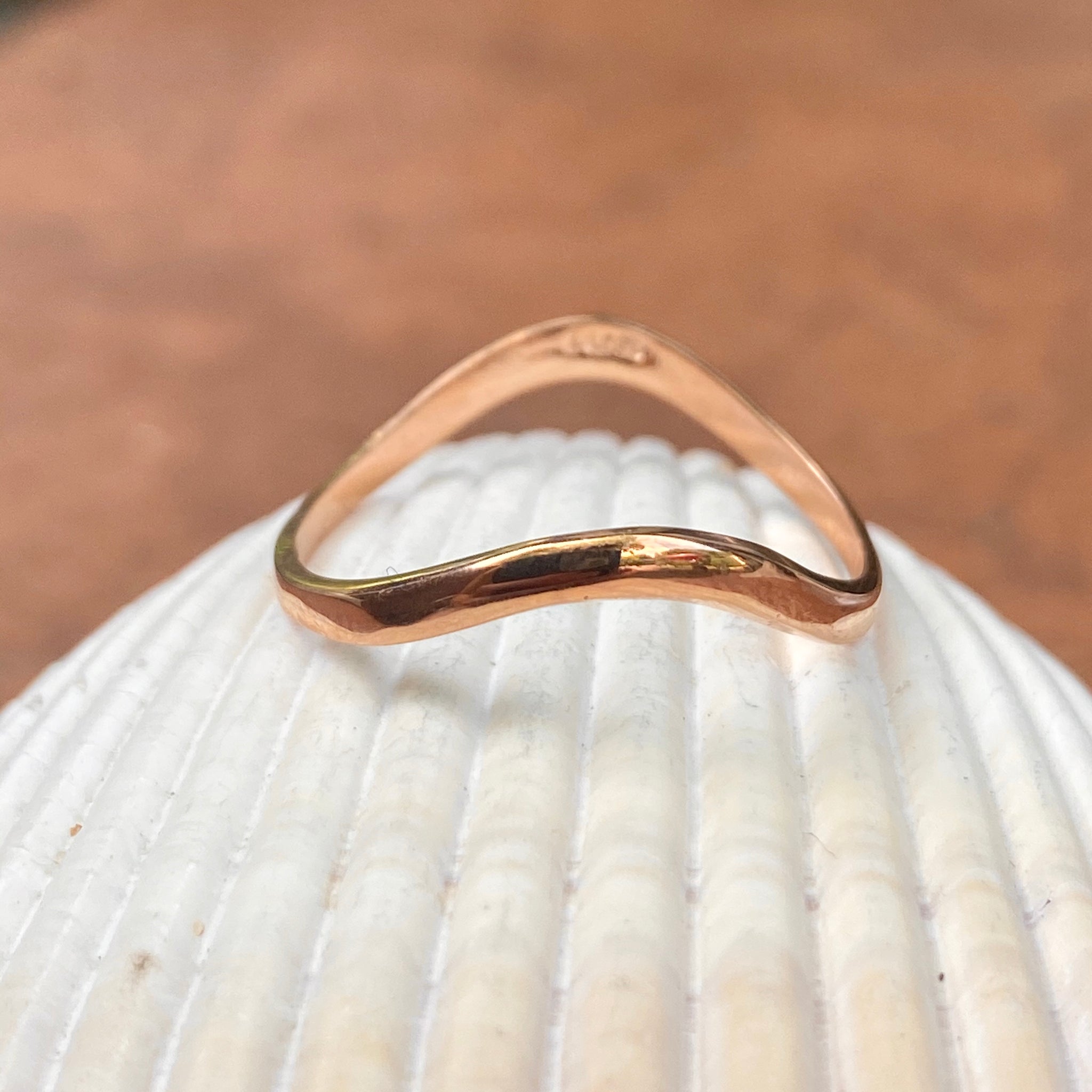 14KT rose gold shiny thin wave band thumb ring. Great ring for the thumb and to be stacked with other rings. Also available in 14K yellow gold.