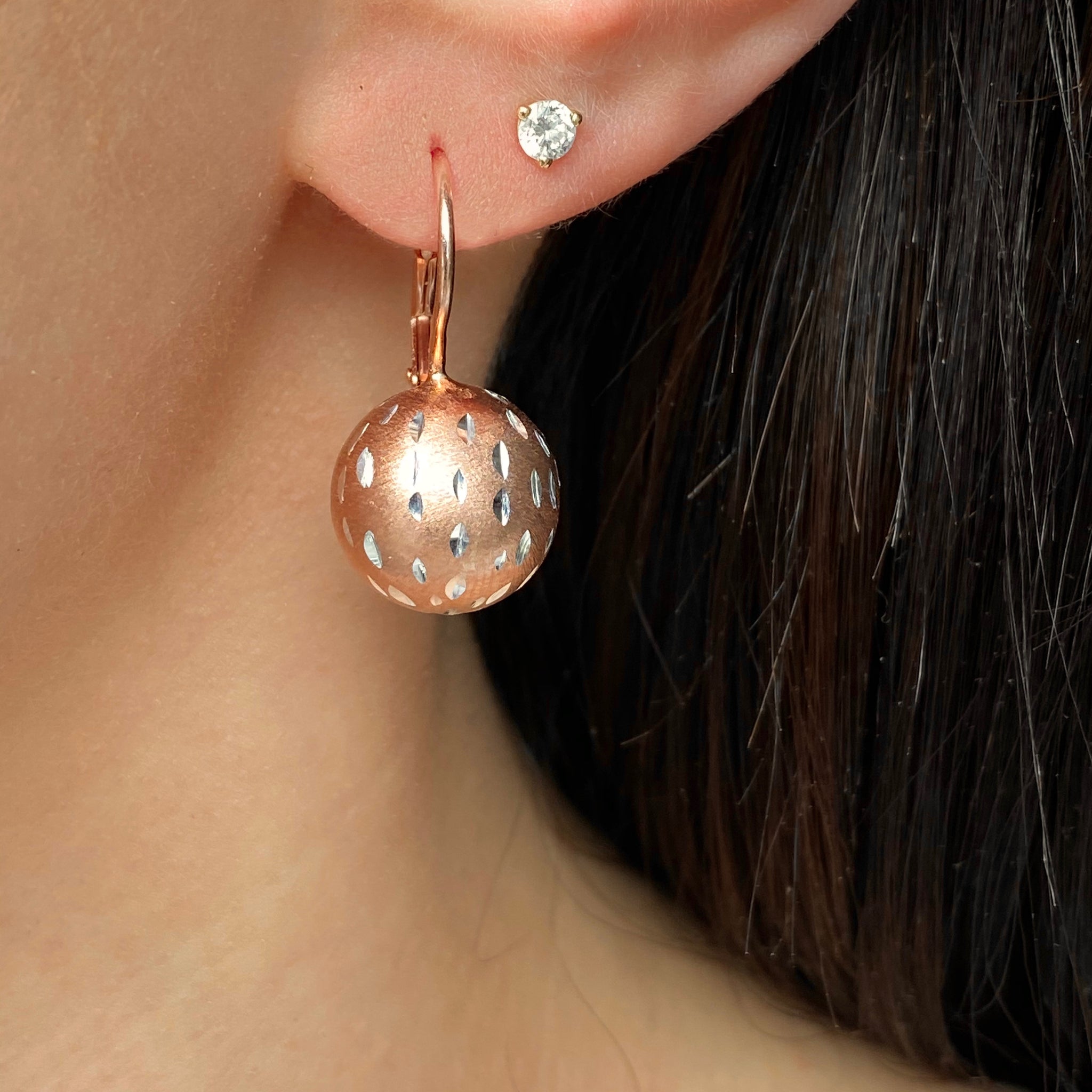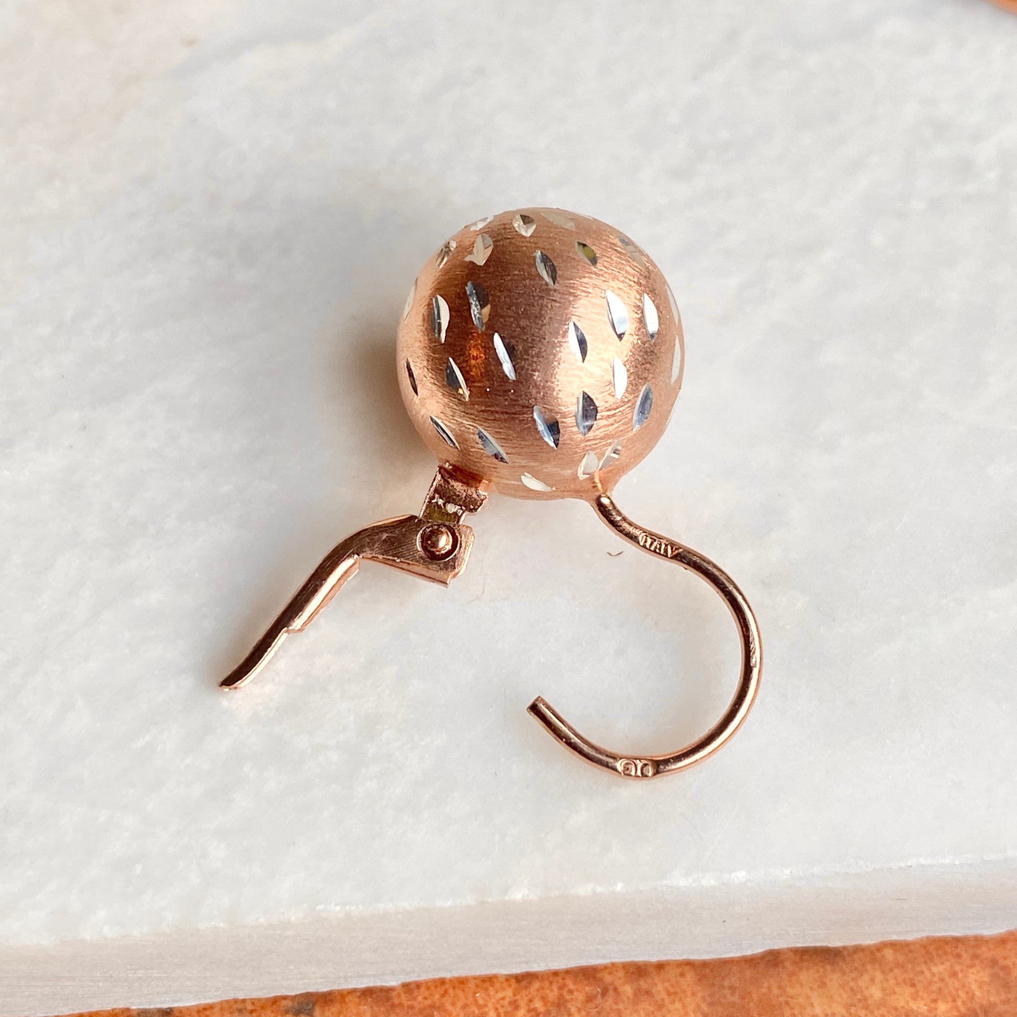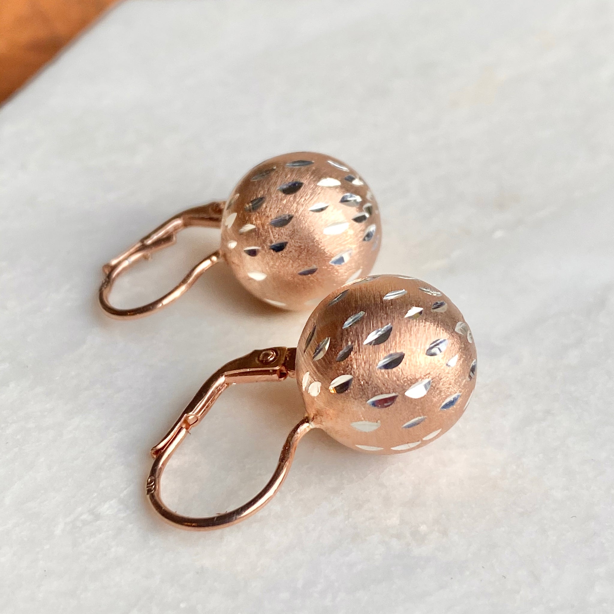 Rose Plated Sterling Silver Diamond-Cut Ball Leverback Earrings