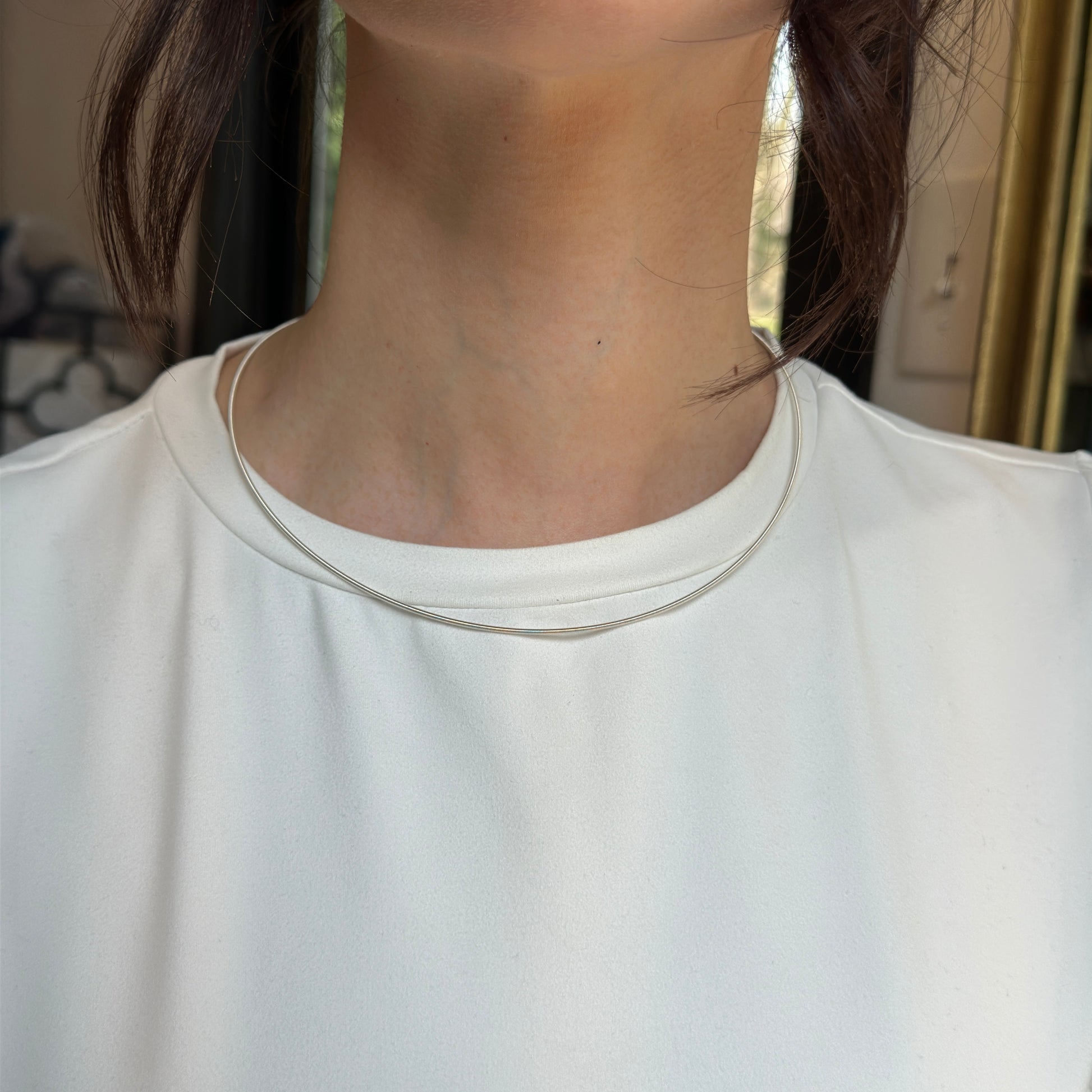 Silver Plated over Copper and Stainless Steel Coiled Stiff Round Neck Wire Necklace