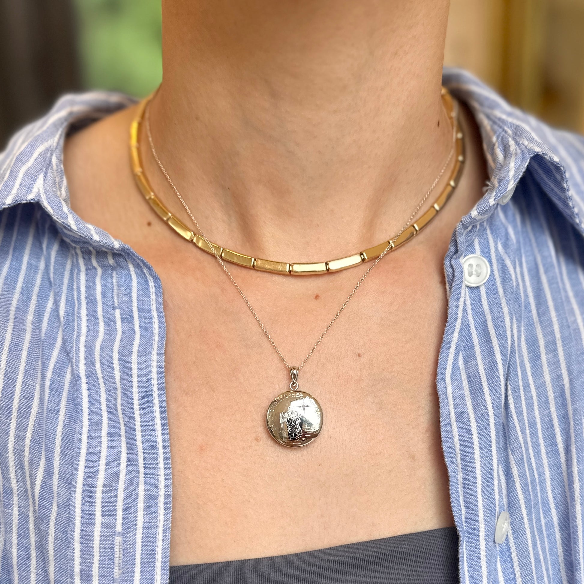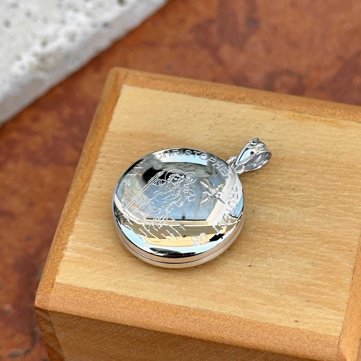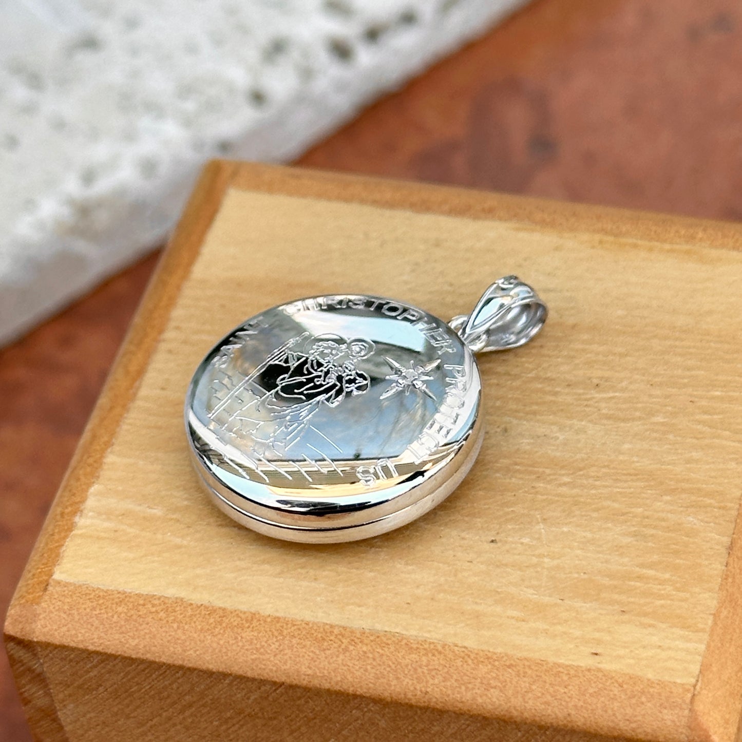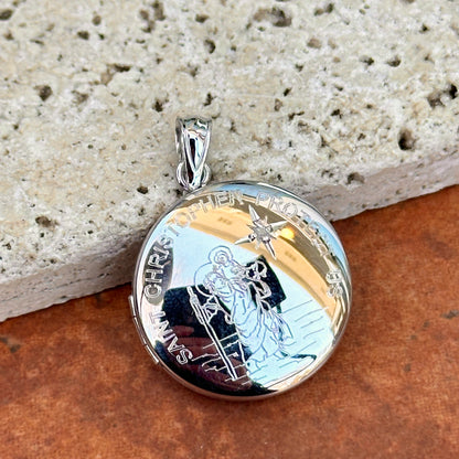 Sterling Silver 20mm Diamond Saint Christopher Round Locket Pendant