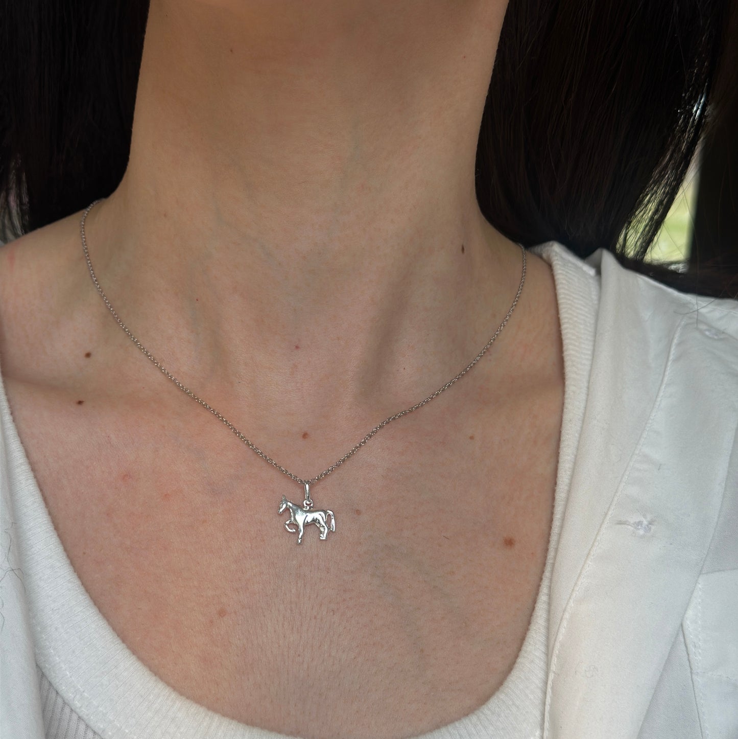 Sterling Silver 3D Standing Horse Polished Textured Pendant Charm Small Size