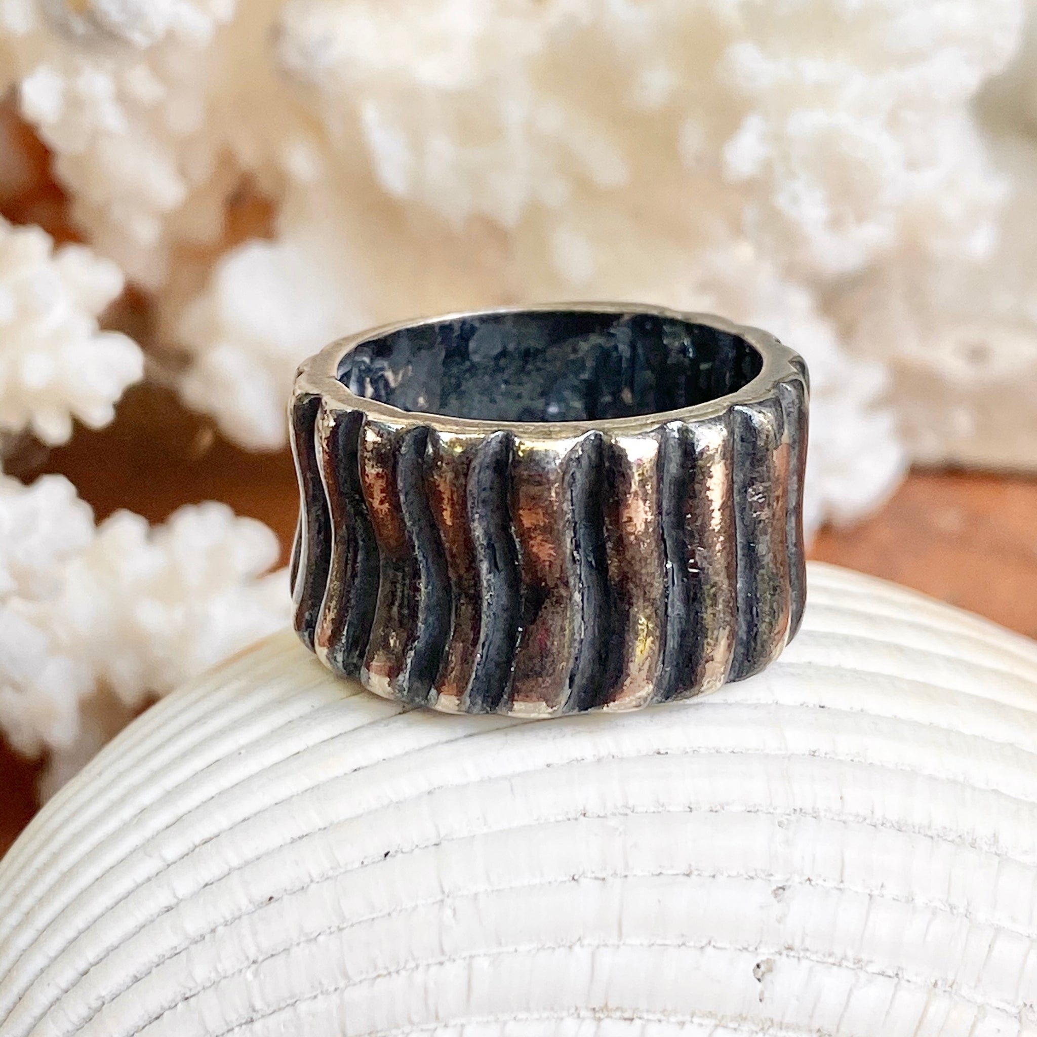 Sterling Silver Antiqued Ridges Cigar Band Ring S