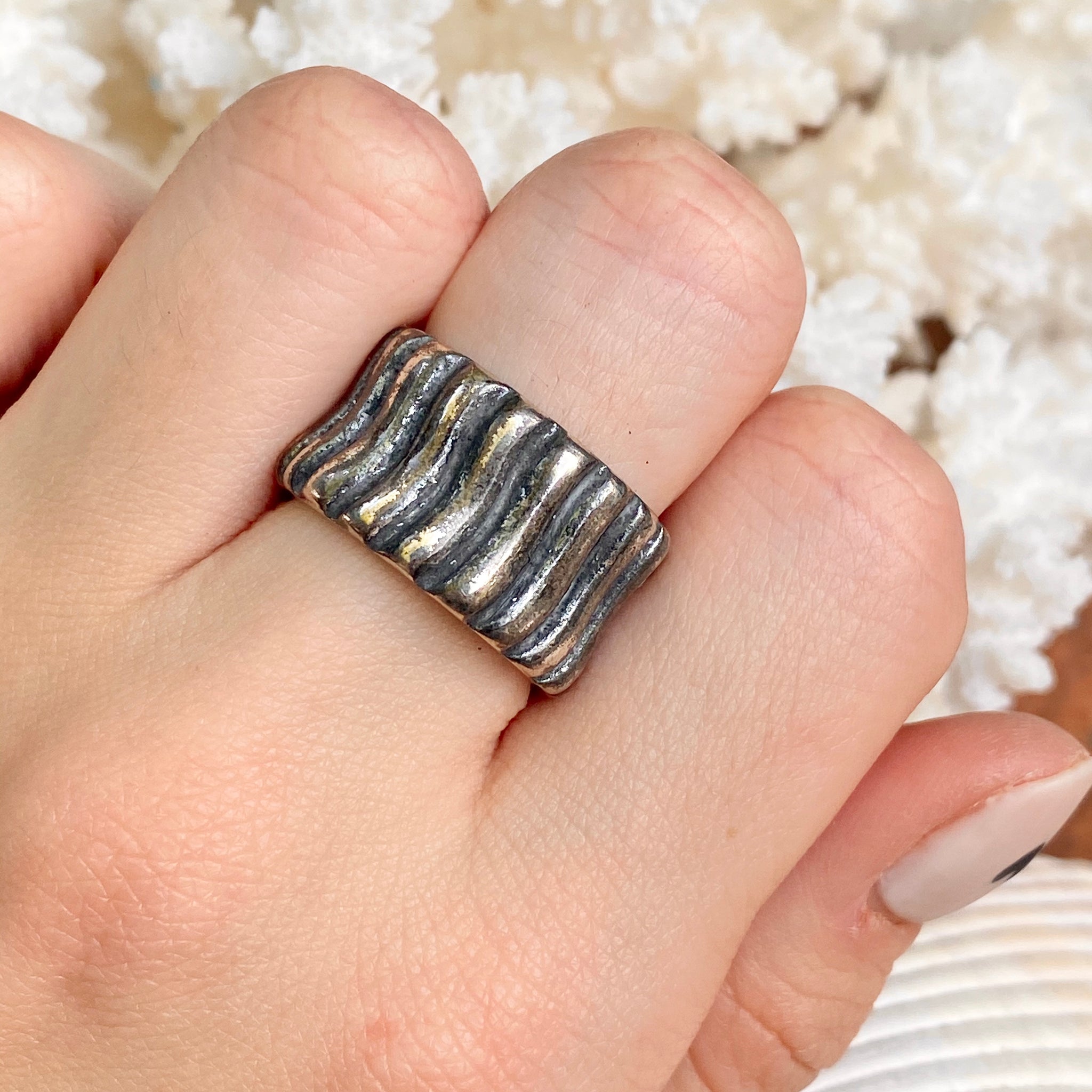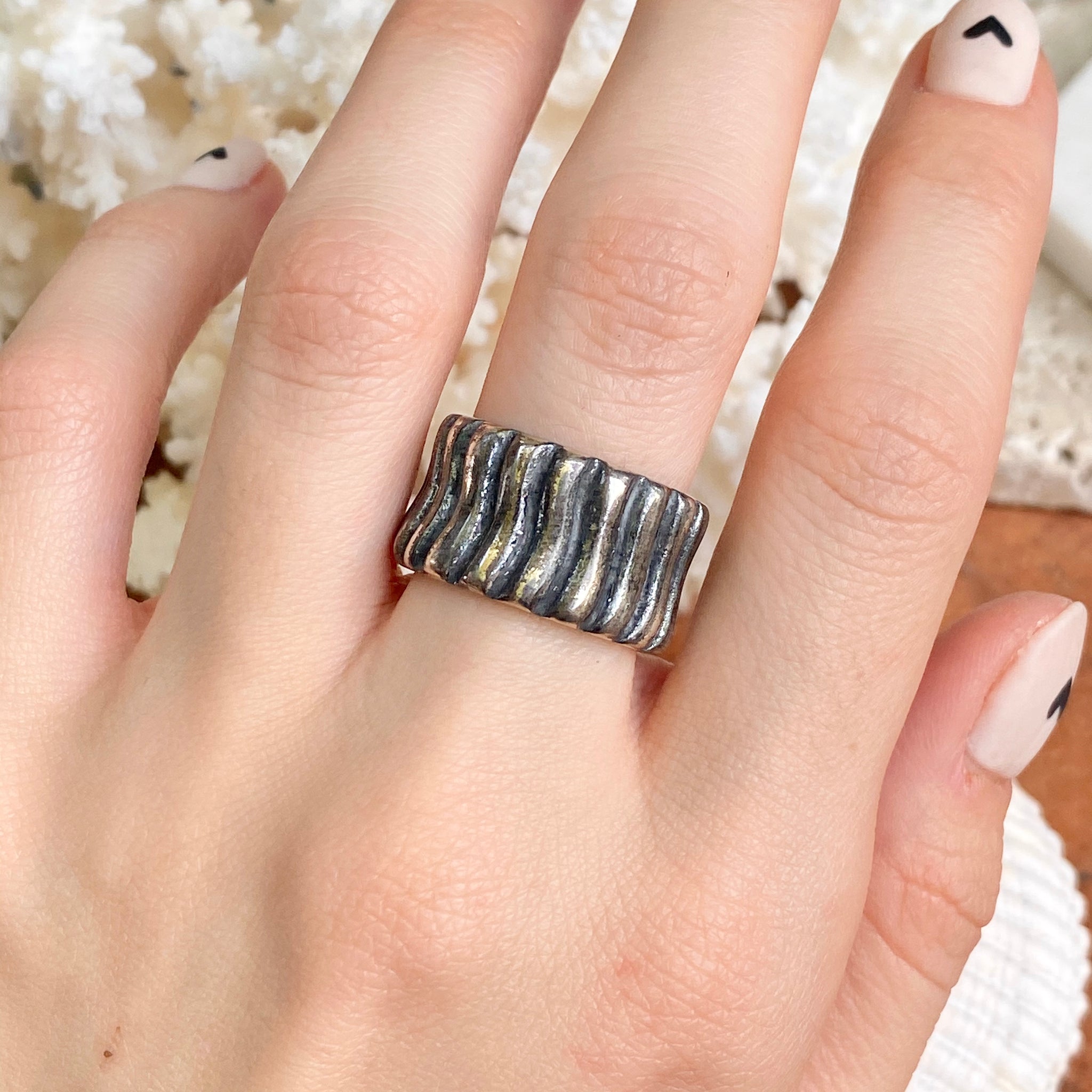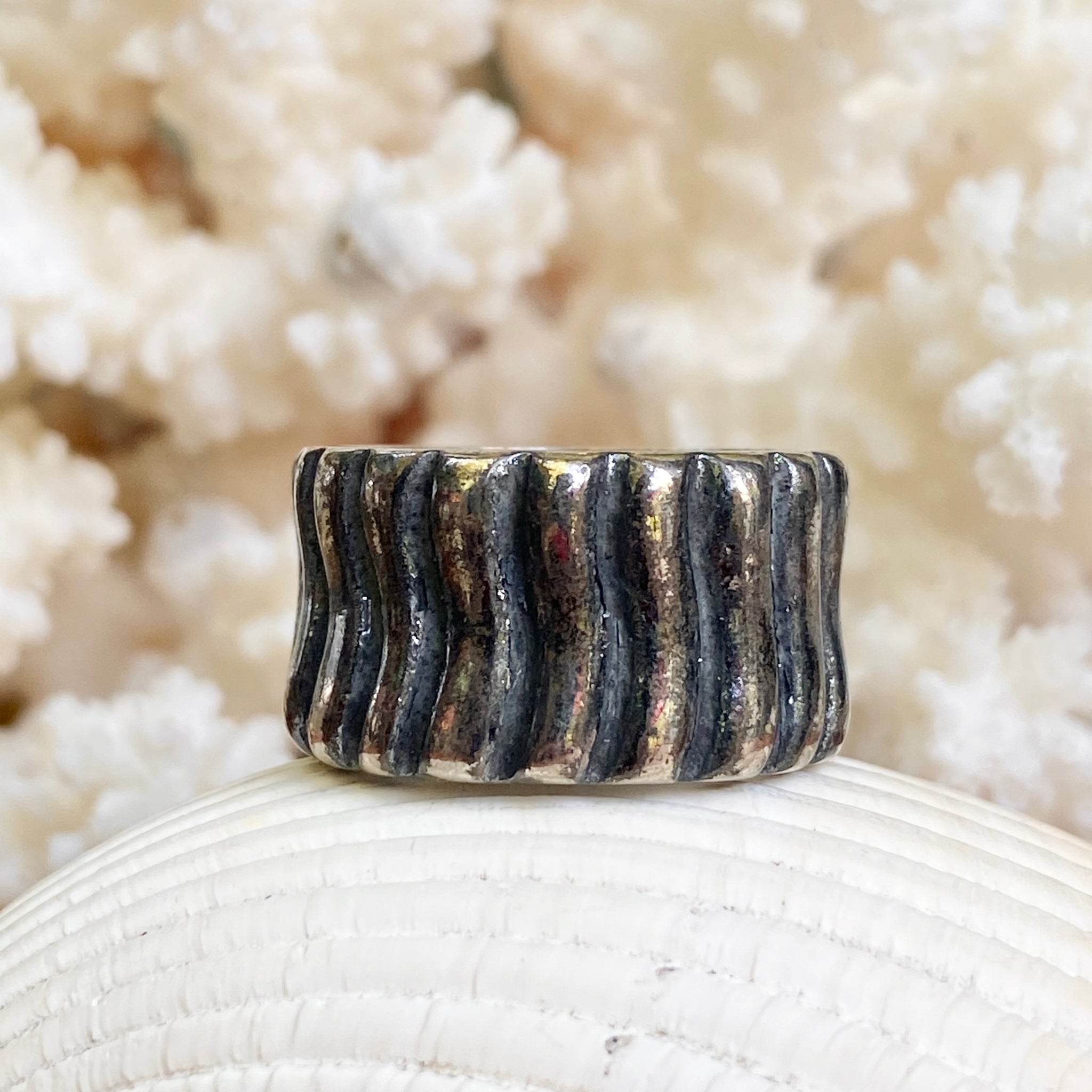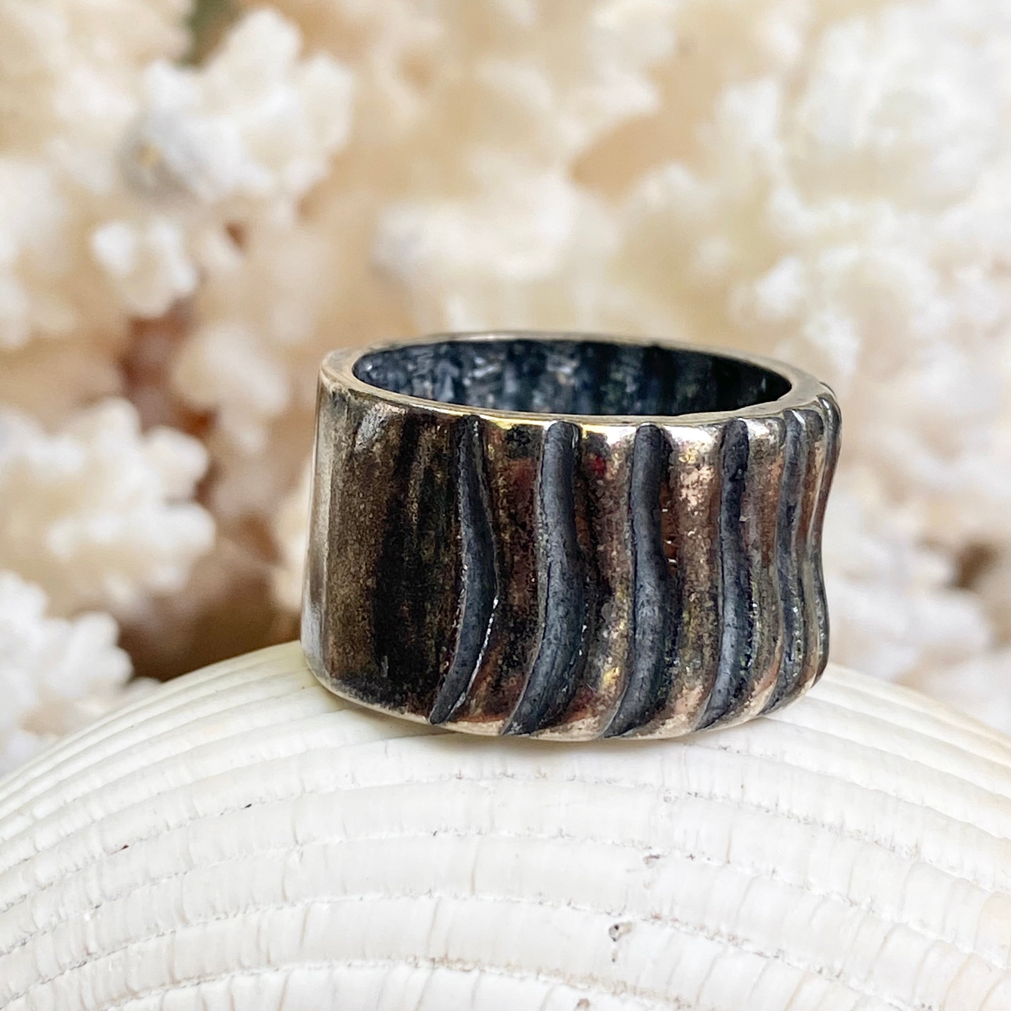 Sterling silver artistic cigar band, antiqued/blackened ring. A highly oxidized silver ring instantly adds drama to your hand!