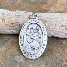 Sterling Silver Antiqued Saint Christopher Oval Medal Pendant 40mm