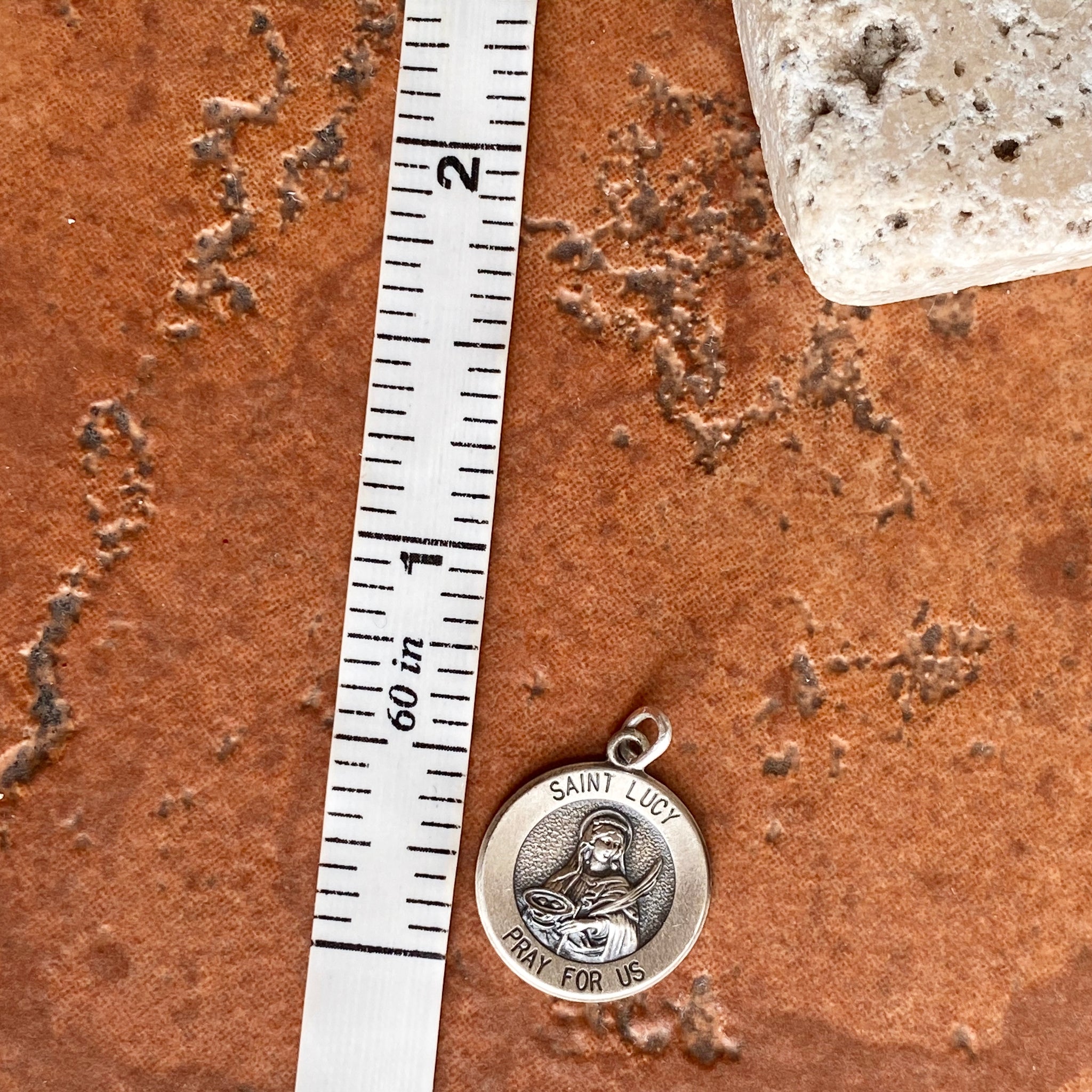 Sterling Silver Antiqued Saint Lucy Round Medal Pendant Charm 15mm