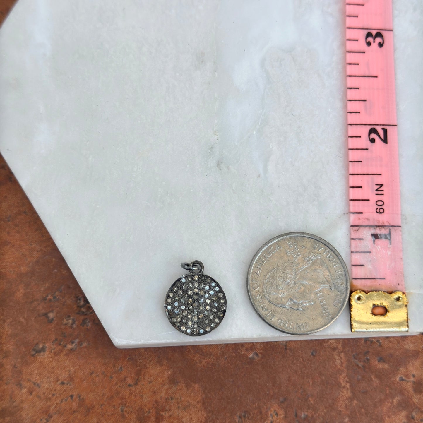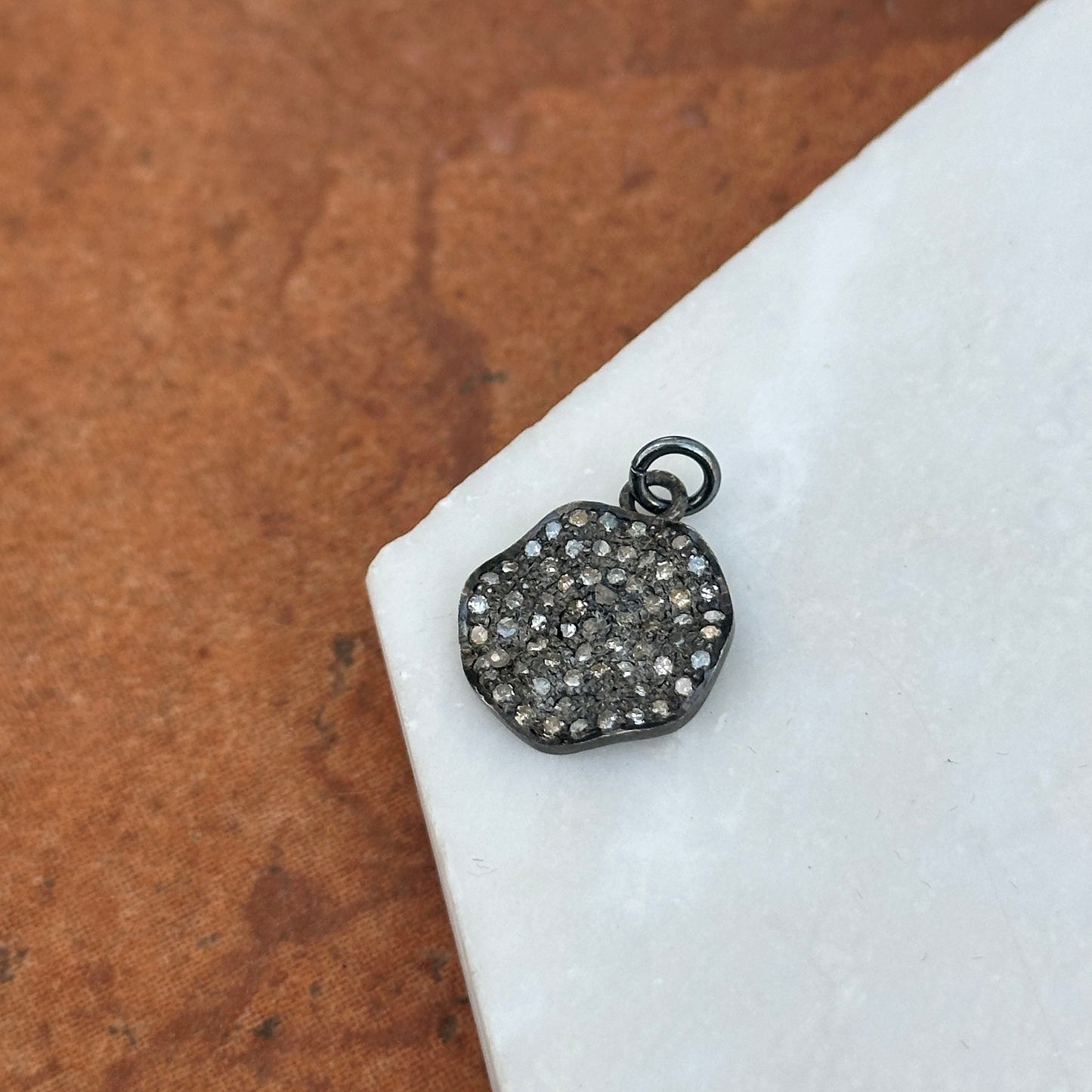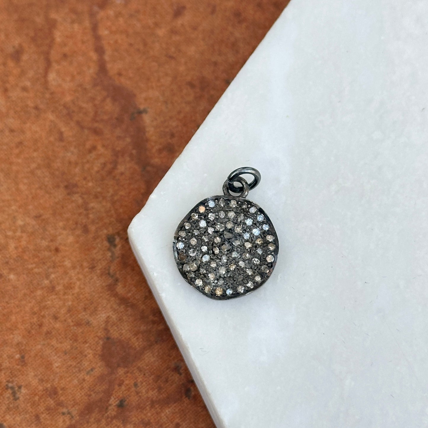 Blackened Sterling Silver Pave Diamond Wavy Circle Disc Pendant Charm
