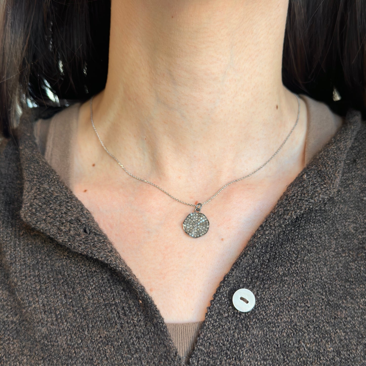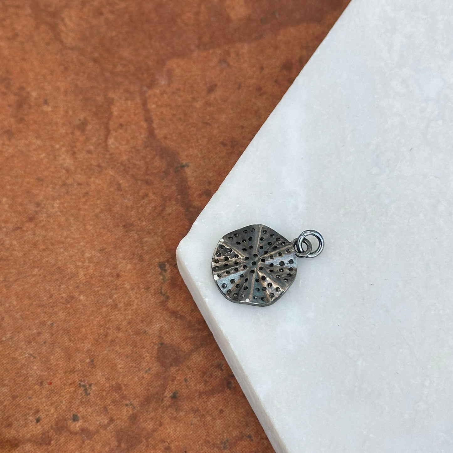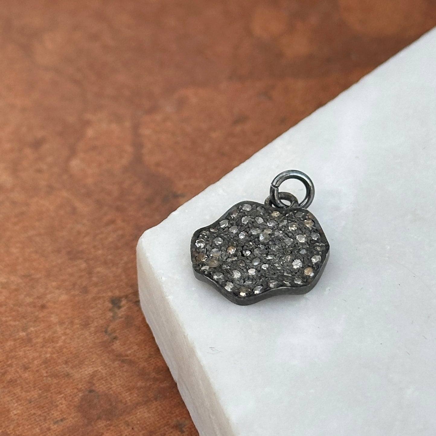Blackened Sterling Silver Pave Diamond Wavy Circle Disc Pendant Charm