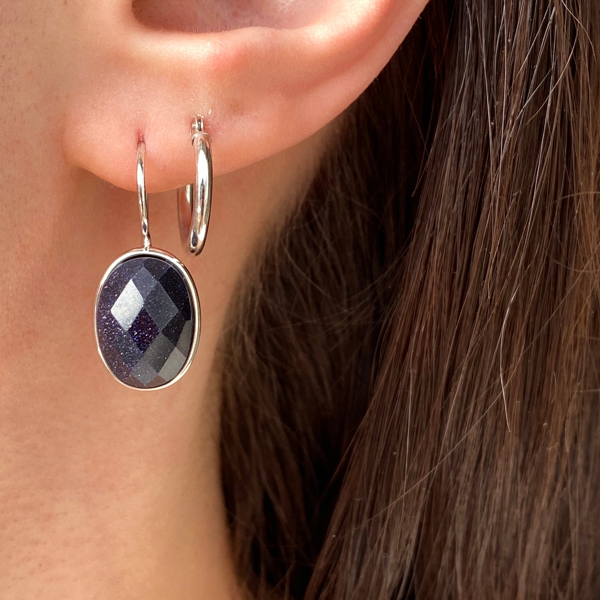 Sterling Silver Blue Gold Sand Stone Wire Earrings